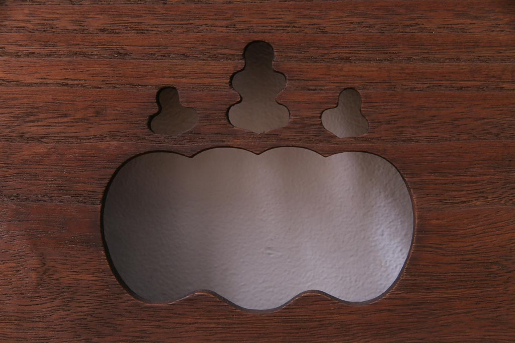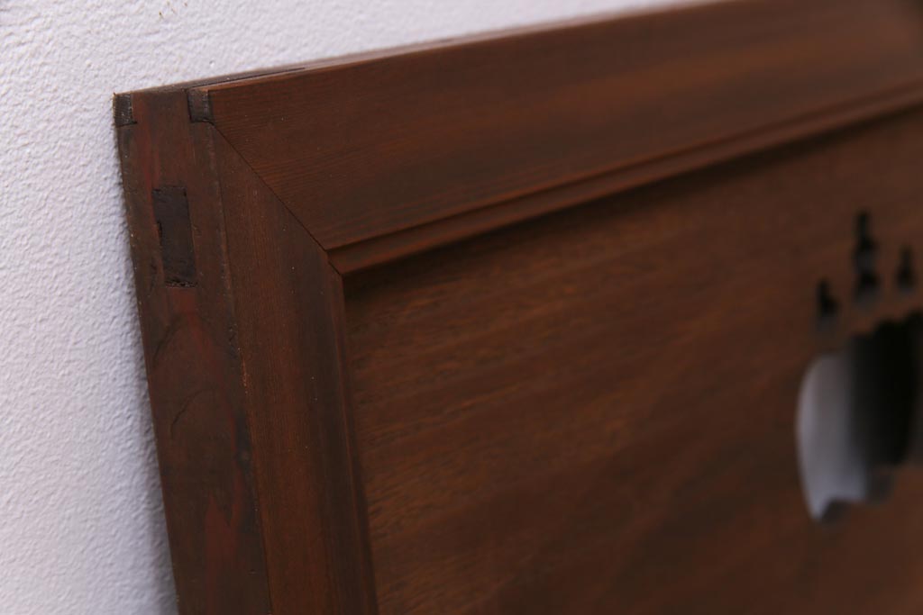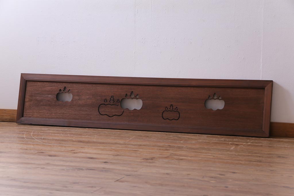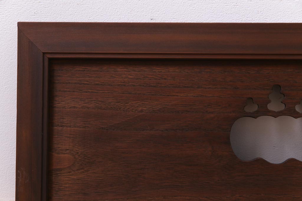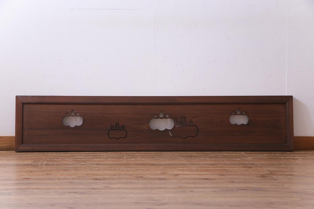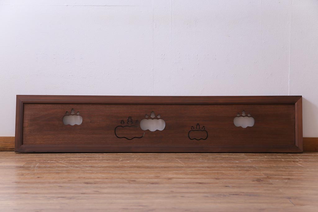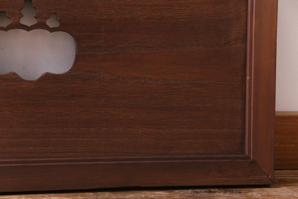 和製アンティーク 桐紋 素朴な透かし意匠が魅力の欄間(明り取り)(1)です。 使い込まれた木の味わいに、 透かし意匠が魅力的な欄間です。 丸みのあるモチーフが、 素朴で親しみのある雰囲気を漂わせ、 レトロな空間作りに活躍します。 多少の使用感はありますが、目立つ傷・ダメージはなく、状態良好です。 使用上問題のあるダメージはありません。 ■框サイズ 上40mm/左35mm/右35mm/下35mm  ■重量 約4kg