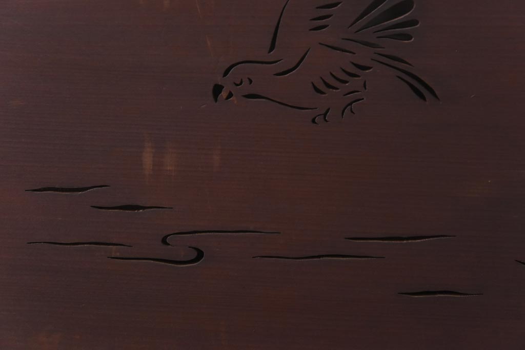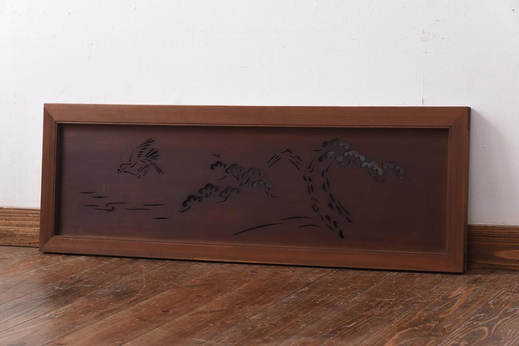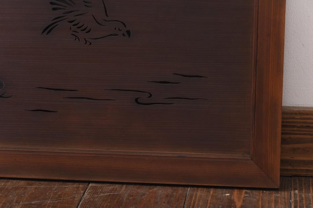 和製アンティーク 松と鳥の図 情緒溢れる透かしの欄間(明り取り、明かり取り)