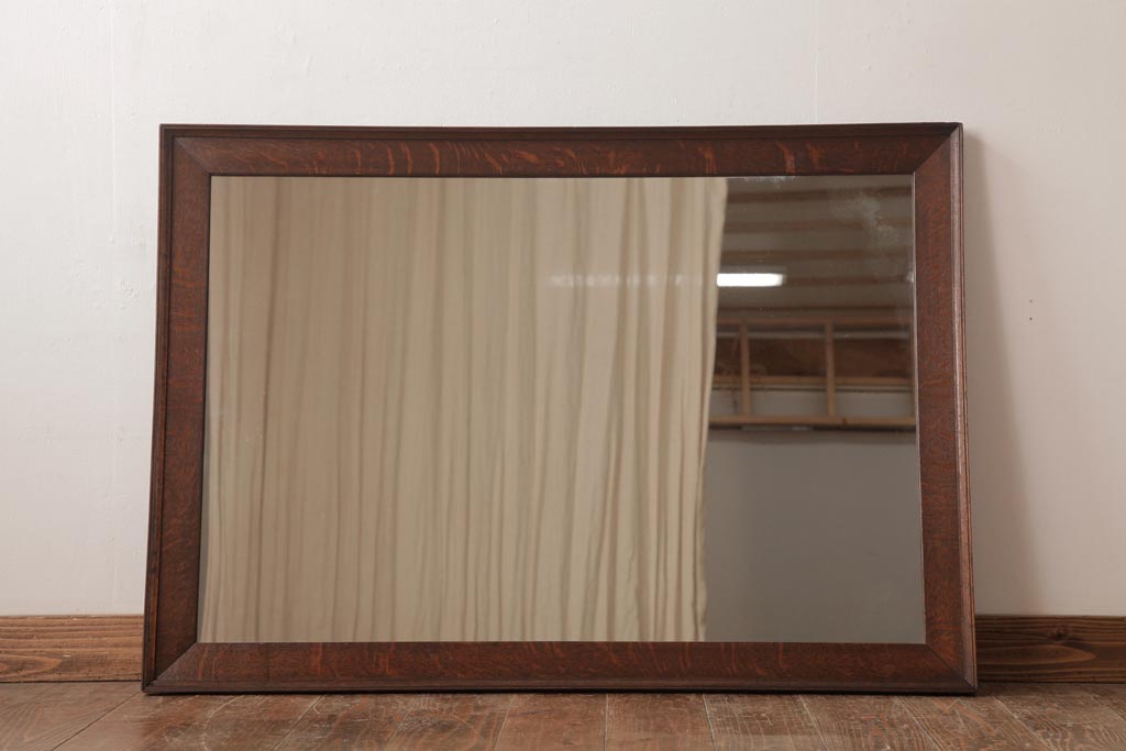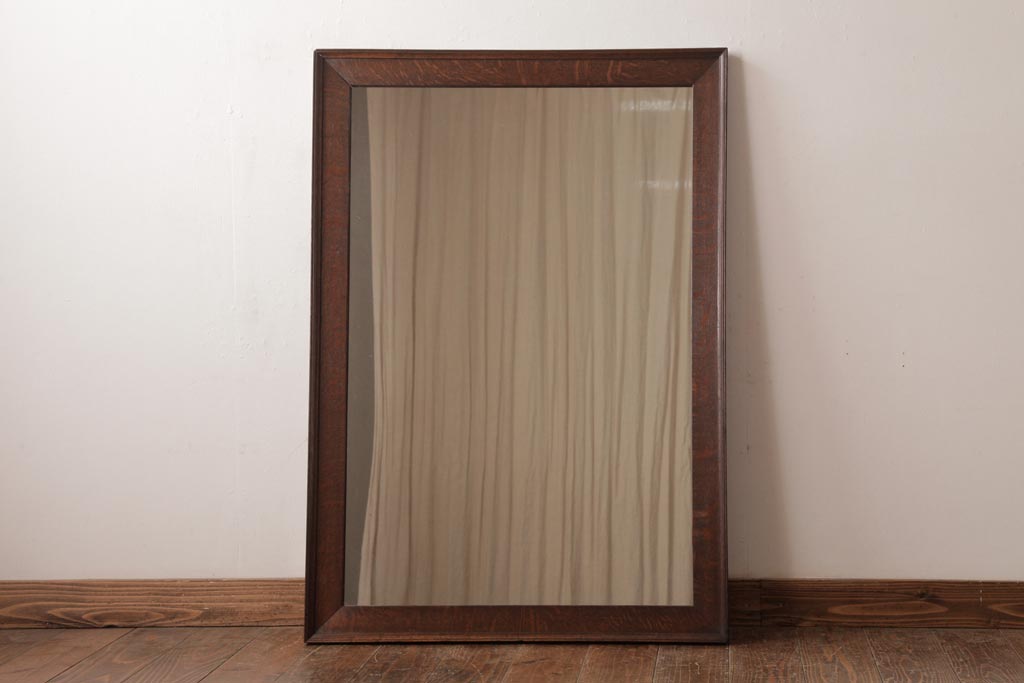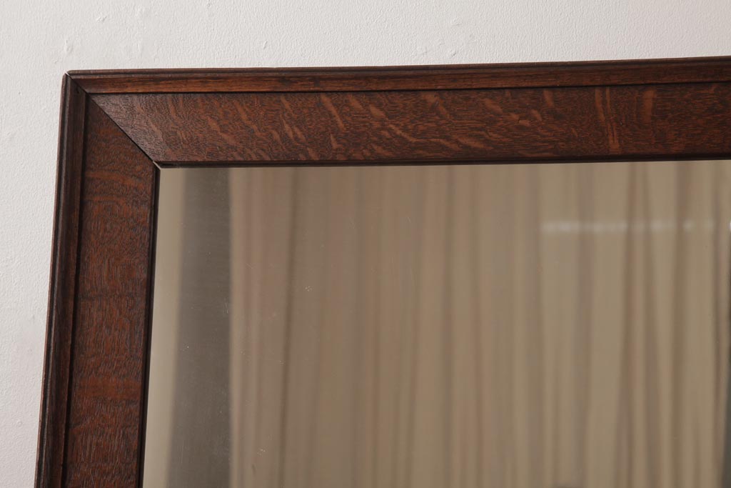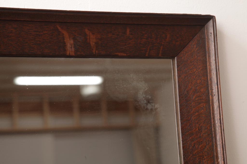 ラフジュ工房> 鏡> 壁掛け鏡 > アンティーク雑貨 昭和レトロ ナラ材 趣きのある虎斑が目を引くウォールミラー(壁掛け鏡)