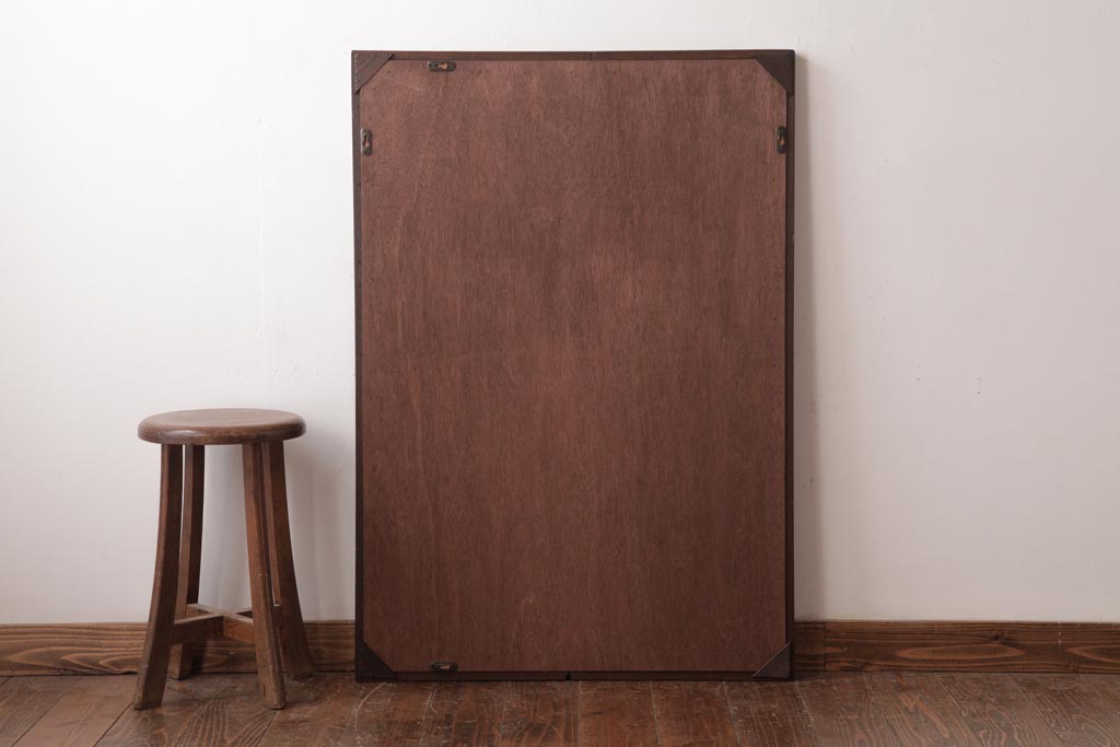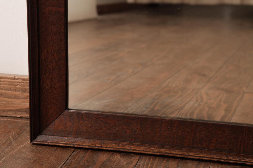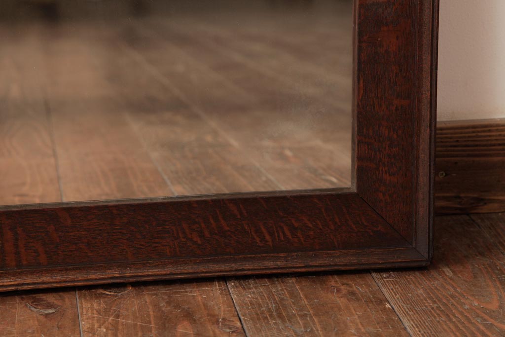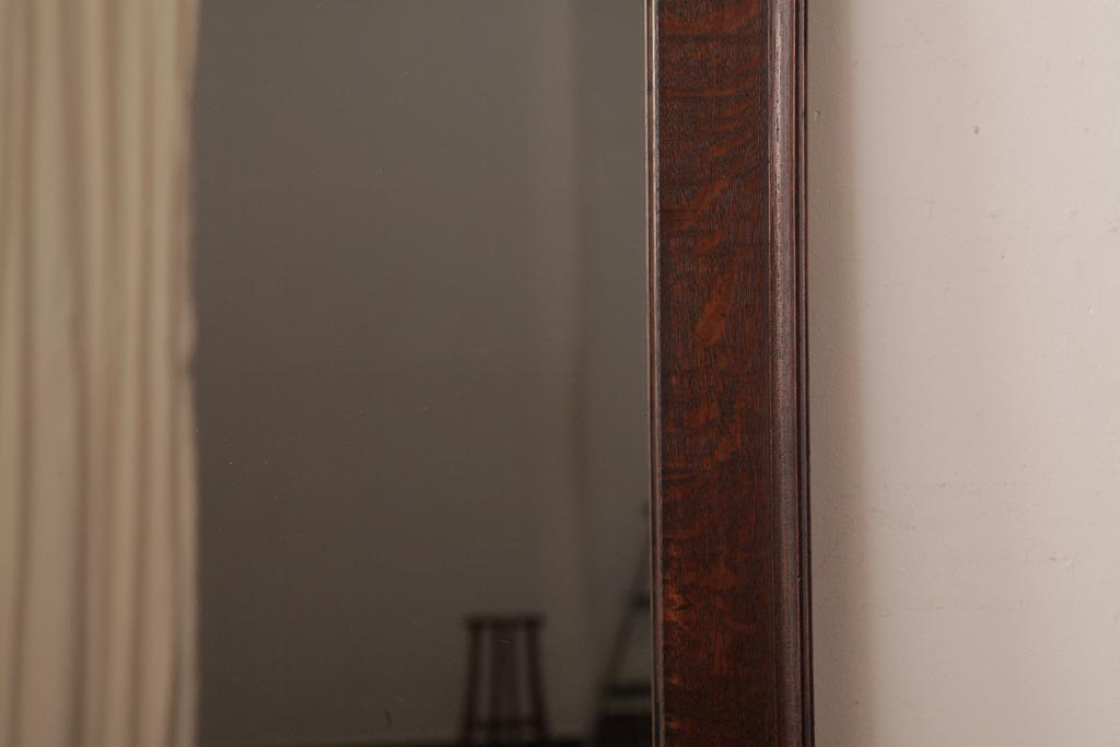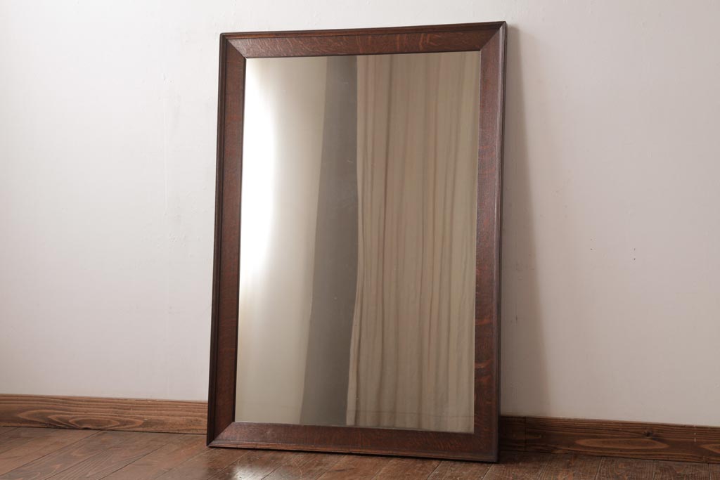 ラフジュ工房> 鏡> 壁掛け鏡 > アンティーク雑貨 昭和レトロ ナラ材 趣きのある虎斑が目を引くウォールミラー(壁掛け鏡)