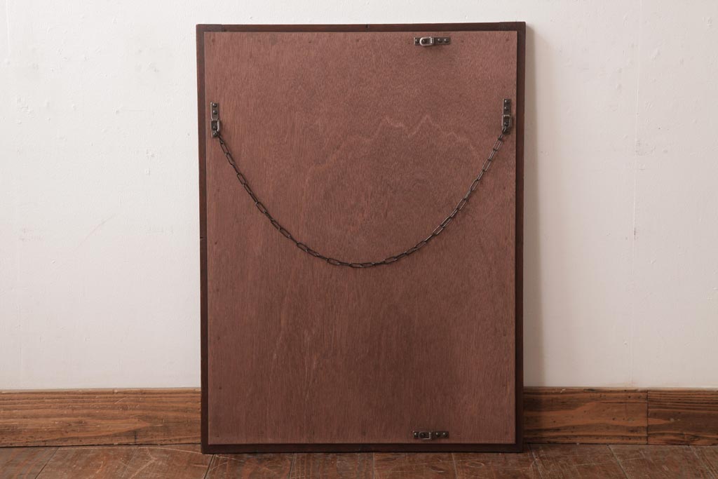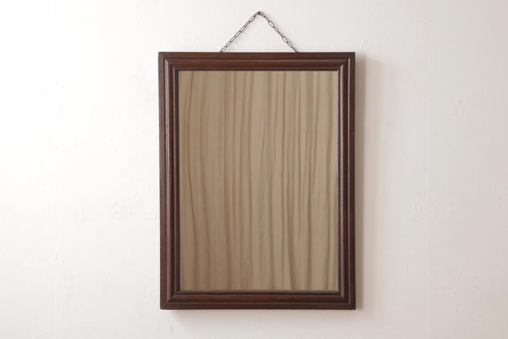 アンティーク雑貨 昭和レトロ ナラ材 クラシカルな雰囲気のウォールミラー(壁掛け鏡)