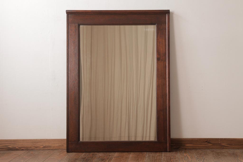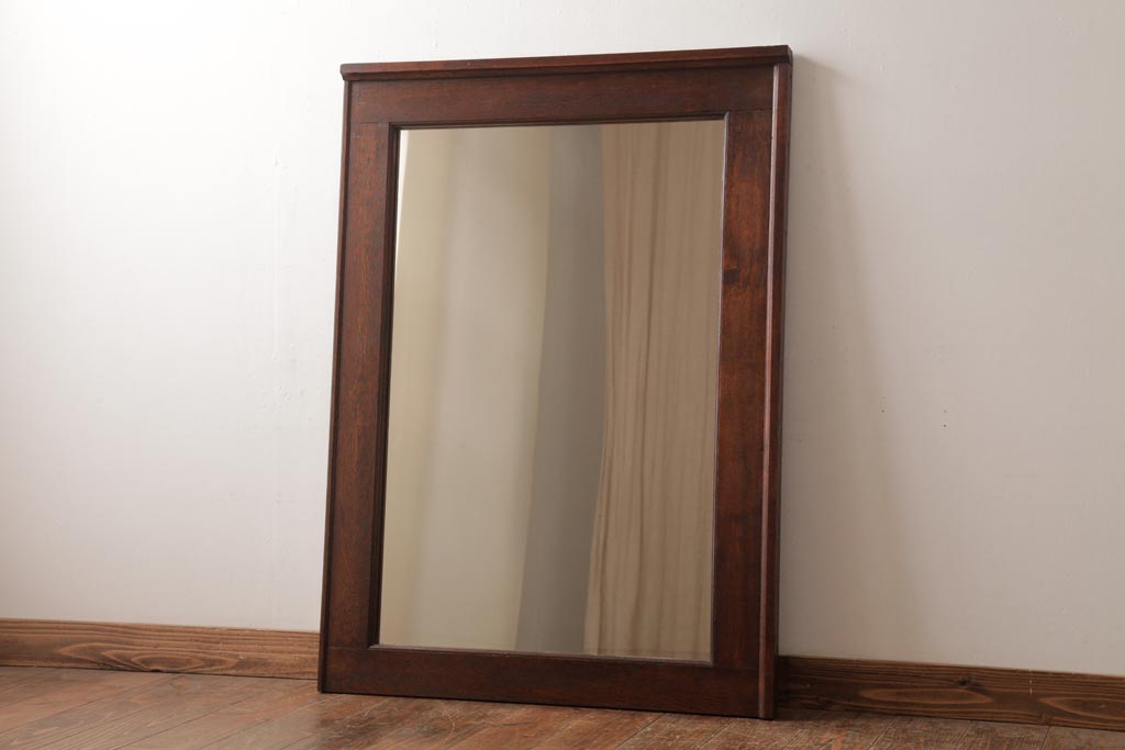 ラフジュ工房> 鏡> 壁掛け鏡 > アンティーク雑貨 昭和レトロ ナラ材 粗い木肌と木目が魅力的なウォールミラー(壁掛け鏡)