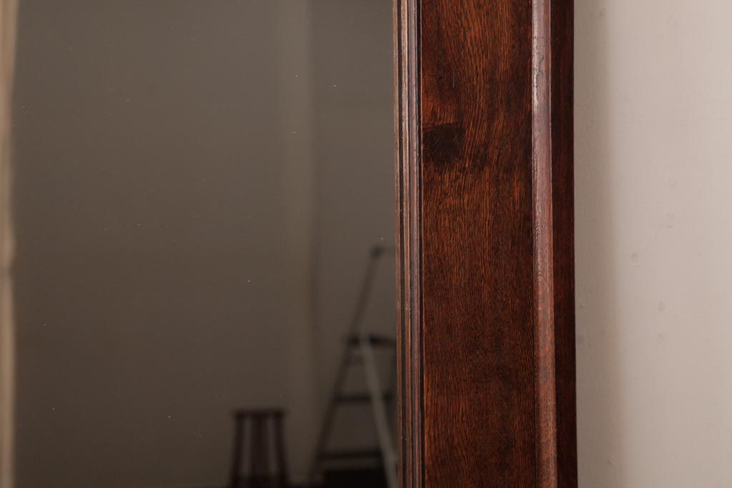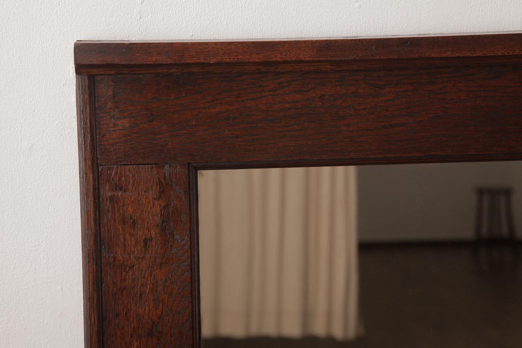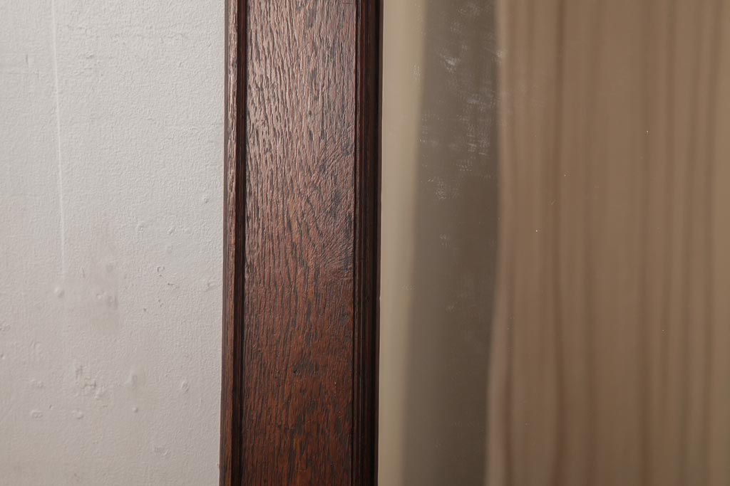 ラフジュ工房> 鏡 > アンティーク雑貨 昭和レトロ ナラ材 粗い木肌と木目が魅力的なウォールミラー(壁掛け鏡)