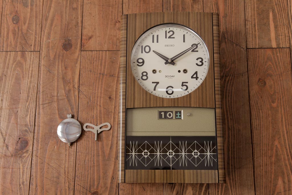 アンティーク雑貨 SEIKO(セイコー) 30DAY・1ヵ月巻 手巻き式 日付曜日付き掛け時計(柱時計、振り子時計)