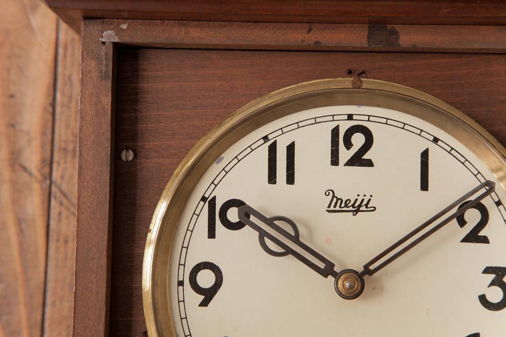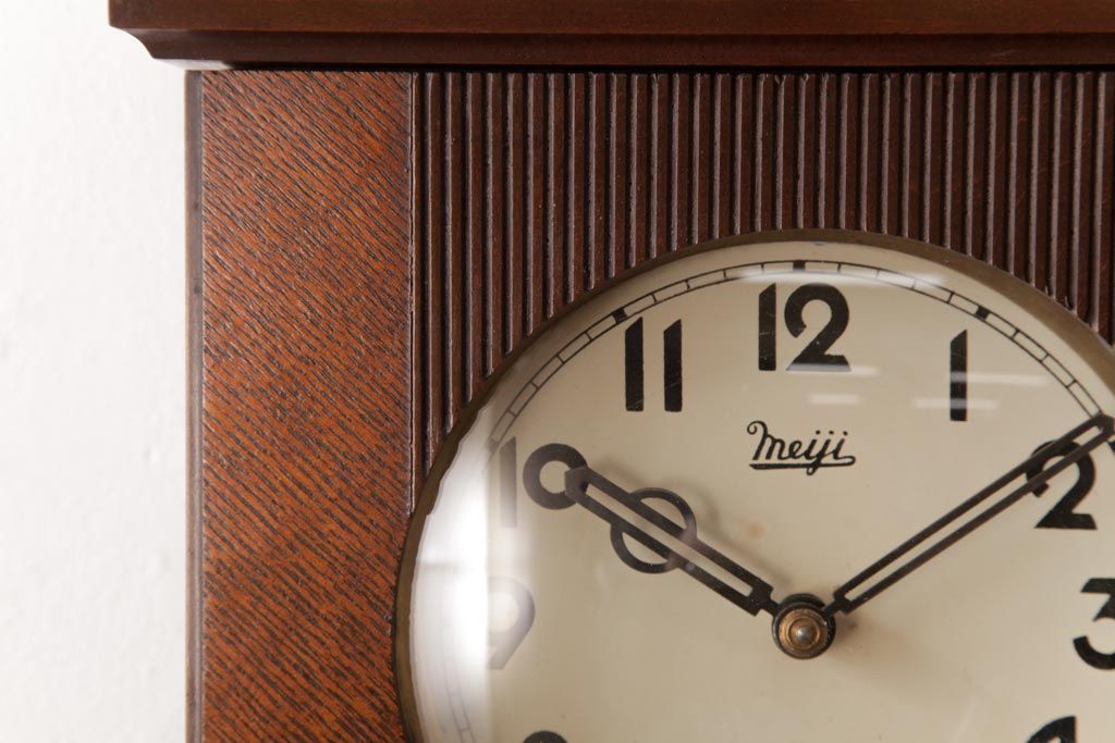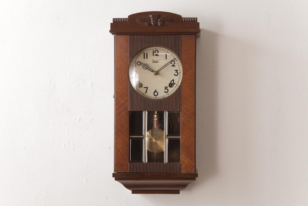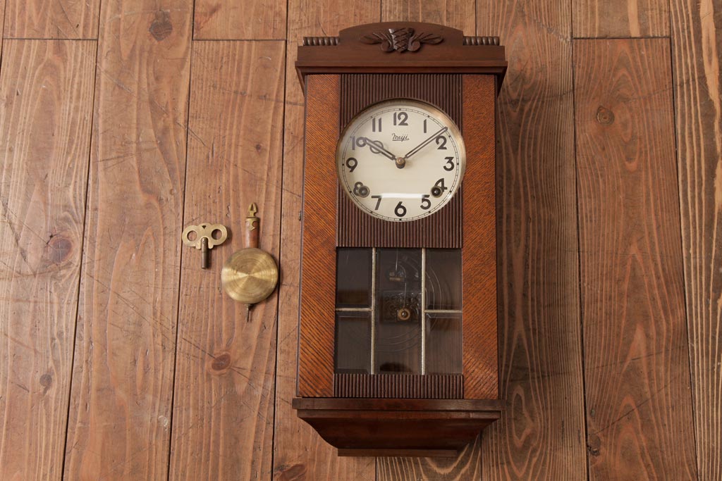 時計> 掛け時計 > アンティーク雑貨 Meiji(明治時計社) 手巻き式 クラシカルな佇まいの掛け時計(柱時計、振り子時計)