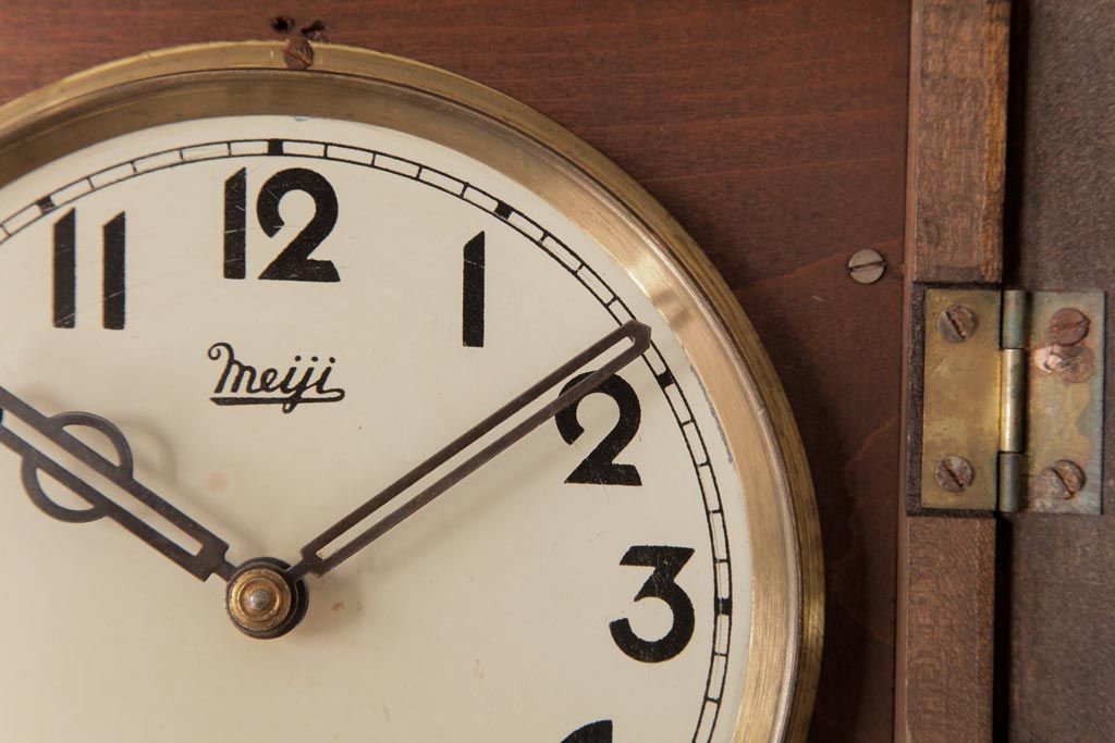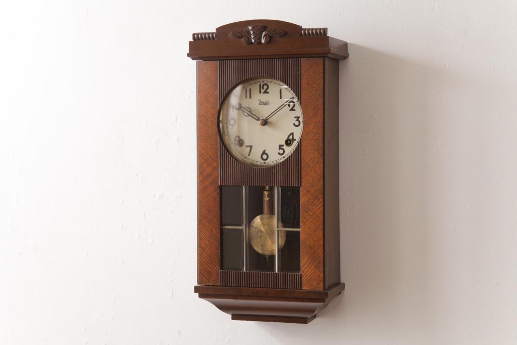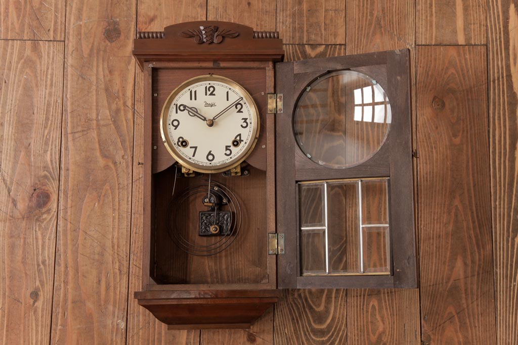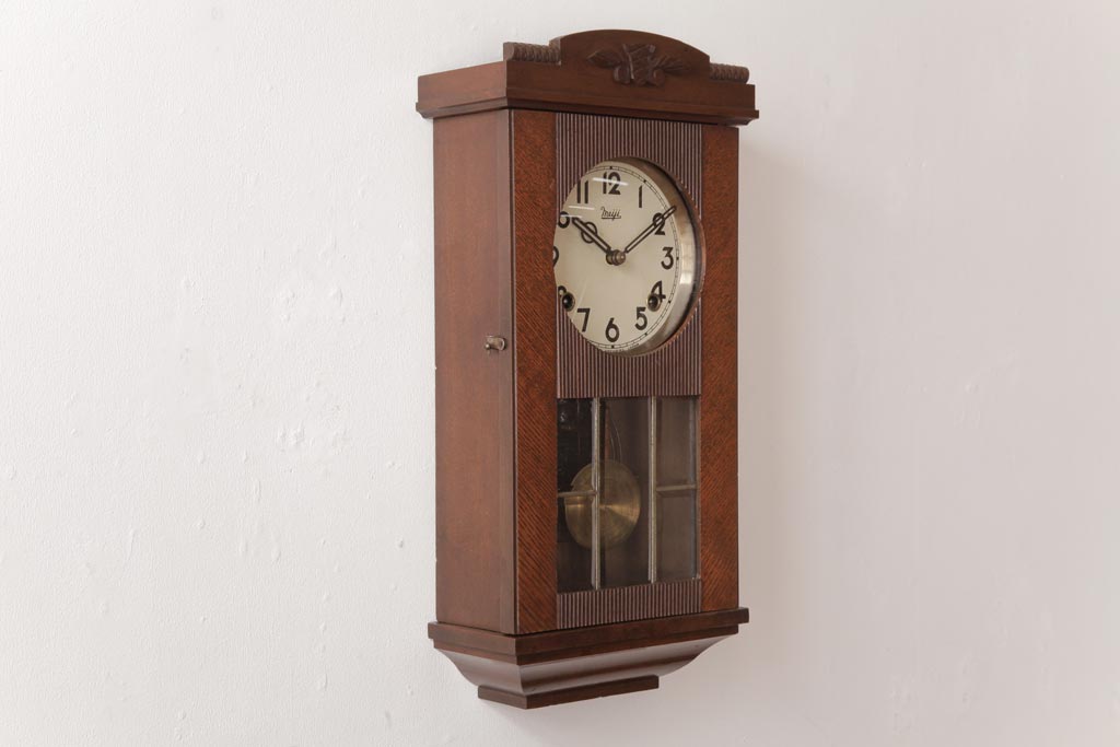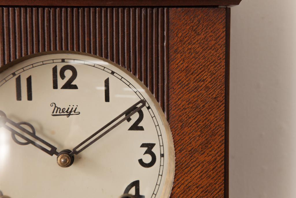 時計> 掛け時計 > アンティーク雑貨 Meiji(明治時計社) 手巻き式 クラシカルな佇まいの掛け時計(柱時計、振り子時計)