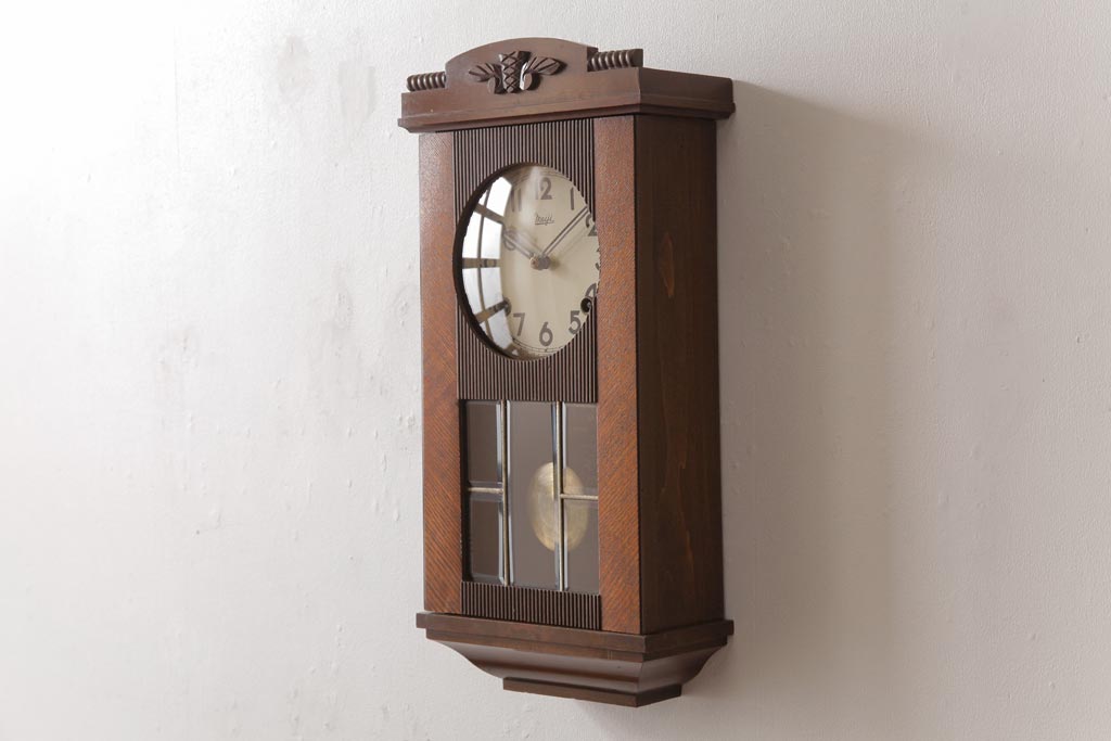 Meiji(明治時計社) 手巻き式 クラシカルな佇まいの掛け時計(柱時計、振り子時計)です。