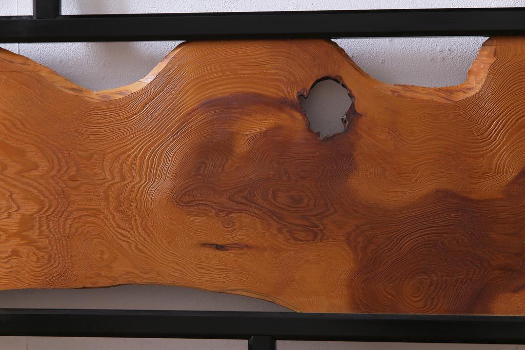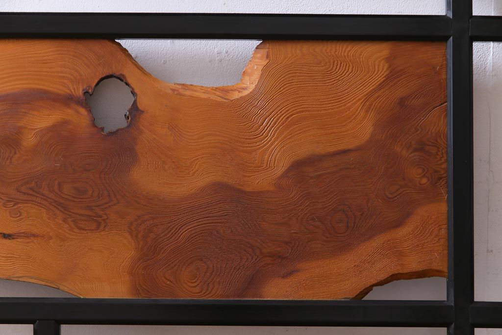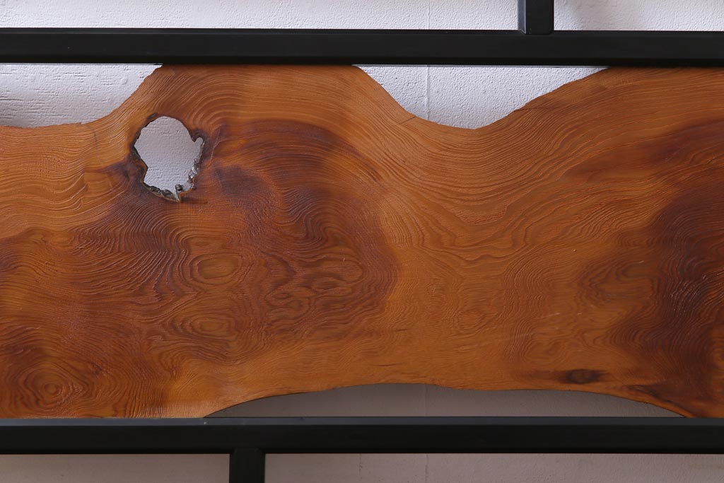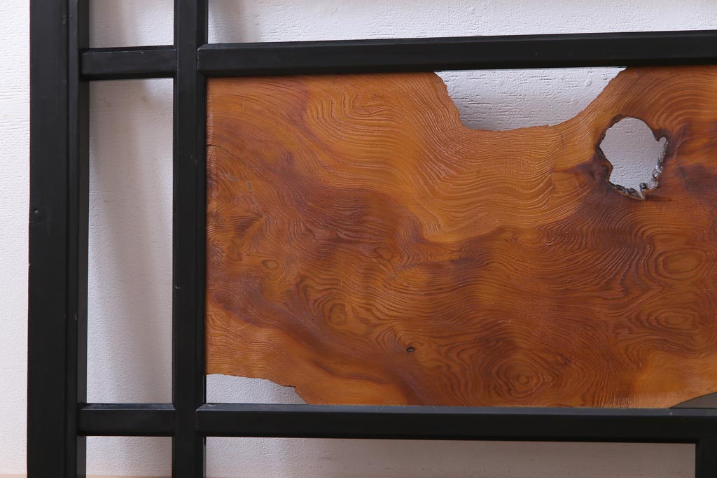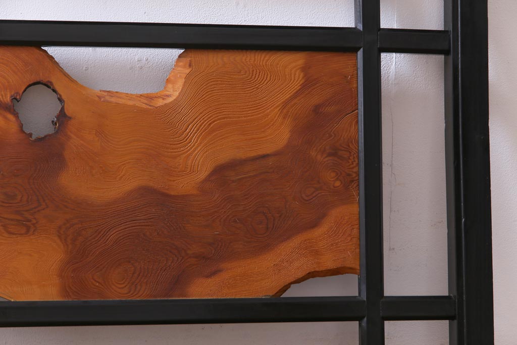 和製アンティーク 屋久杉無垢材 枠漆塗り 個性的で存在感のある欄間(明り取り)(1)