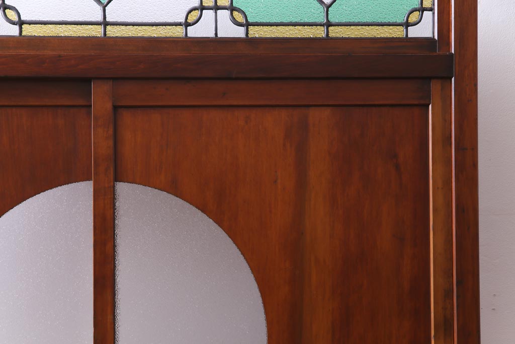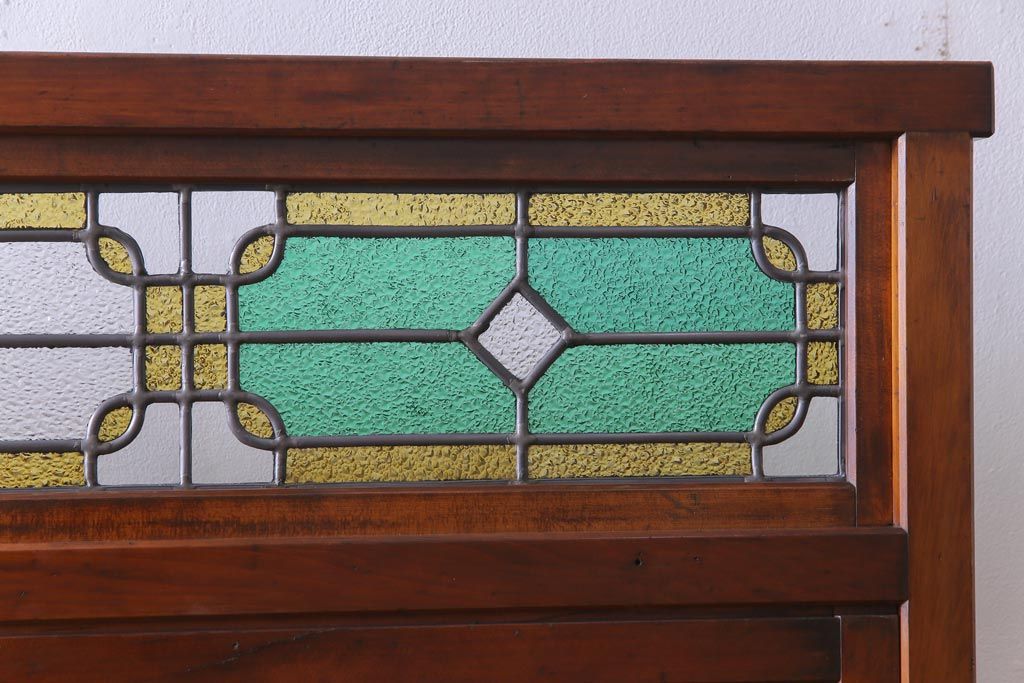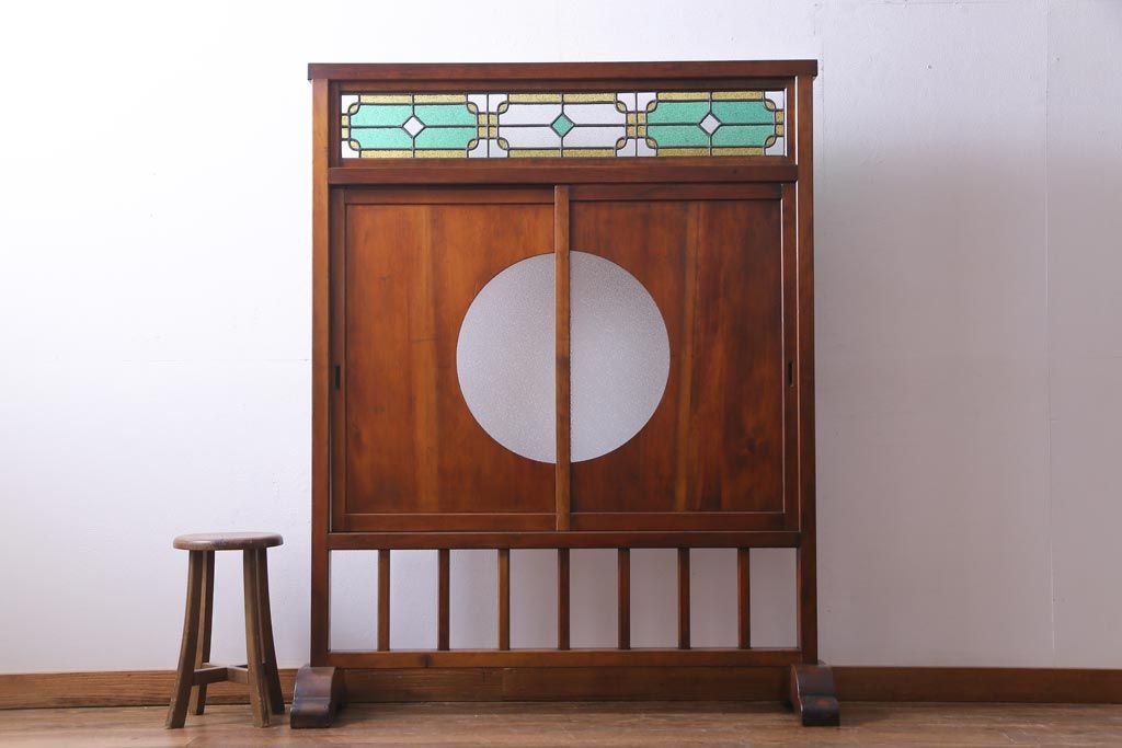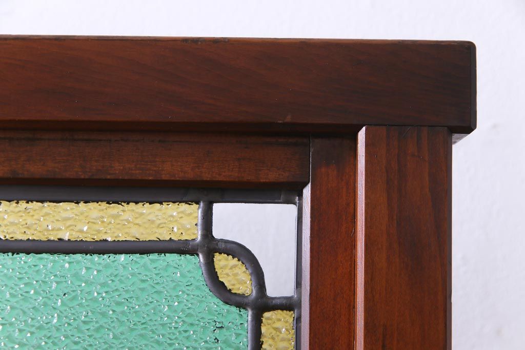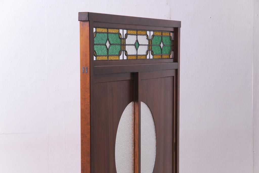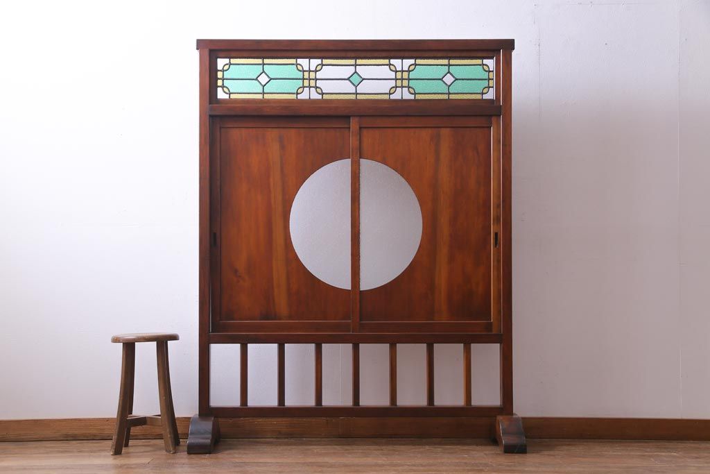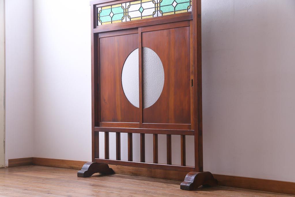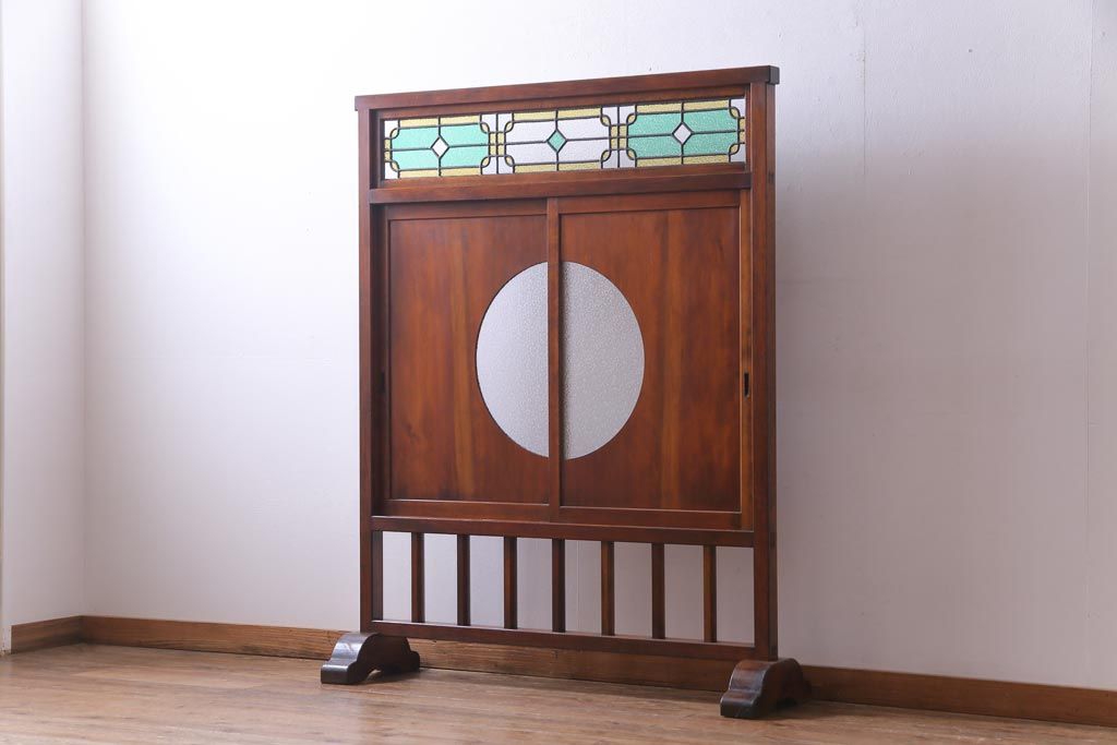 アンティーク雑貨 ラフジュ工房オリジナルステンドグラス 大正昭和初期 当時もの色ガラス 引き戸付衝立(パーテーション、つい立て、仕切り)