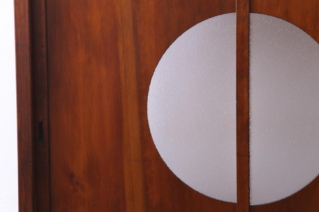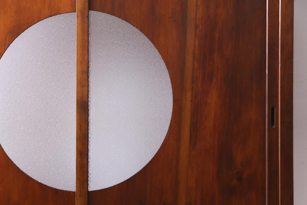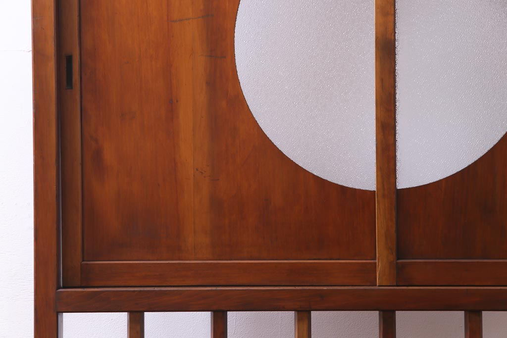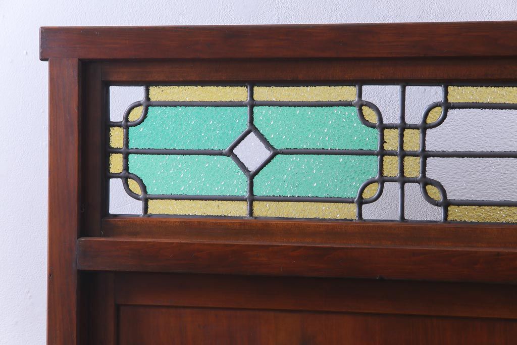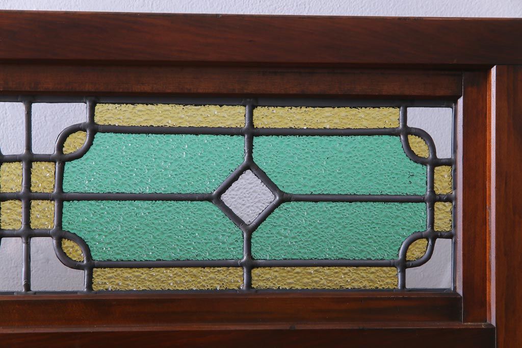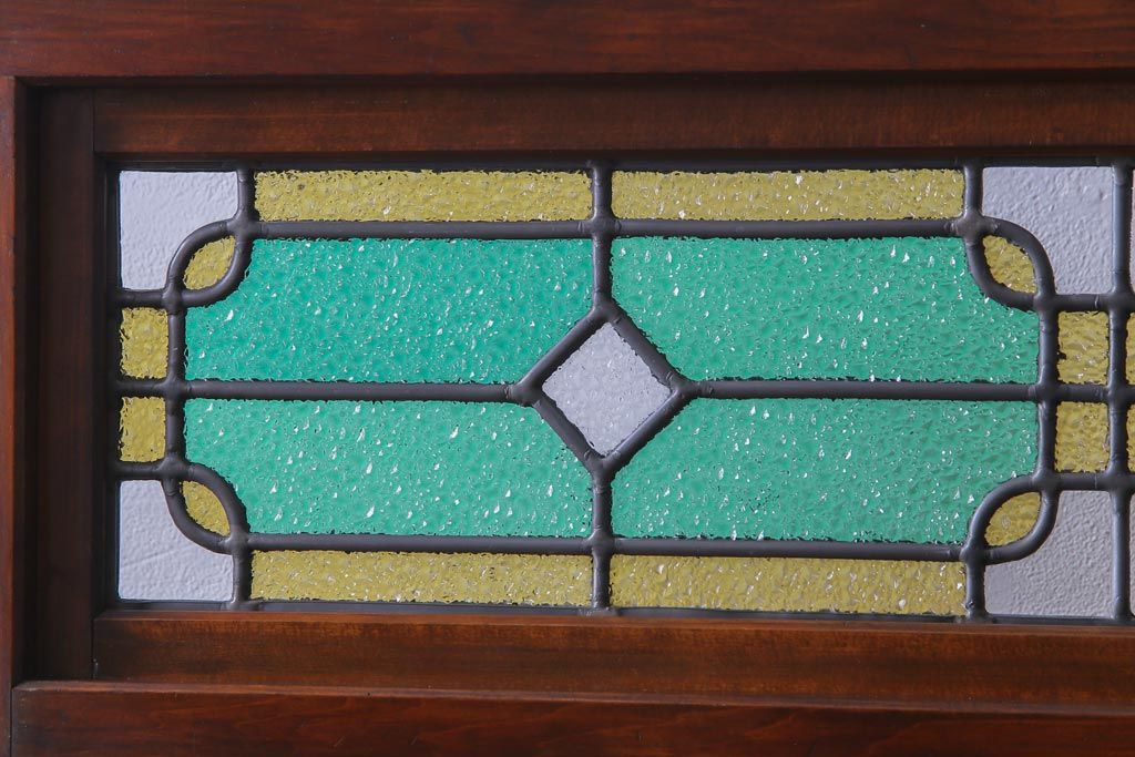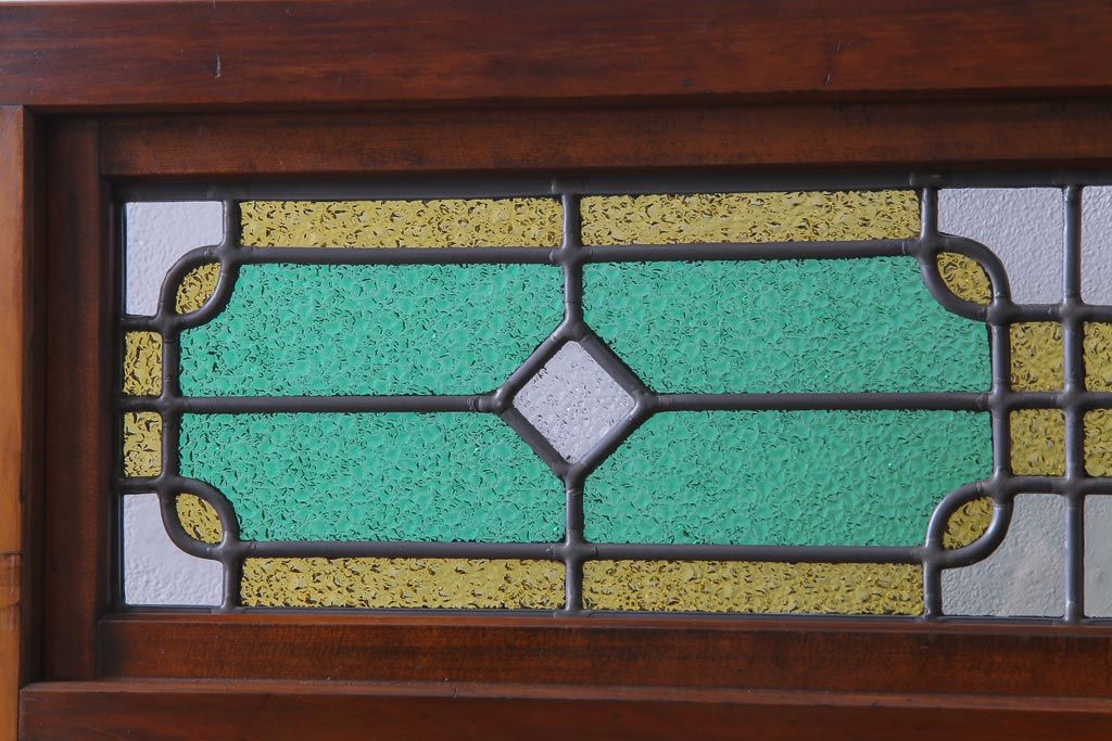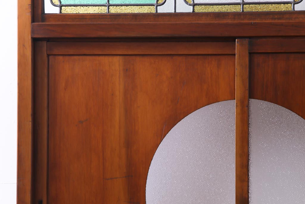 アンティーク雑貨 ラフジュ工房オリジナルステンドグラス 大正昭和初期 当時もの色ガラス 引き戸付衝立(パーテーション、つい立て、仕切り)
