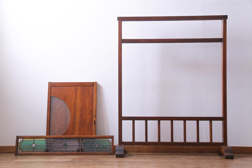 ラフジュ工房> 衝立・パーテーション> スタンド式衝立 > アンティーク雑貨 ラフジュ工房オリジナルステンドグラス 大正昭和初期 当時もの色ガラス 引き戸付衝立(パーテーション、つい立て、仕切り)