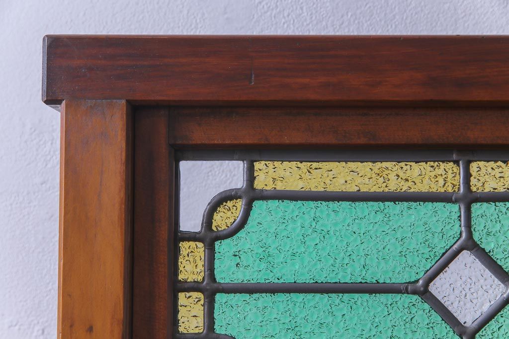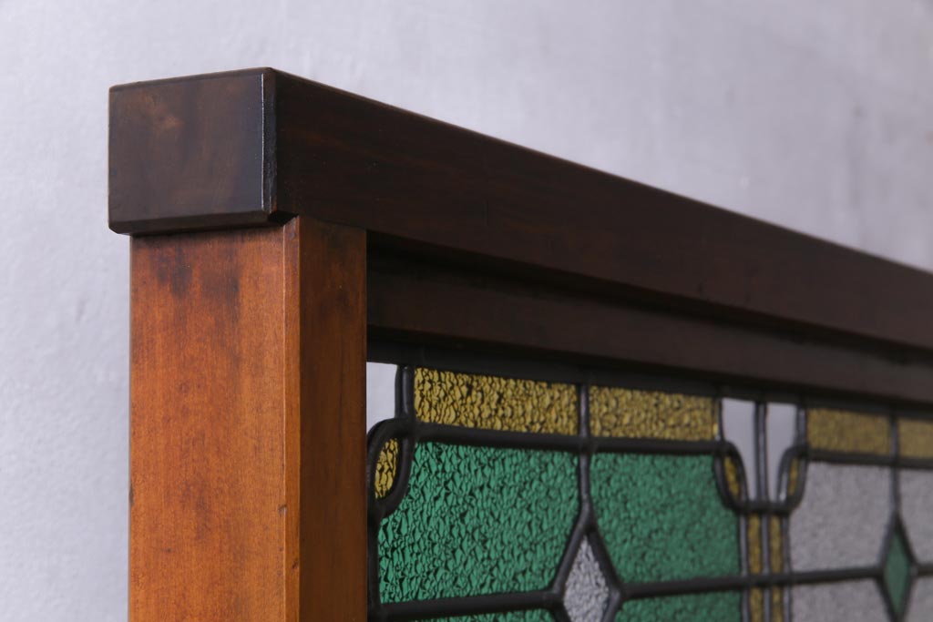 ラフジュ工房> ステンドグラス > アンティーク雑貨 ラフジュ工房オリジナルステンドグラス 大正昭和初期 当時もの色ガラス 引き戸付衝立(パーテーション、つい立て、仕切り)