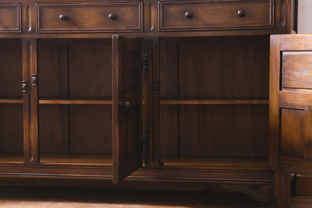 ビンテージ イギリス輸入家具 オーク材 伝統的なカントリースタイルを盛り上げるサイドボード(収納棚)