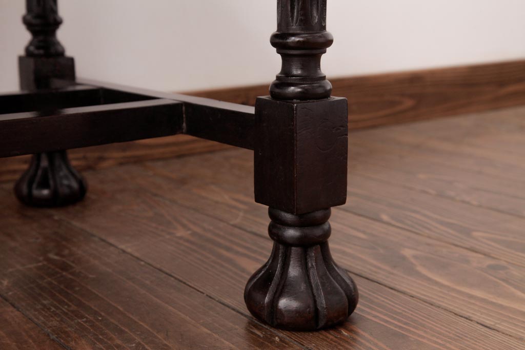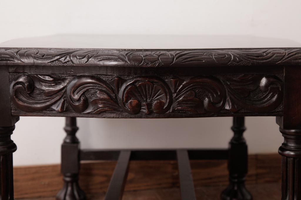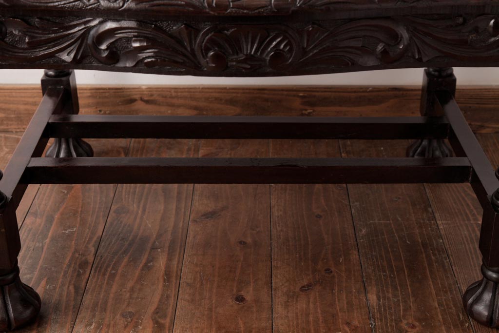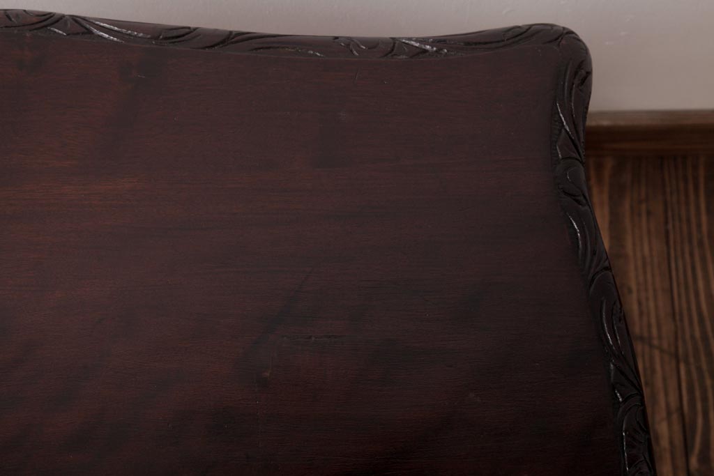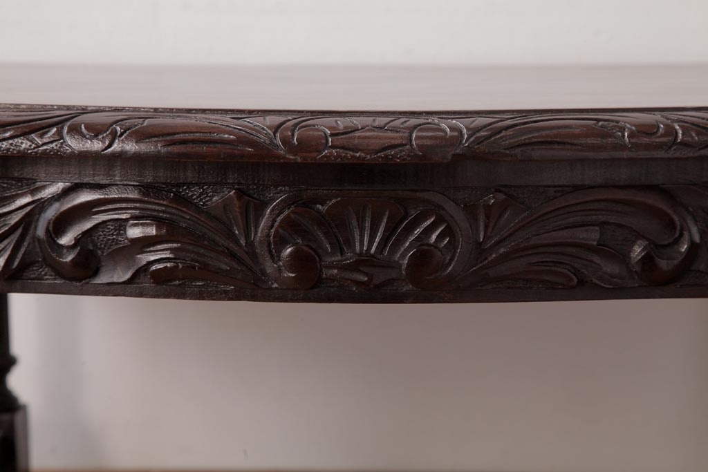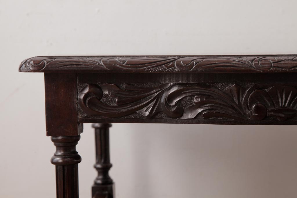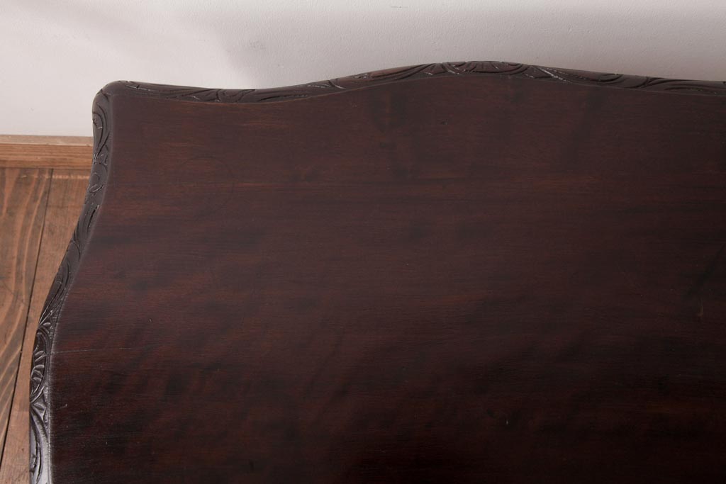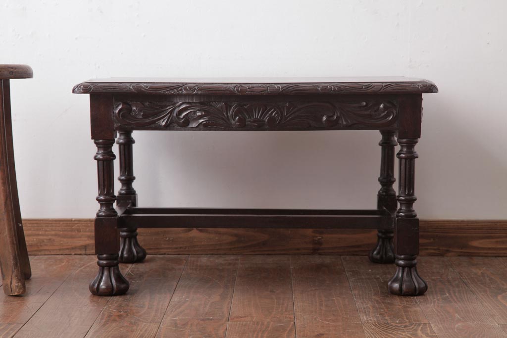 アンティーク家具 イギリスアンティーク マホガニー材 レリーフなどの凝った意匠が目を引くセンターテーブル(ローテーブル)