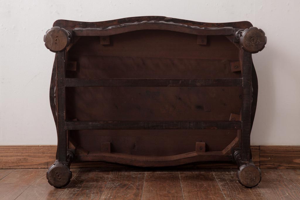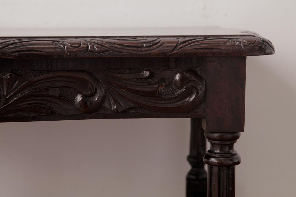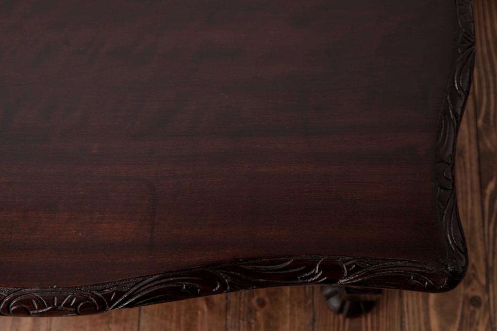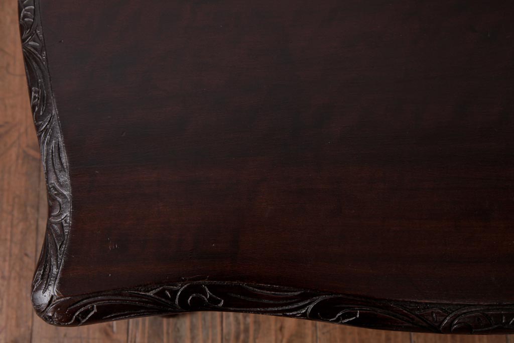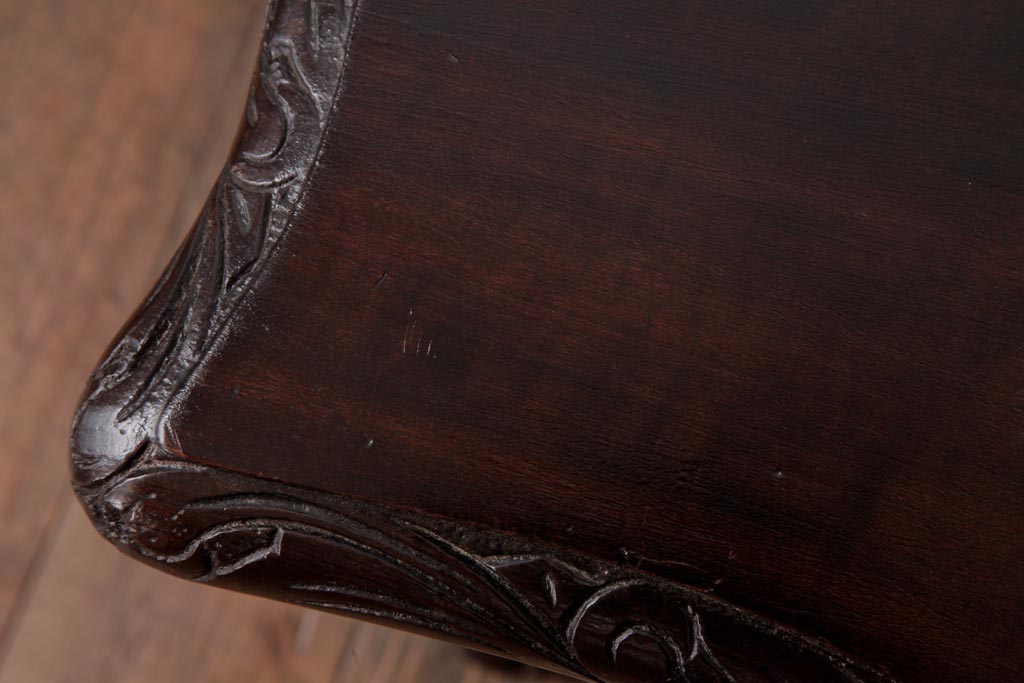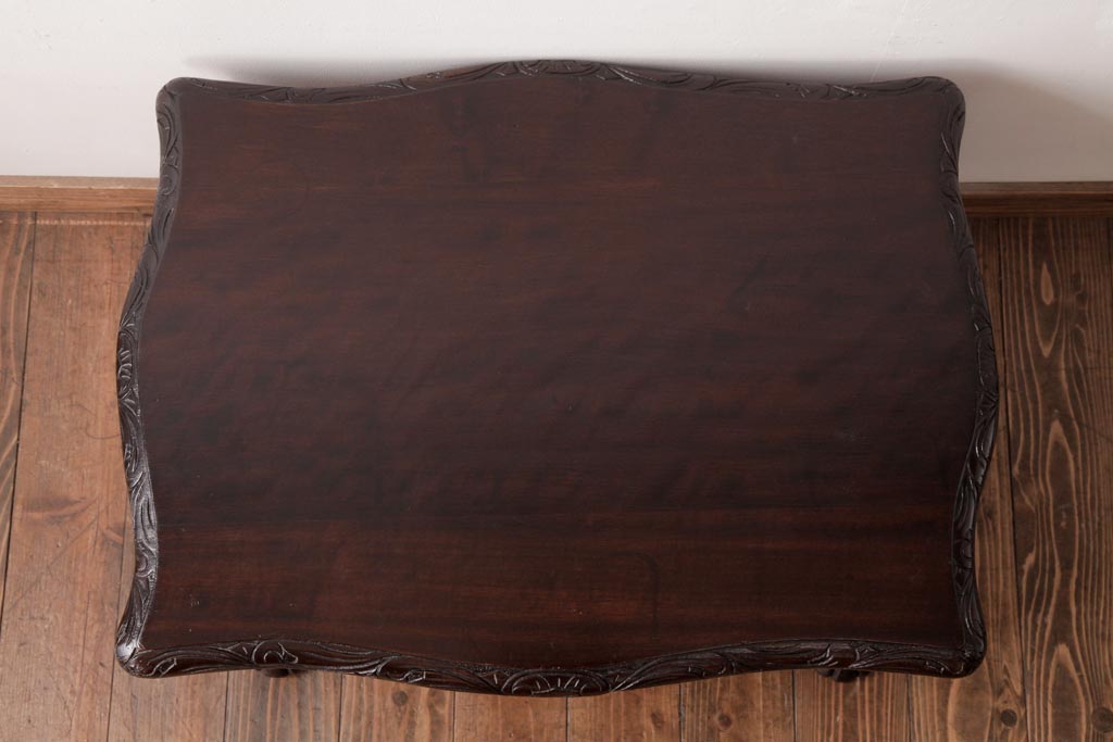 ラフジュ工房> テーブル> センターテーブル・ローテーブル > アンティーク家具 イギリスアンティーク マホガニー材 レリーフなどの凝った意匠が目を引くセンターテーブル(ローテーブル)