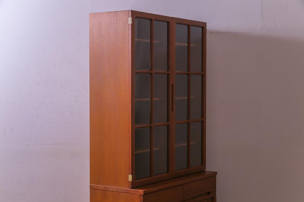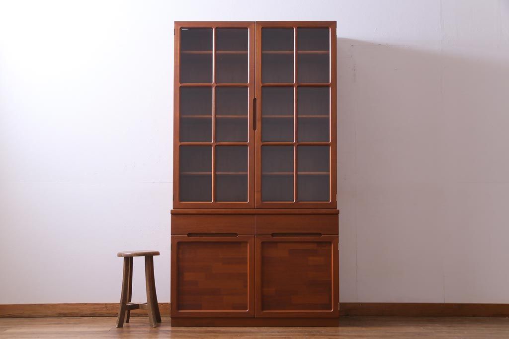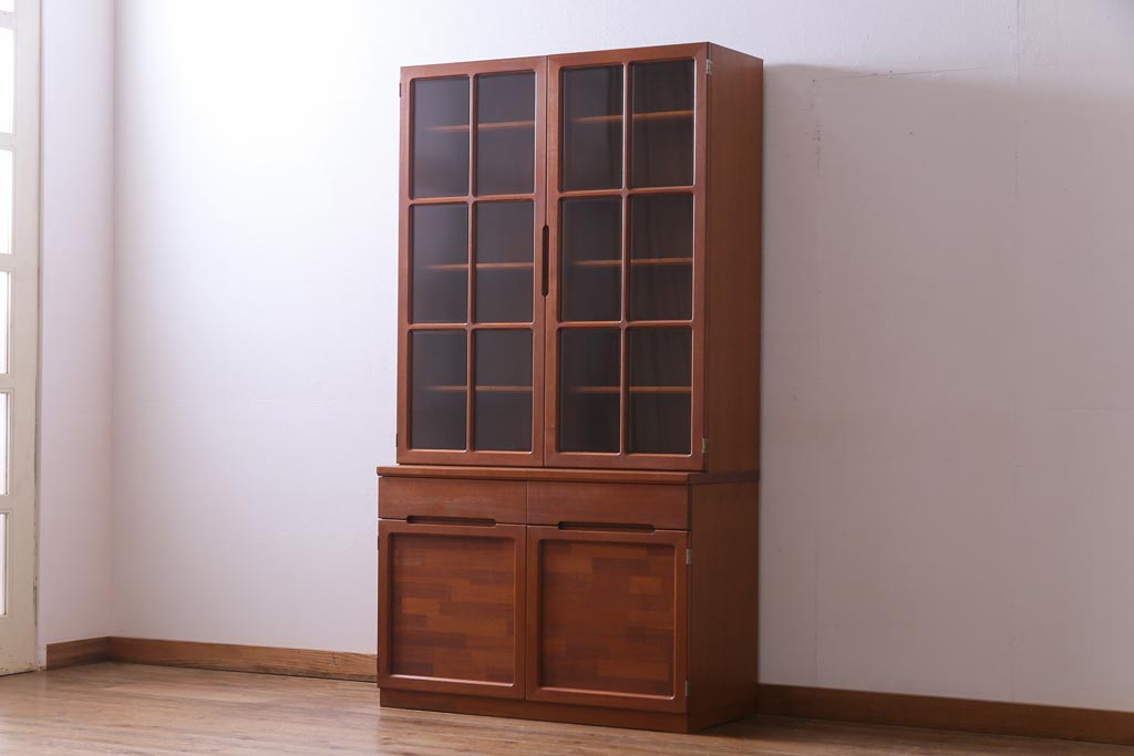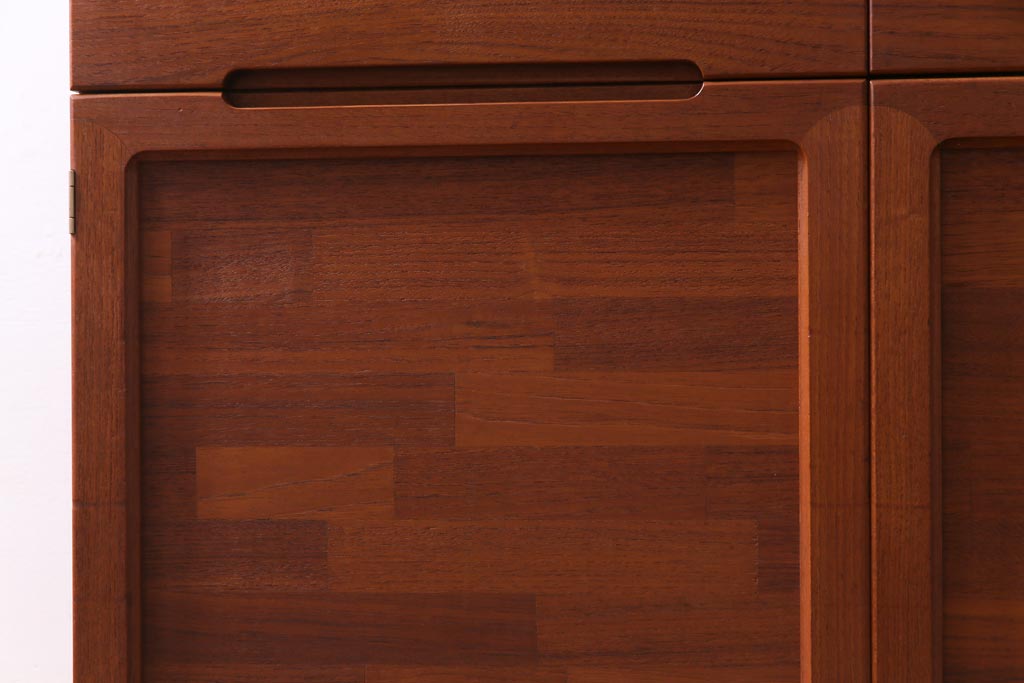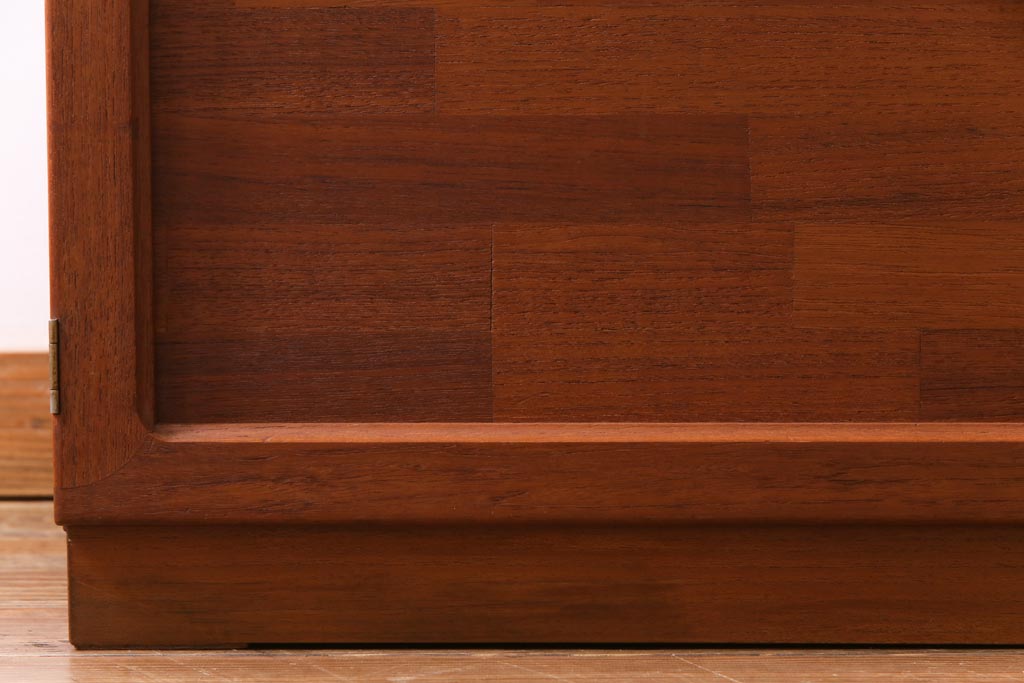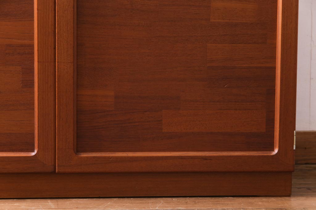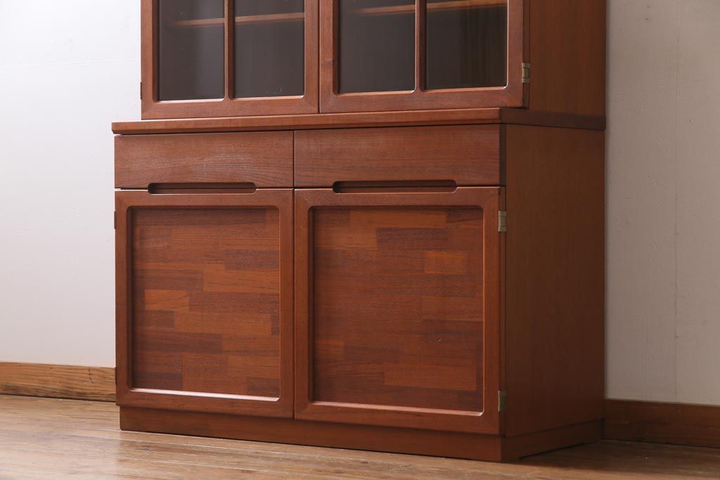 ヴィンテージ家具 ビンテージ 北欧風 チーク材 パーケット(寄せ木)の扉がおしゃれなキャビネット(食器棚、本棚)