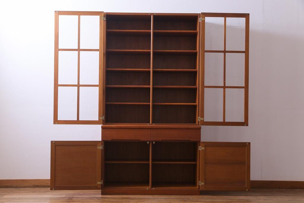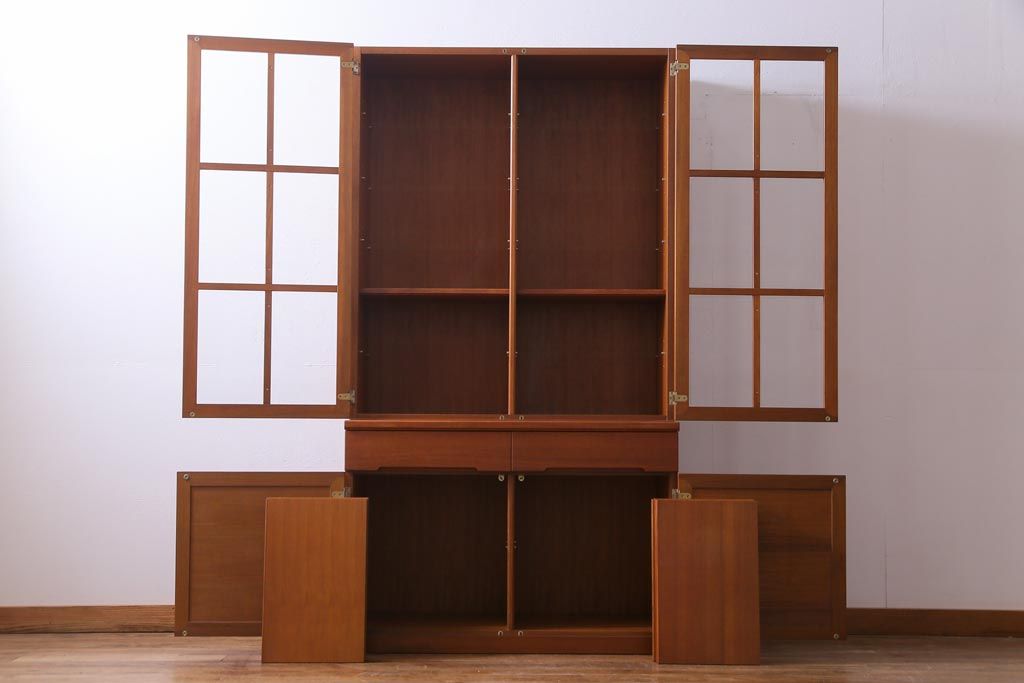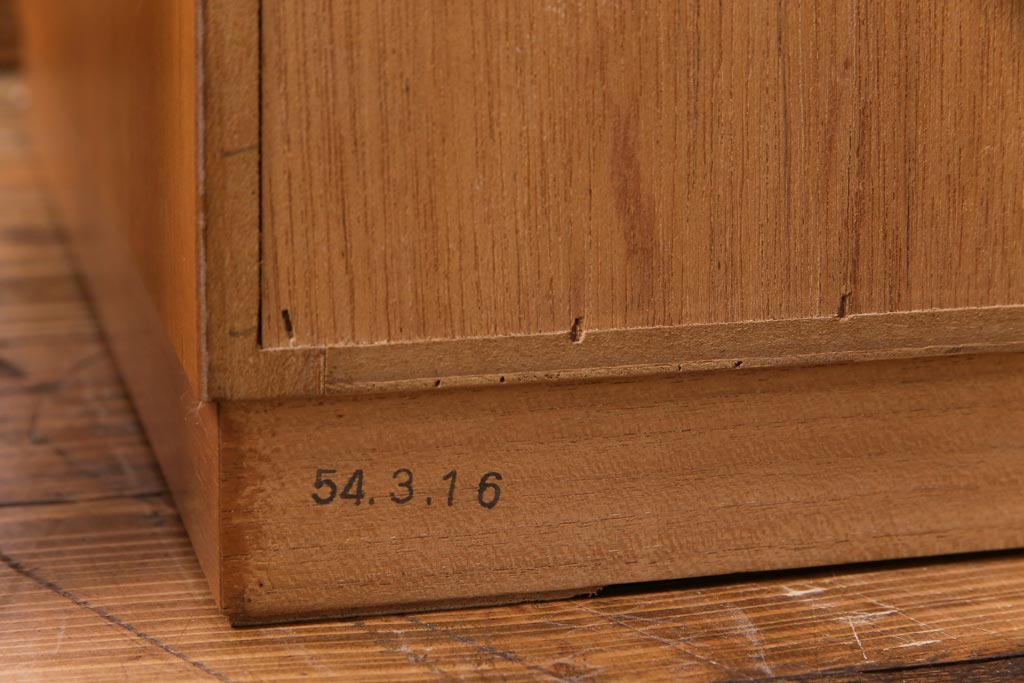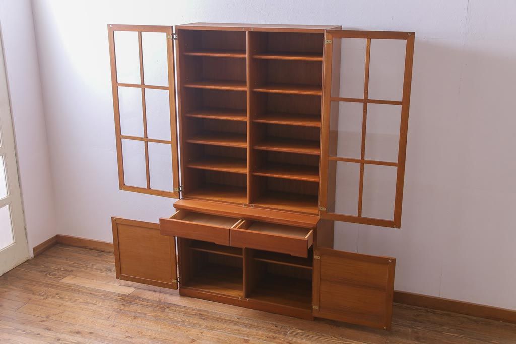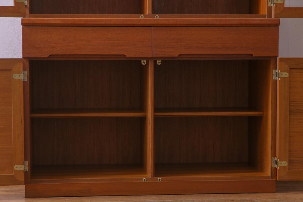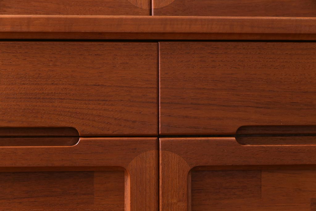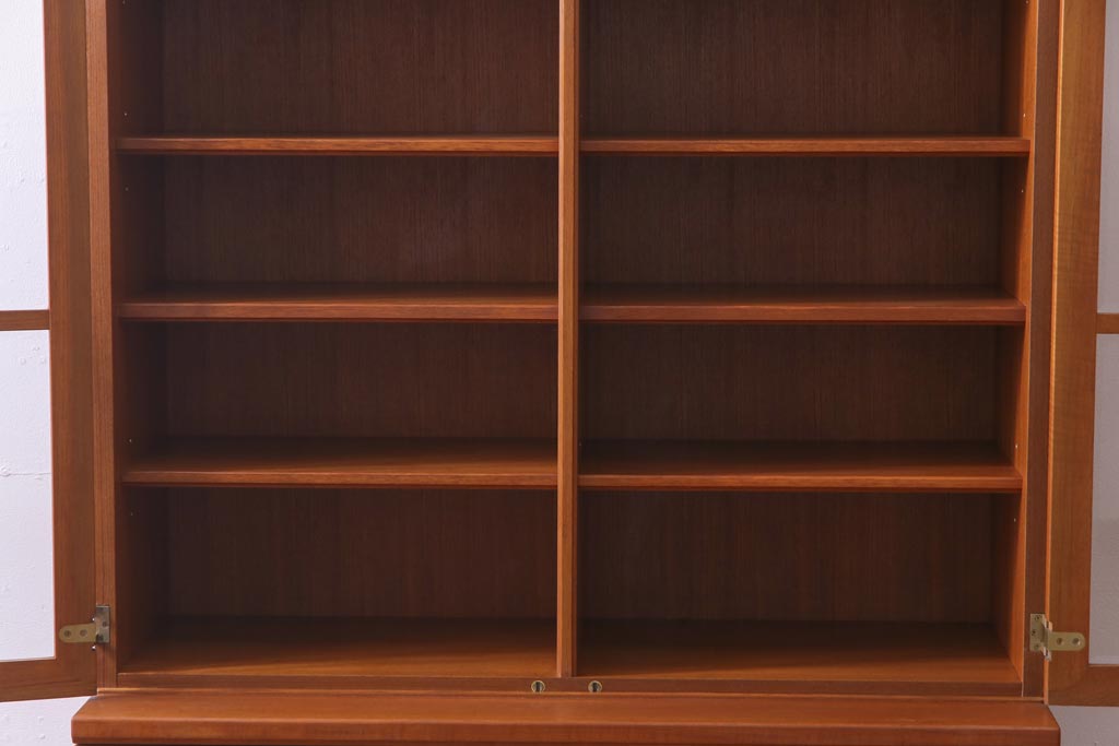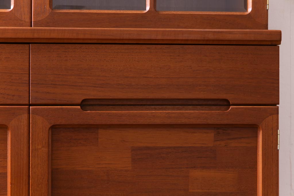 ヴィンテージ家具 ビンテージ 北欧風 チーク材 パーケット(寄せ木)の扉がおしゃれなキャビネット(食器棚、本棚)