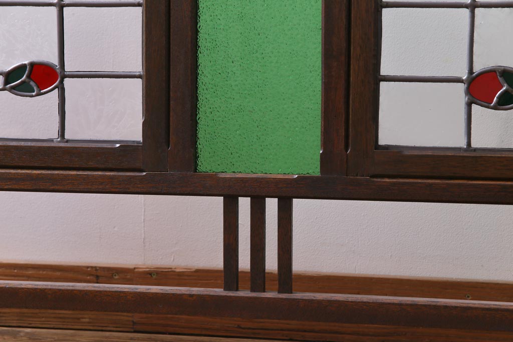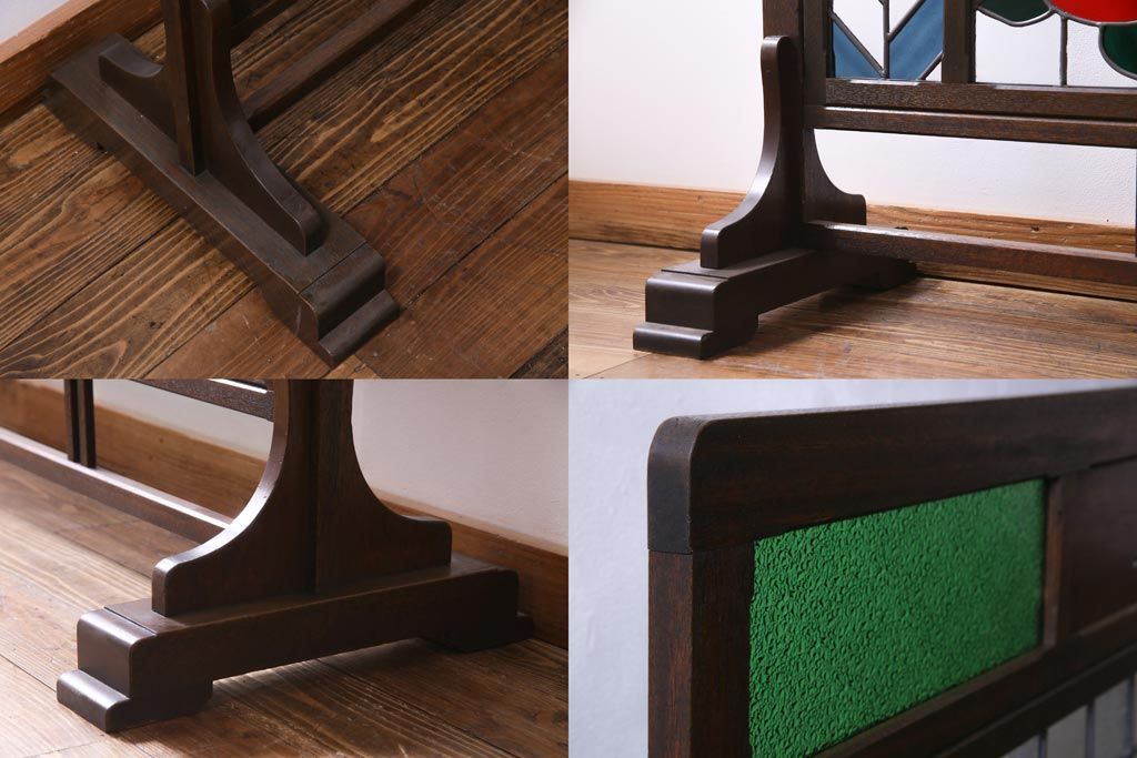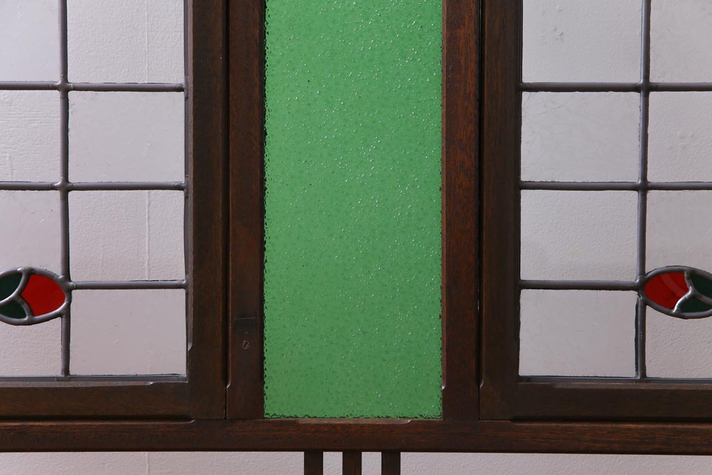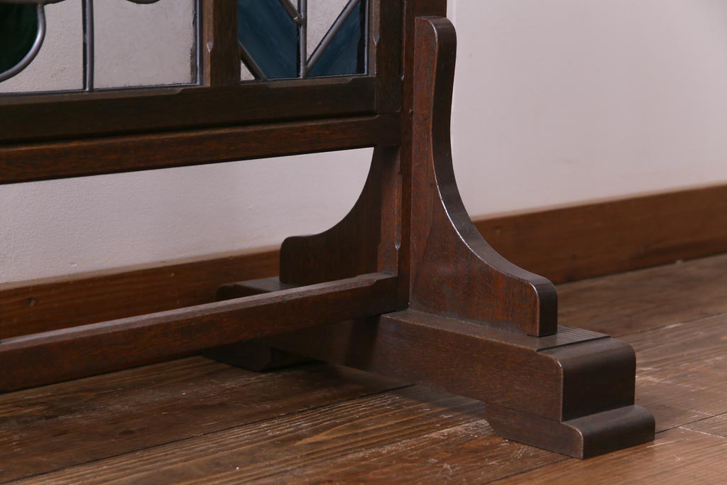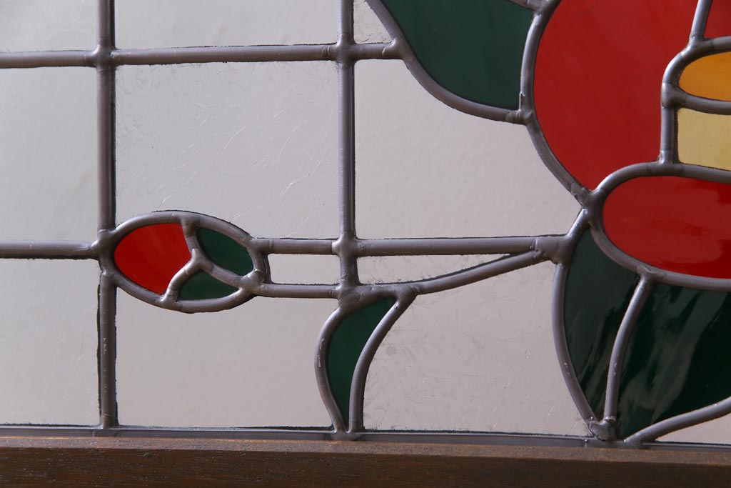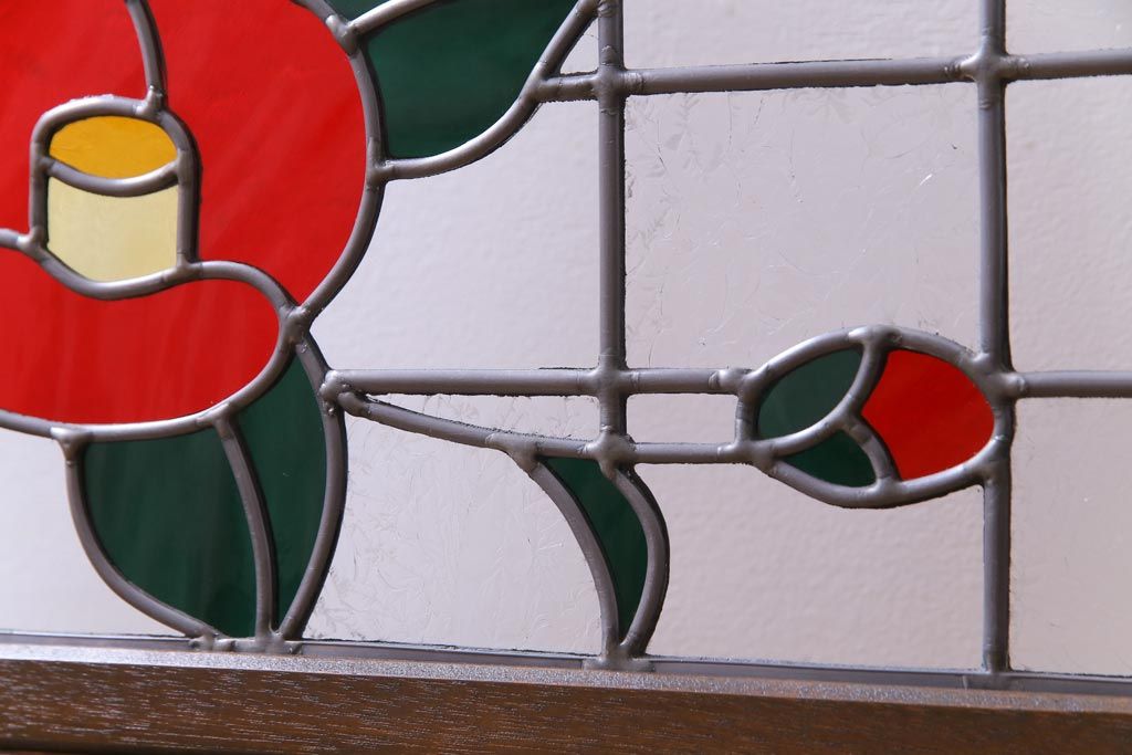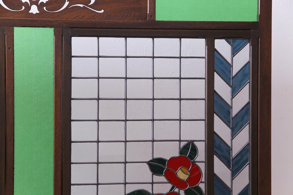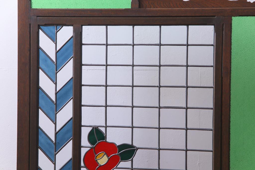 アンティーク雑貨 ラフジュ工房オリジナルステンドグラス 昭和初期 当時もの色ガラス ステンドグラス 椿の図がおしゃれな衝立(パーテーション、つい立て、仕切り)