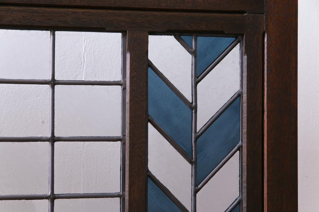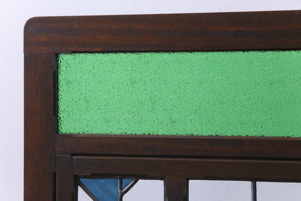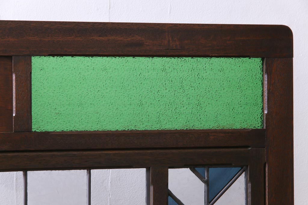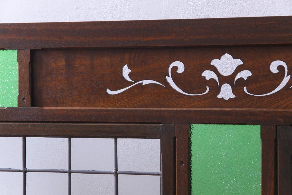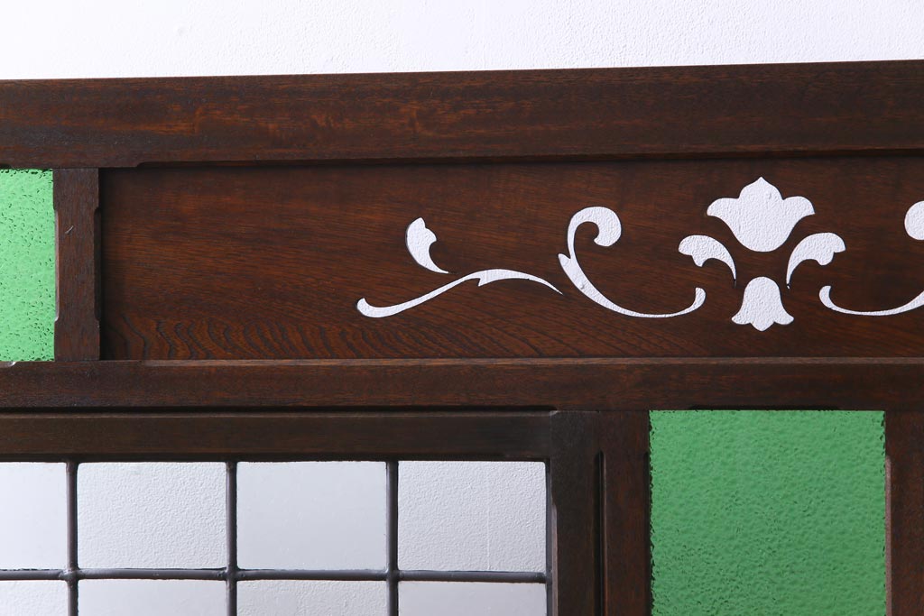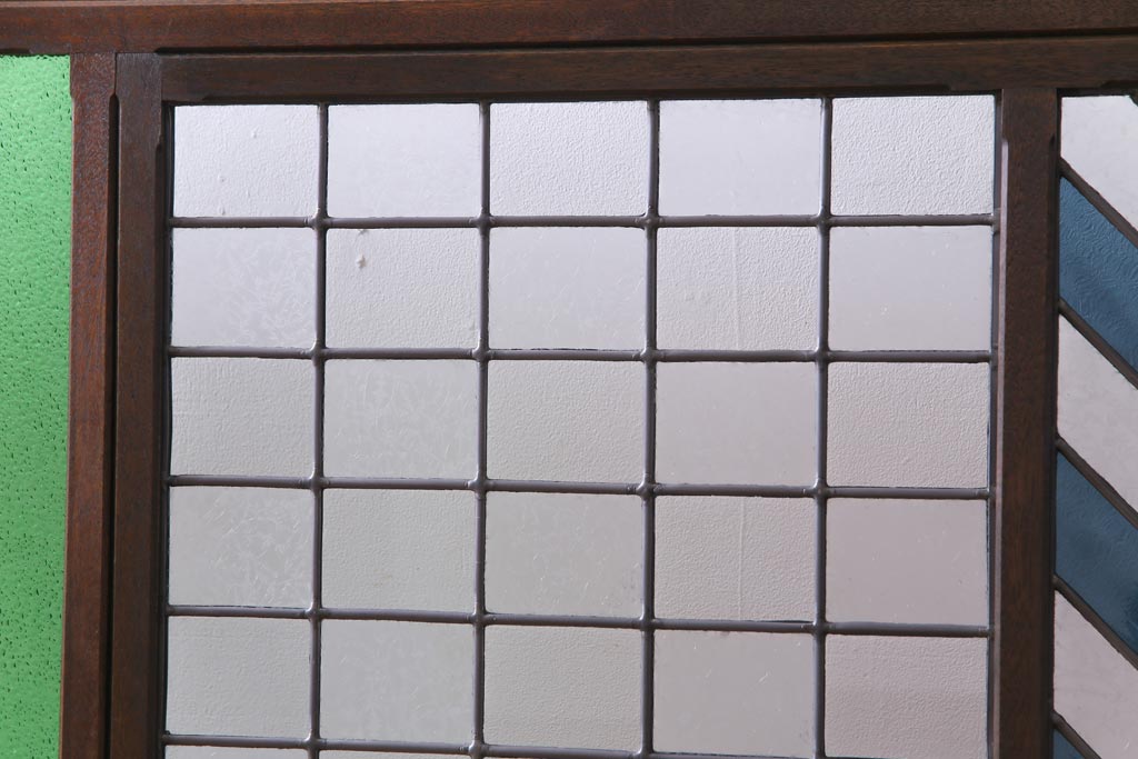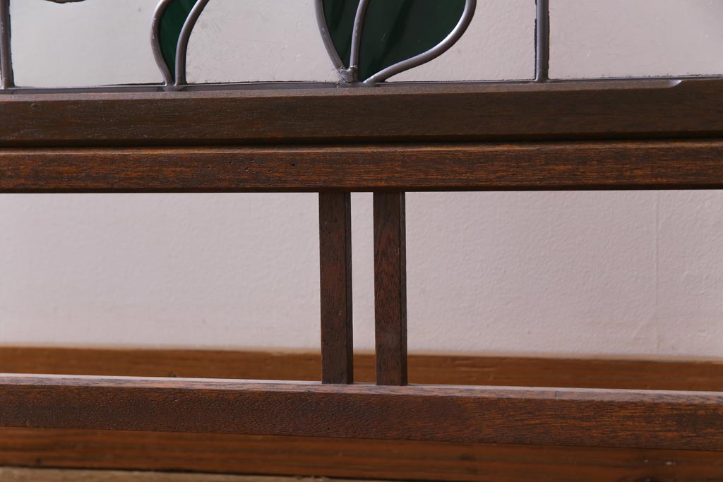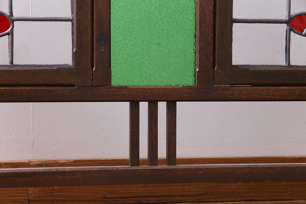 アンティーク雑貨 ラフジュ工房オリジナルステンドグラス 昭和初期 当時もの色ガラス ステンドグラス 椿の図がおしゃれな衝立(パーテーション、つい立て、仕切り)