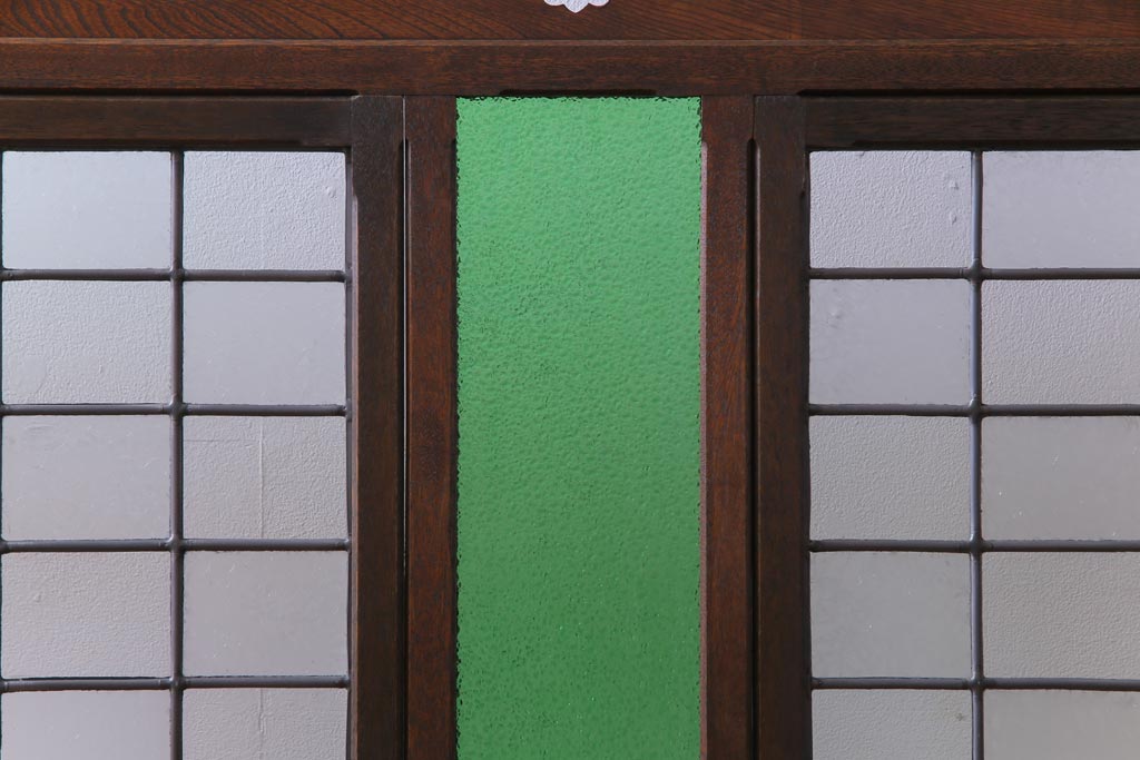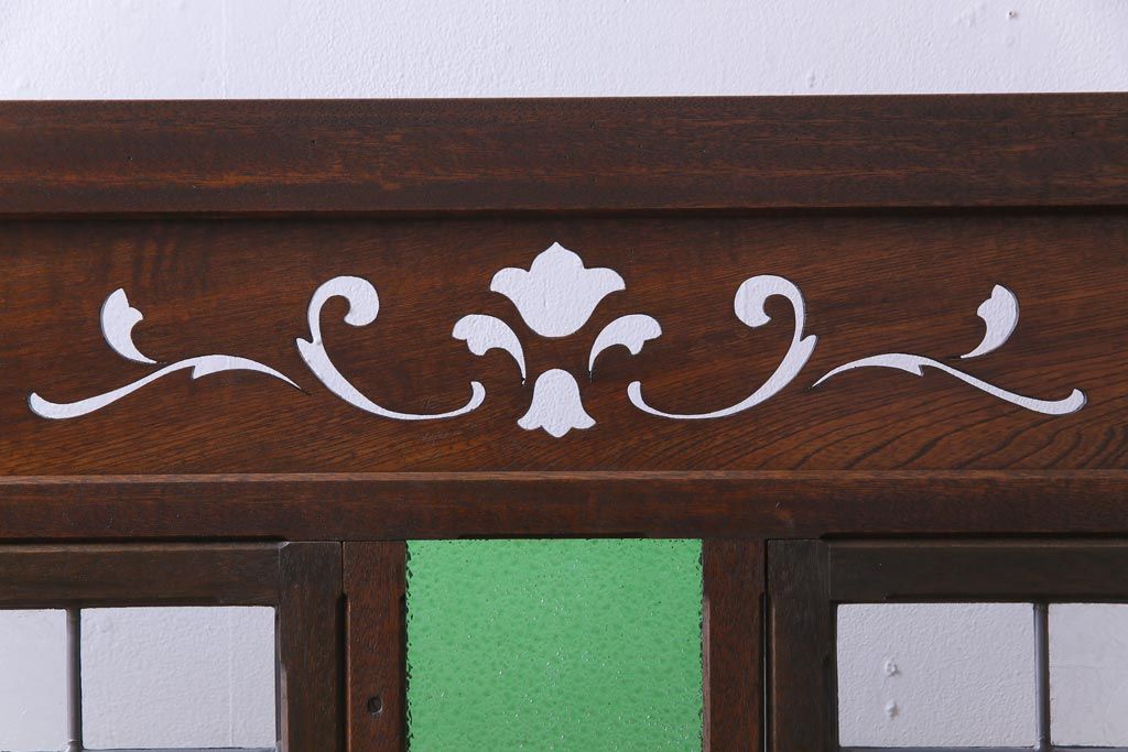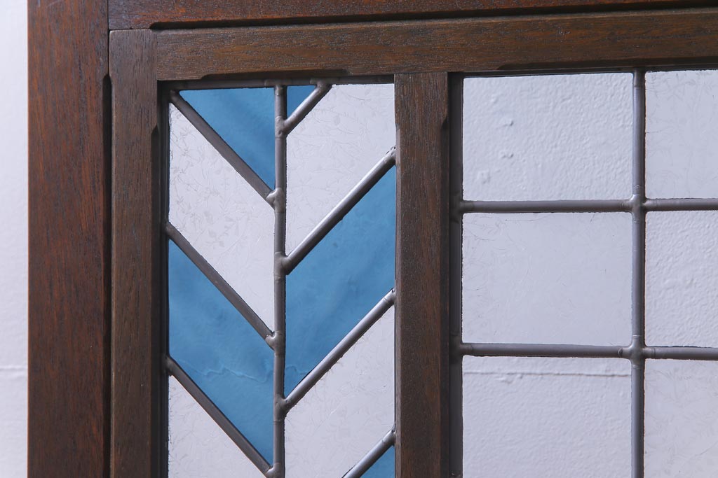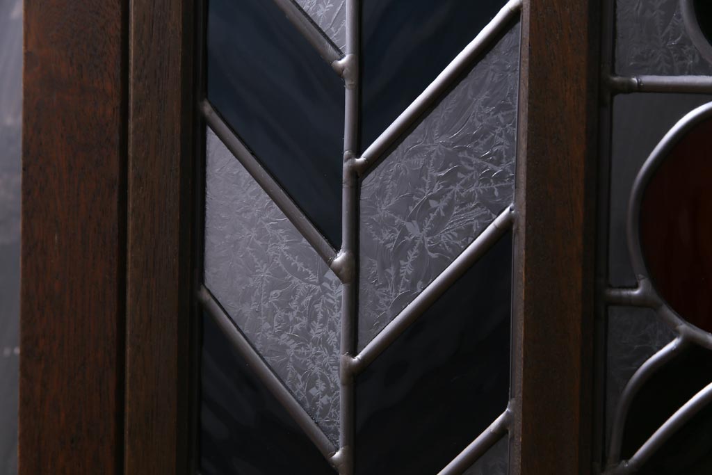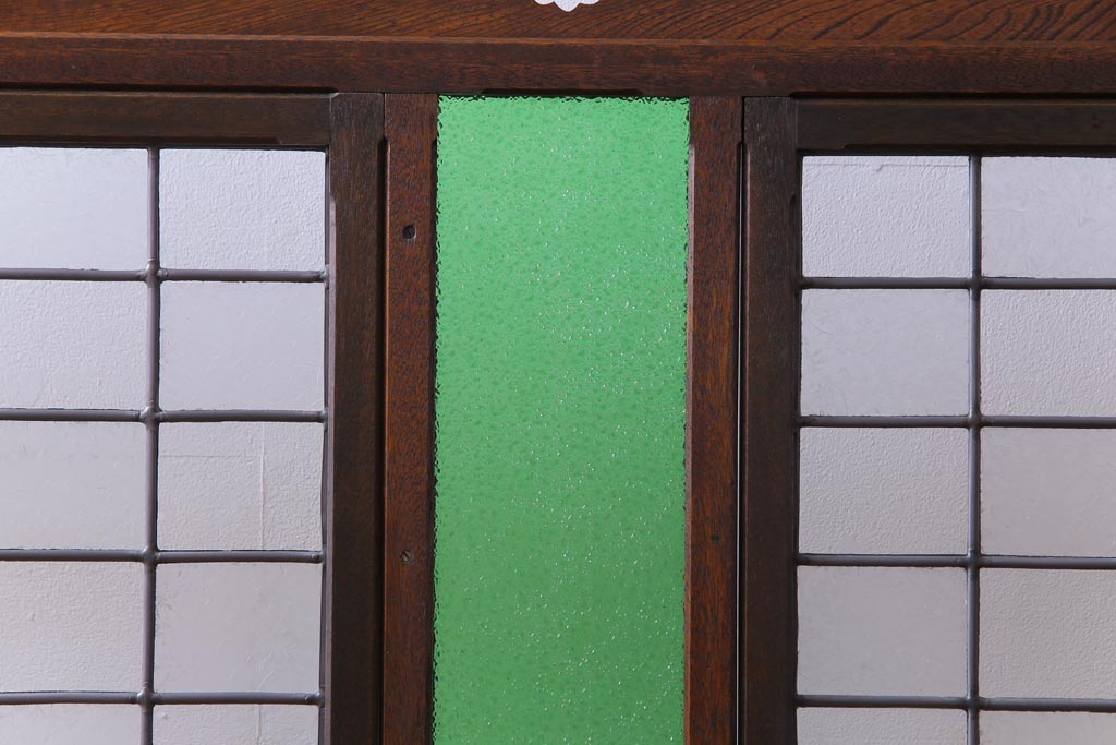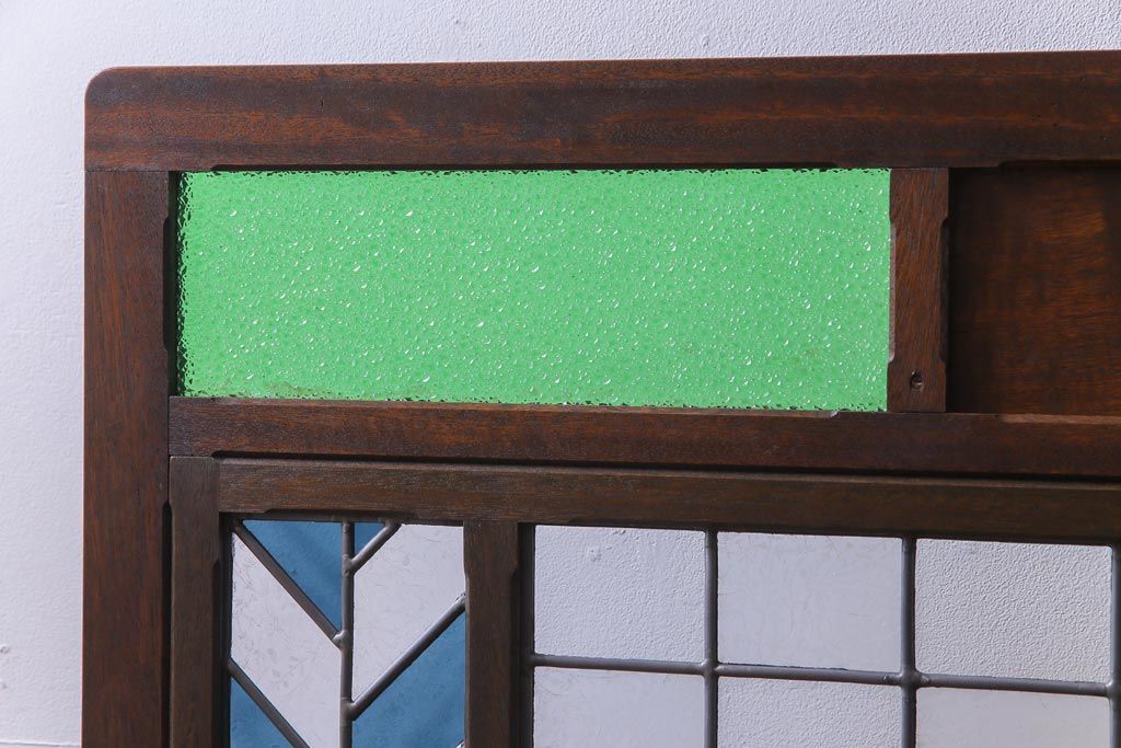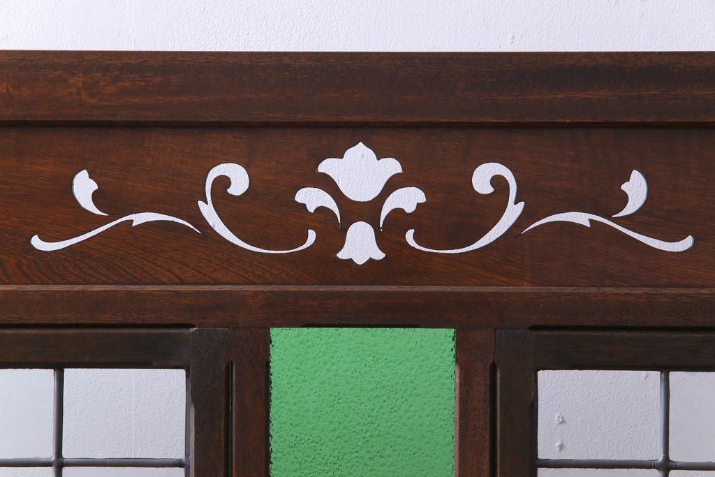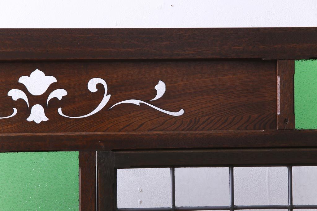 アンティーク雑貨 ラフジュ工房オリジナルステンドグラス 昭和初期 当時もの色ガラス ステンドグラス 椿の図がおしゃれな衝立(パーテーション、つい立て、仕切り)