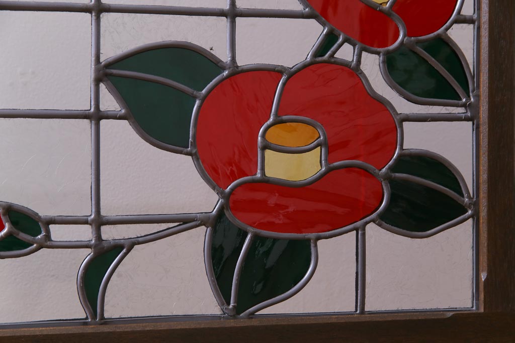 ラフジュ工房> 衝立・パーテーション > アンティーク雑貨 ラフジュ工房オリジナルステンドグラス 昭和初期 当時もの色ガラス ステンドグラス 椿の図がおしゃれな衝立(パーテーション、つい立て、仕切り)