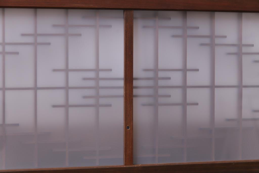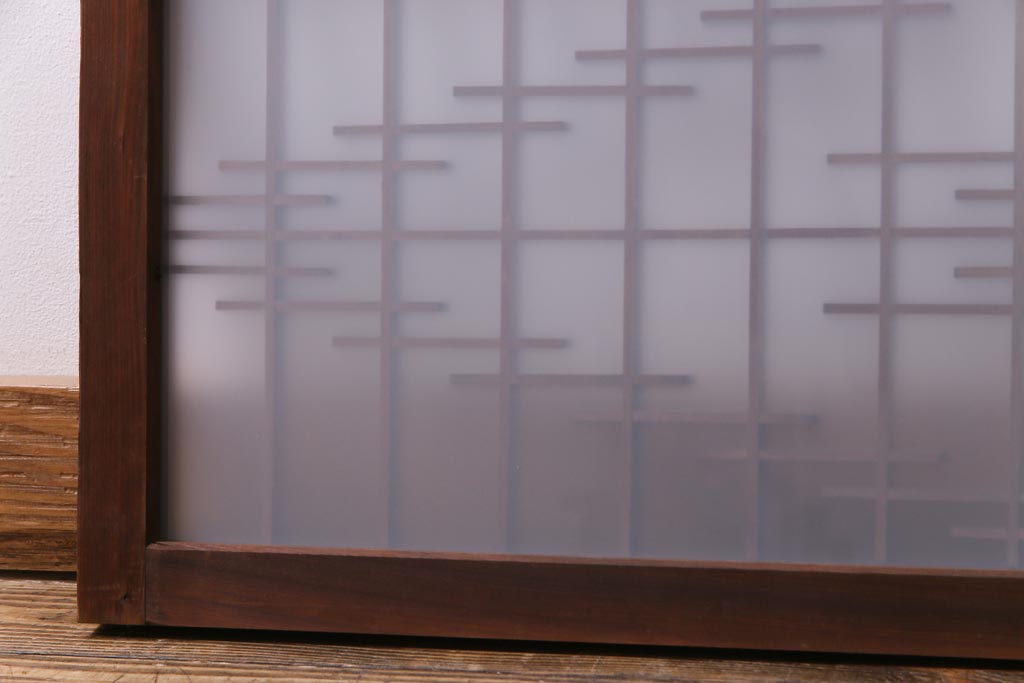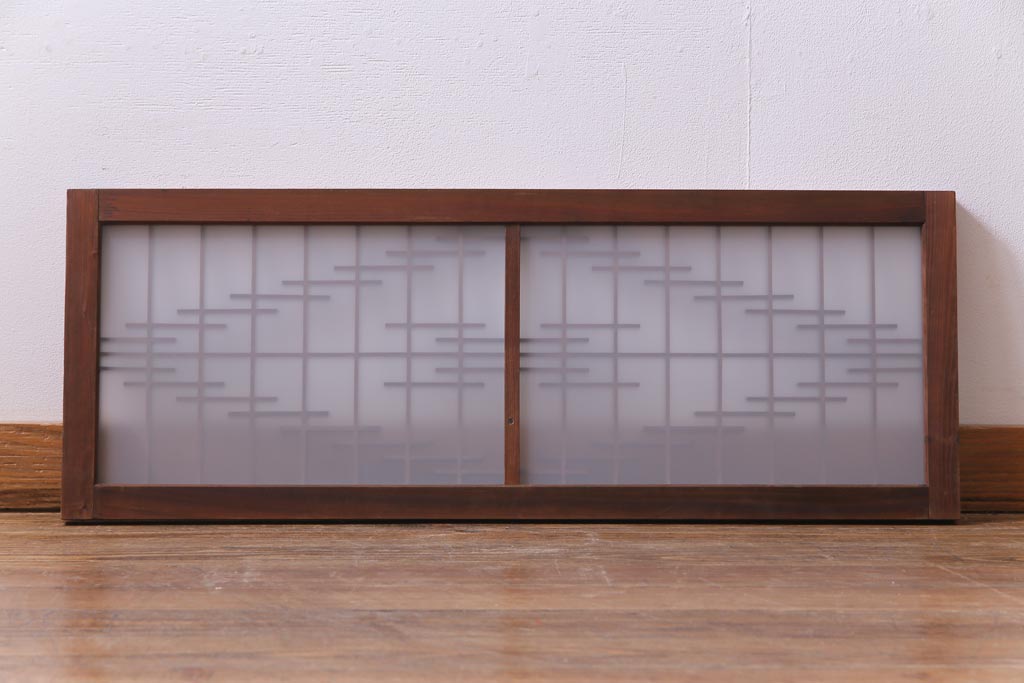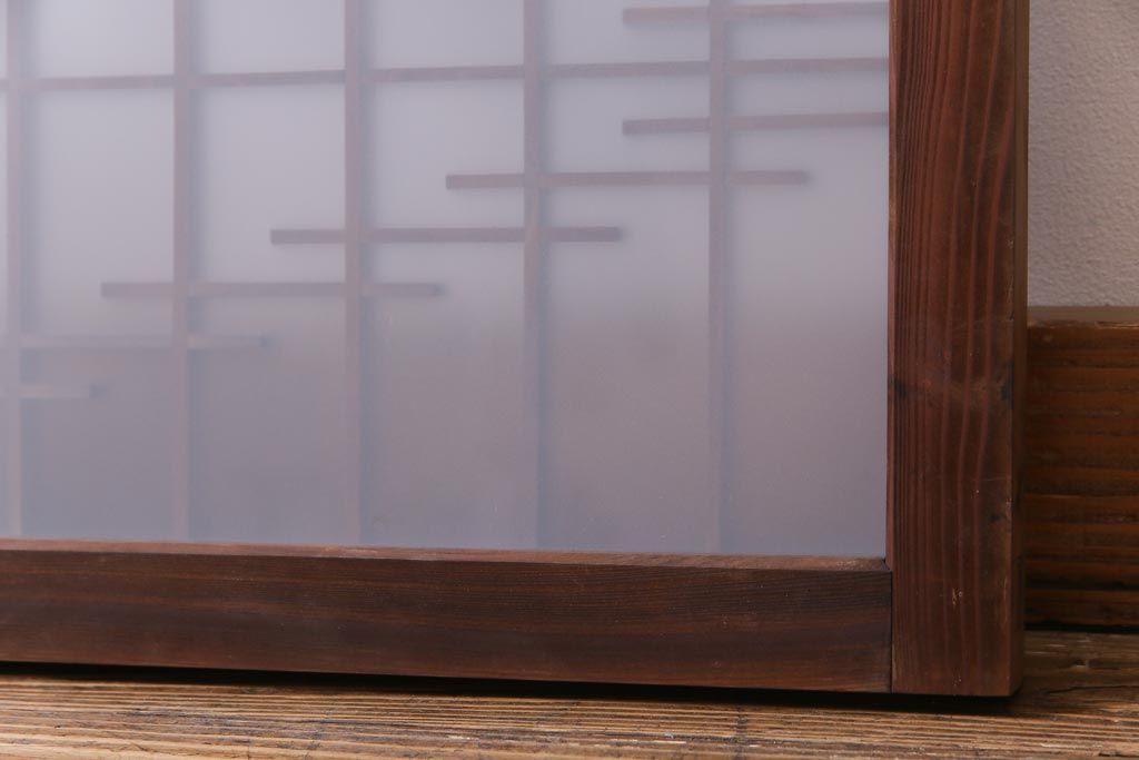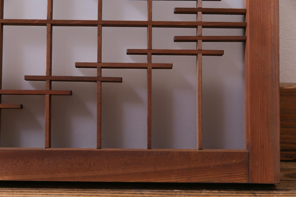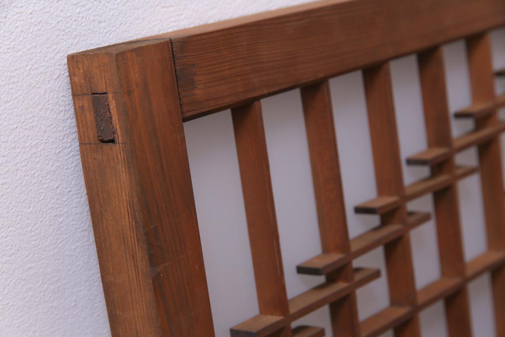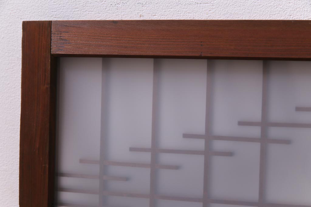 昭和初期 素朴ながら味わい深い組子の欄間(明り取り)(1)です。 菱型に形づくられた組子が 素朴ながら味わい深い雰囲気を漂わせる欄間です。 裏側にはすりガラスが入っていますので、 外からの冷たい空気などは遮ってくれますよ。 古民家スタイルや昭和レトロなお部屋にいかがでしょうか。 多少の傷はありますが、目立つダメージはなく、状態良好です。 使用上問題のあるダメージはありません。 ■框サイズ 上35mm/左30mm/右30mm/下35mm