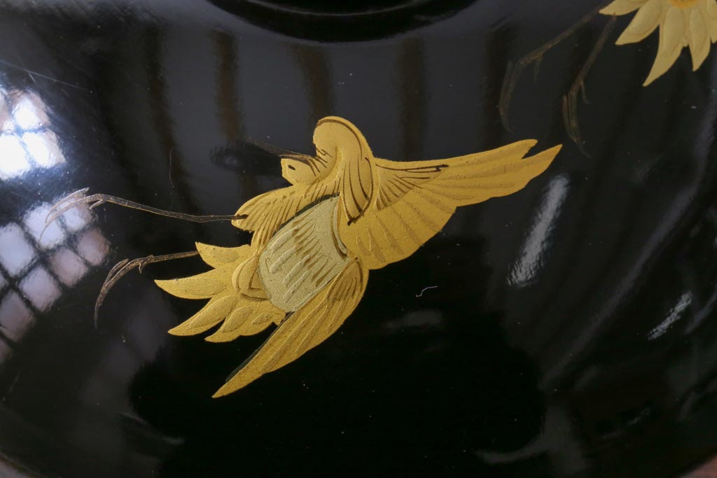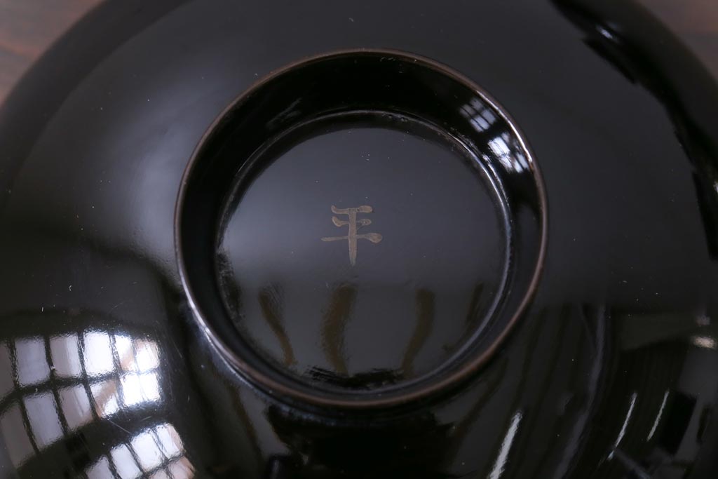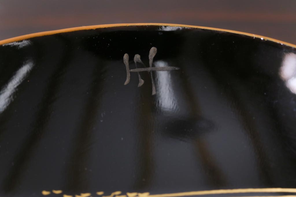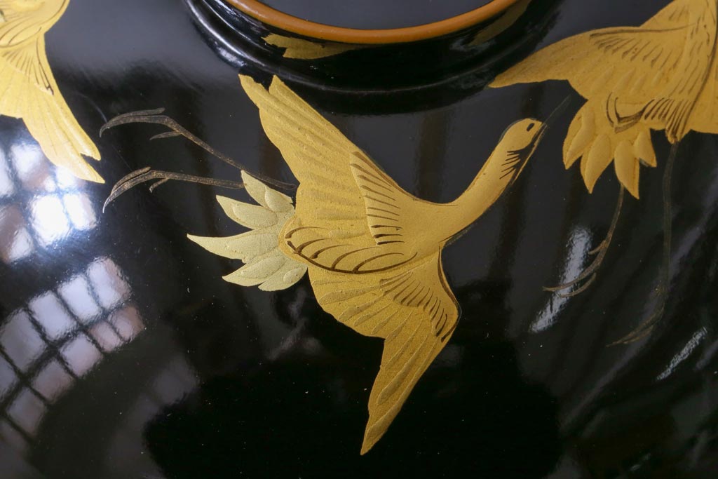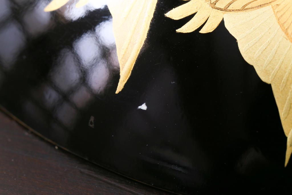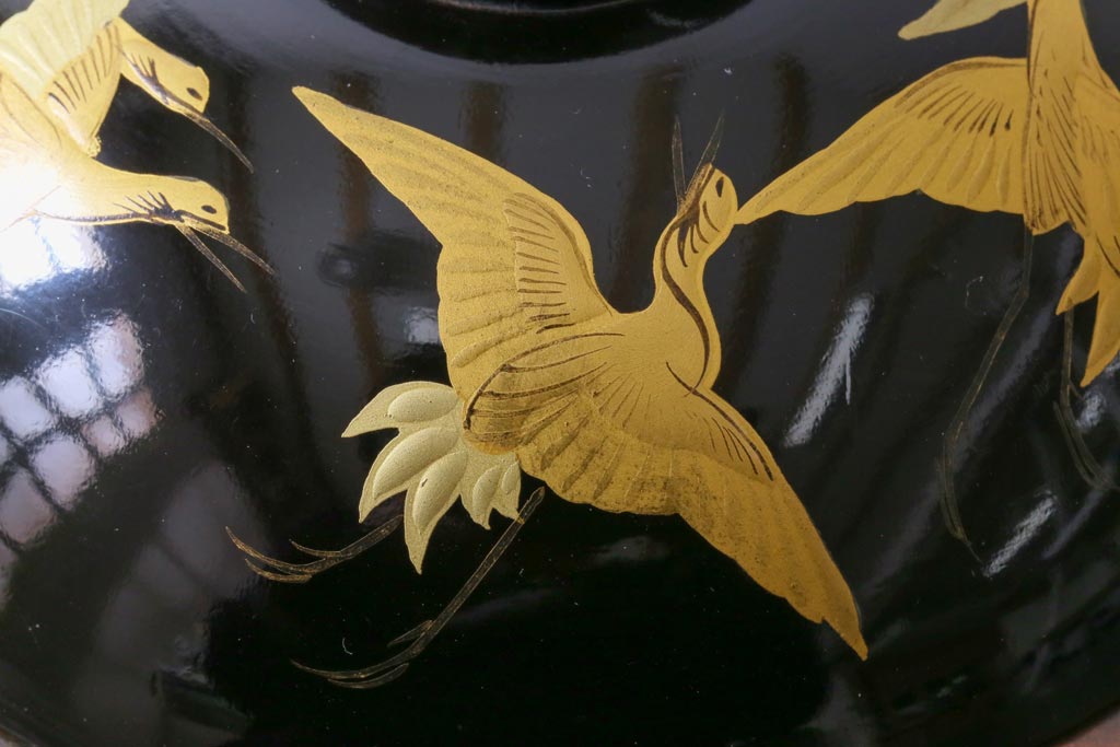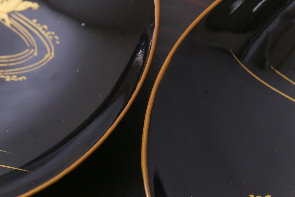 ラフジュ工房> 骨董・美術品> 骨董-漆器 > 和製アンティーク 鶴・亀図柄 黒漆に金彩蒔絵が映える木製お椀5客セット(漆器)