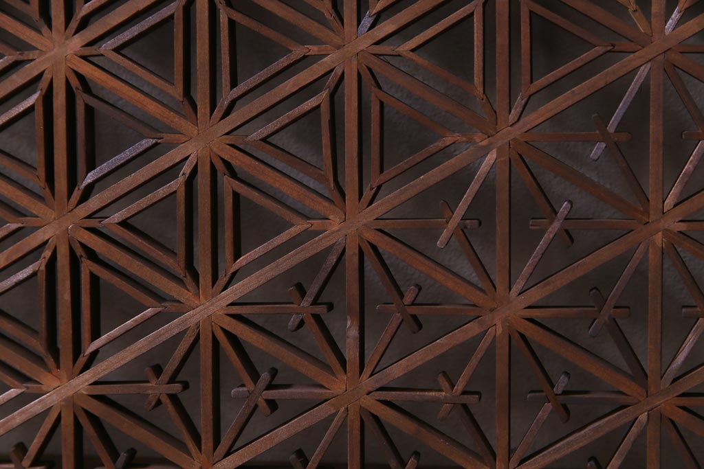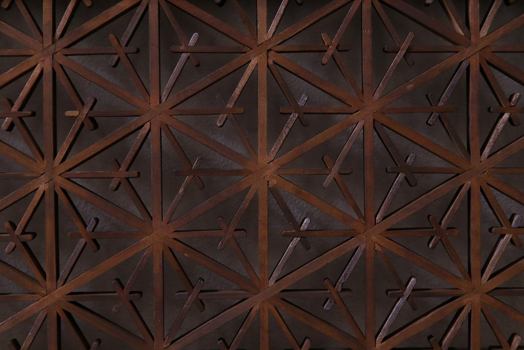 昭和初期 麻の葉・胡麻・桔梗亀甲 3種の文様が楽しめる組子欄間(明り取り)です。