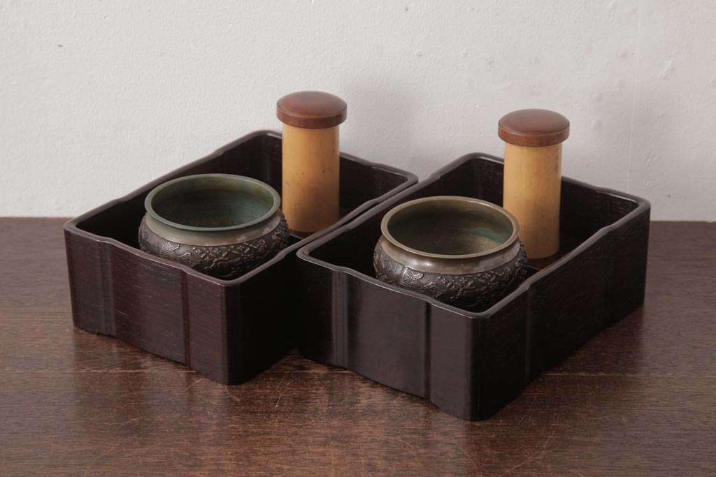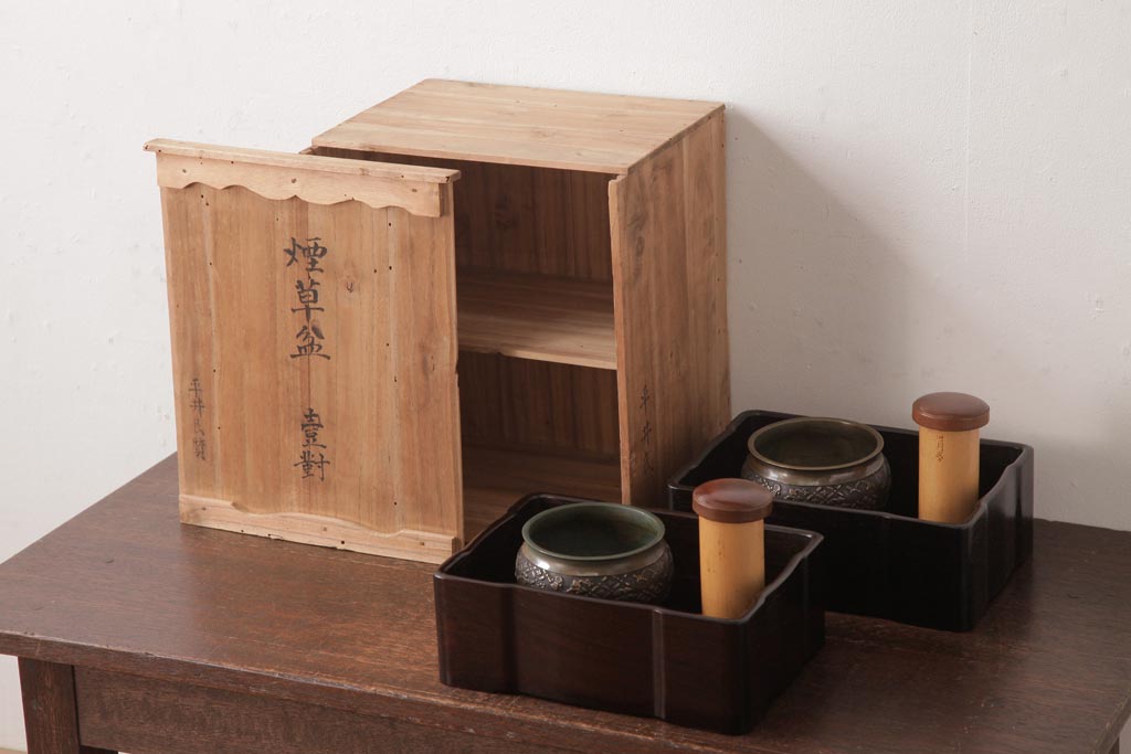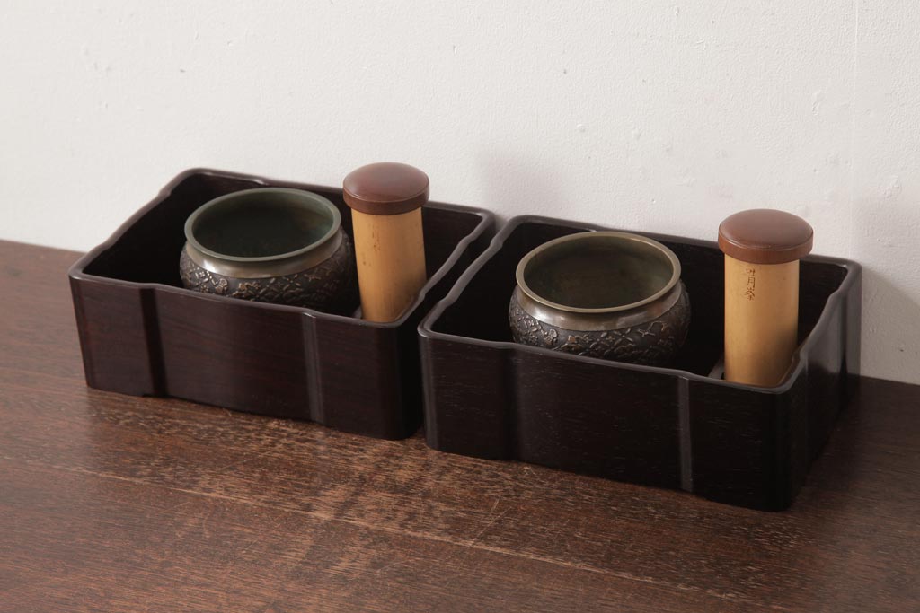 アンティーク雑貨 和製アンティーク 箱付 唐木 紫檀材 煙草盆・火入