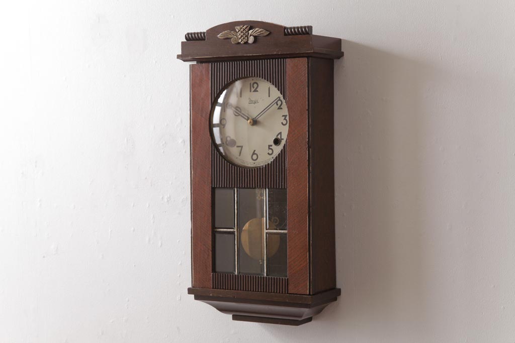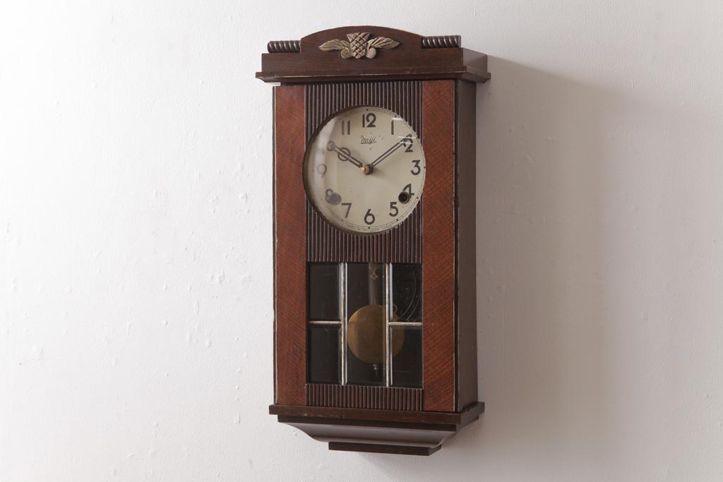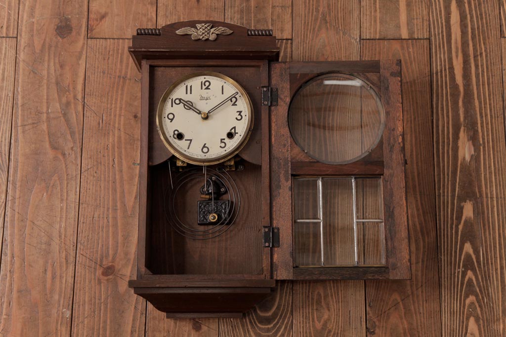 アンティーク雑貨 Meiji(明治時計社) 手巻き式 クラシカルな佇まいの掛け時計(柱時計、振り子時計)(1)