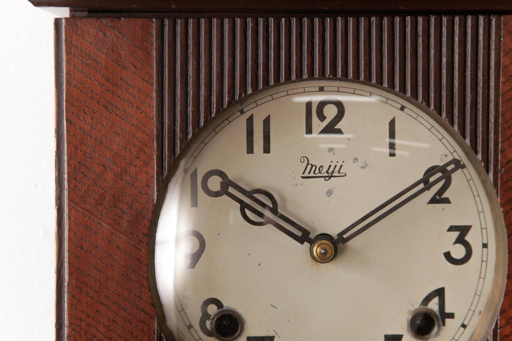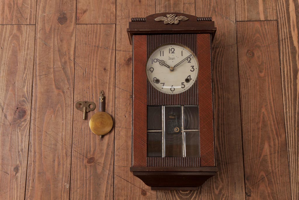 時計> 掛け時計 > アンティーク雑貨 Meiji(明治時計社) 手巻き式 クラシカルな佇まいの掛け時計(柱時計、振り子時計)(1)