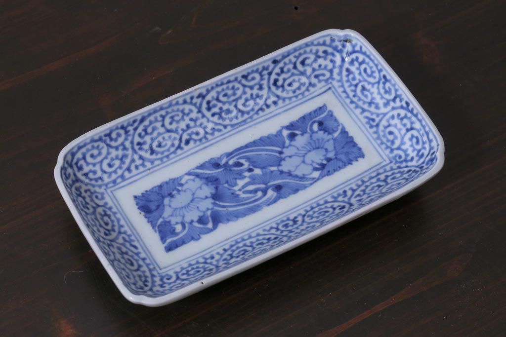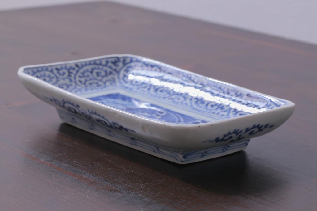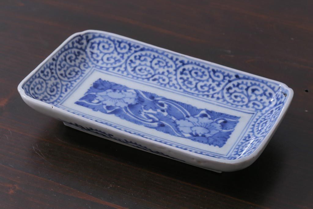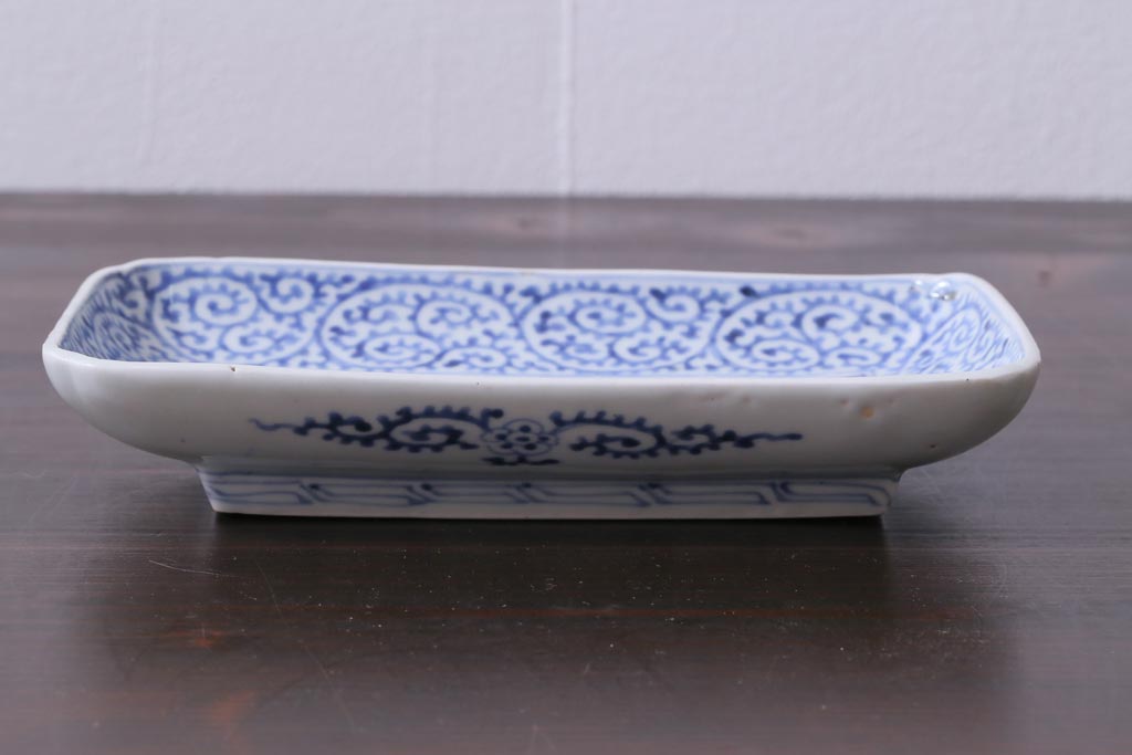 ラフジュ工房> 和食器・茶道具> 皿 > 古民具・骨董 江戸期 古伊万里 冨貴長春 縁起の良い蛸唐草長皿(和食器)