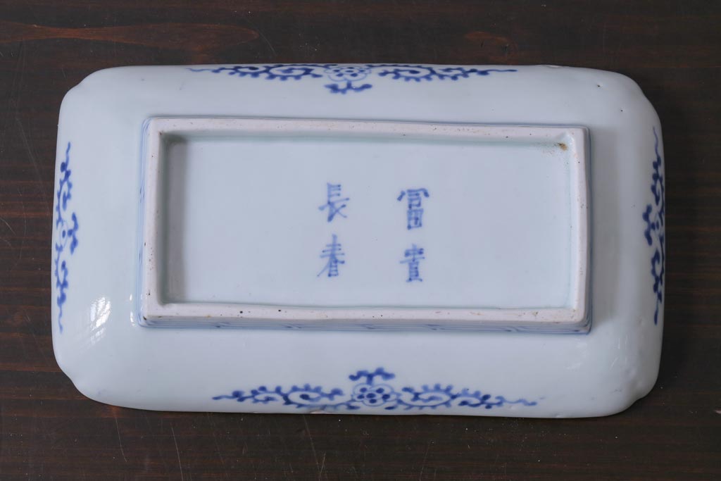 ラフジュ工房> 骨董・美術品> 骨董-陶磁器 > 古民具・骨董 江戸期 古伊万里 冨貴長春 縁起の良い蛸唐草長皿(和食器)