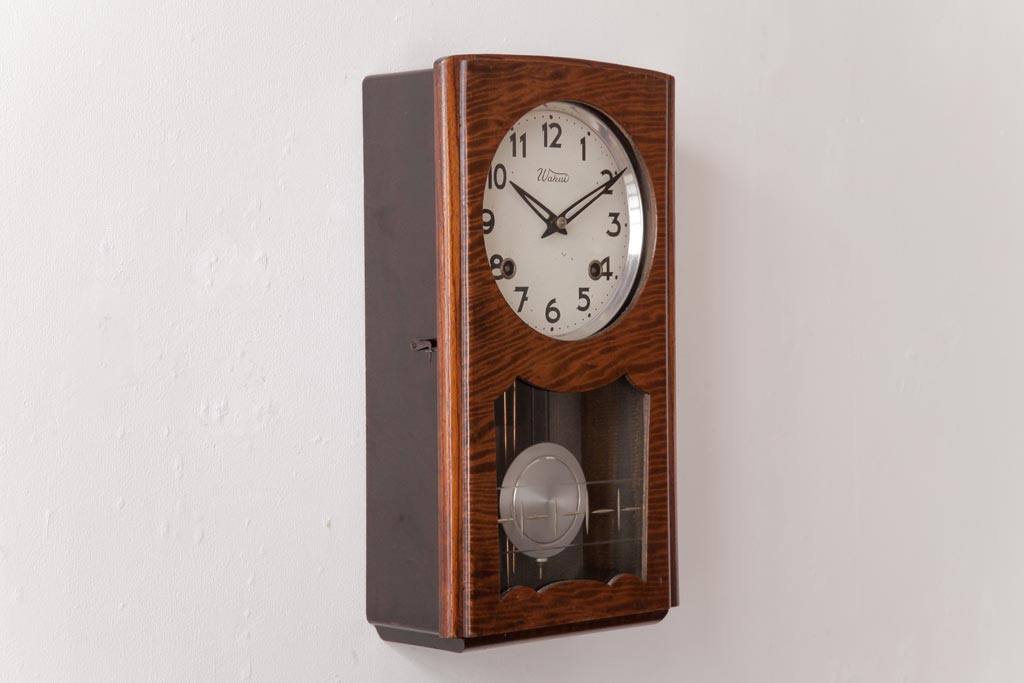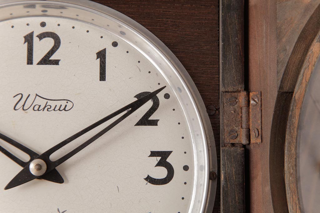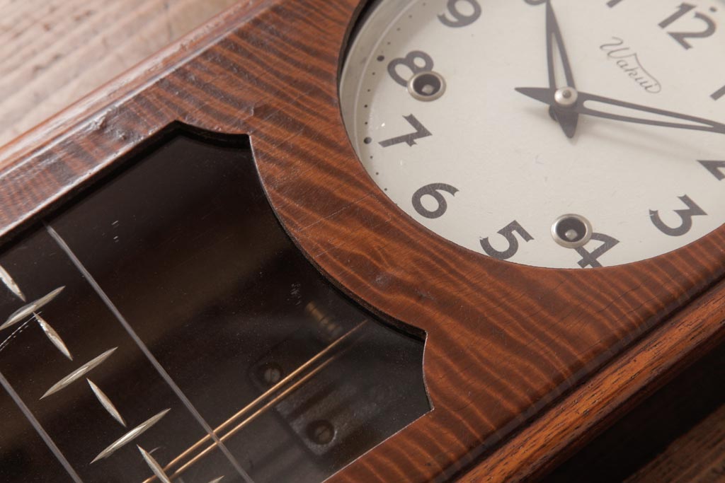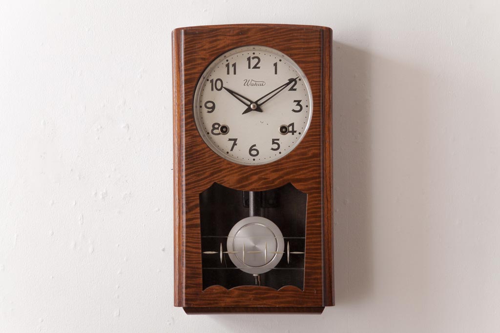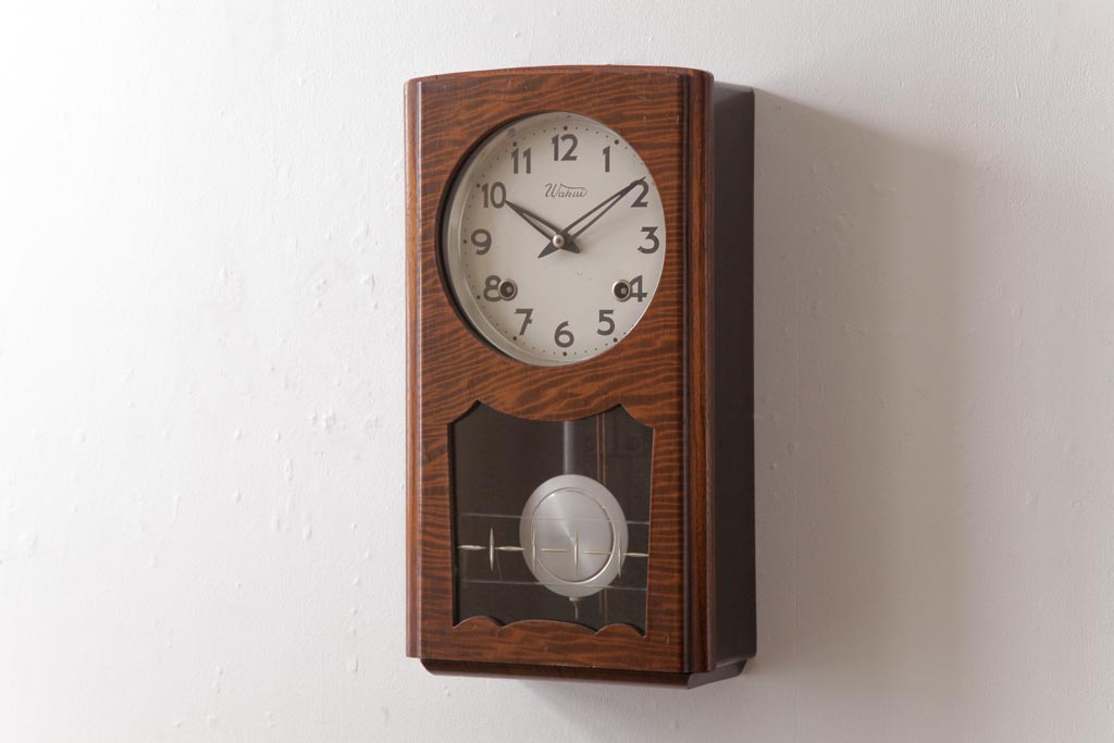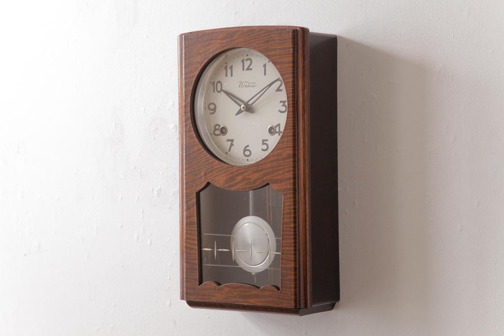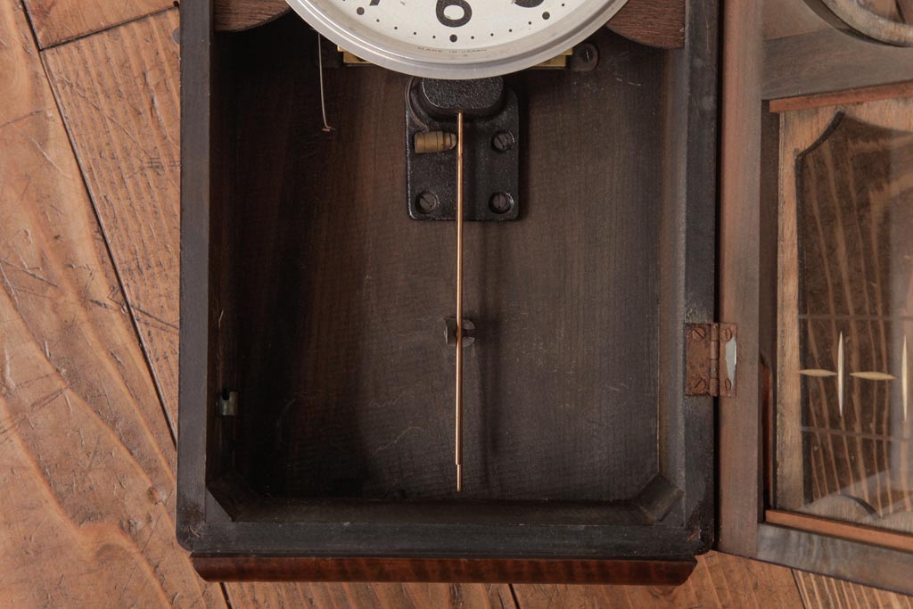 時計> 掛け時計 > アンティーク雑貨 昭和レトロ WAKUI製 手巻き式 ガラスのカットが上品な掛け時計(柱時計、振り子時計)