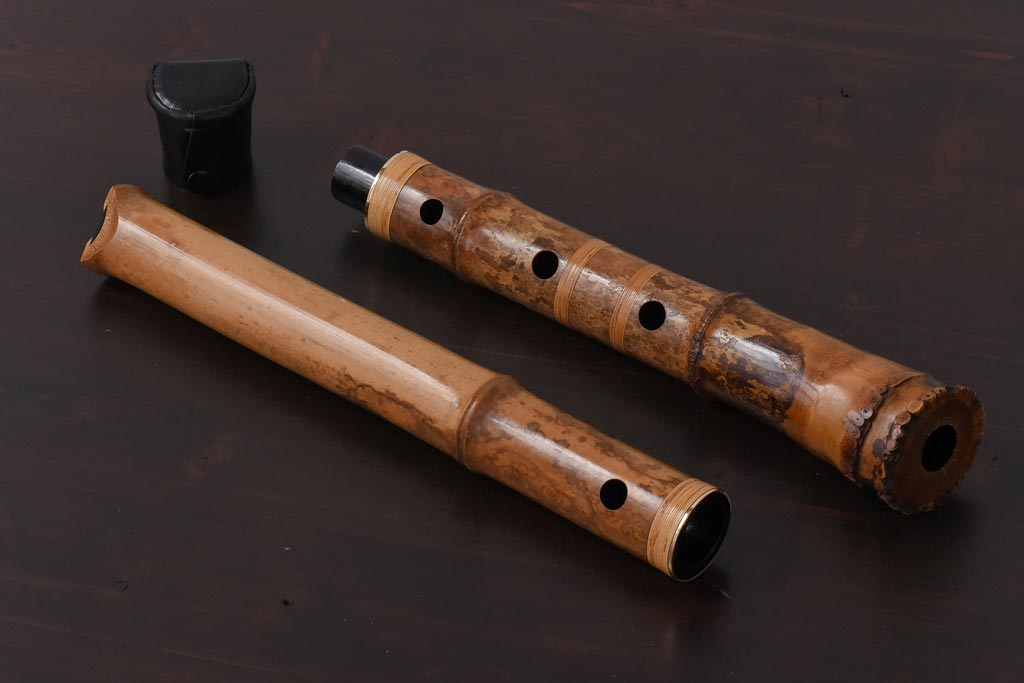 アンティーク雑貨 都山流 河野玉水 尺八 金歌口 金中継ぎ(定価約70万円)