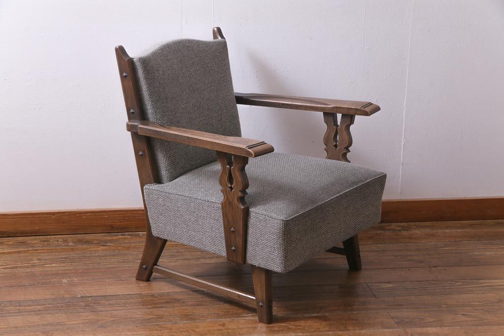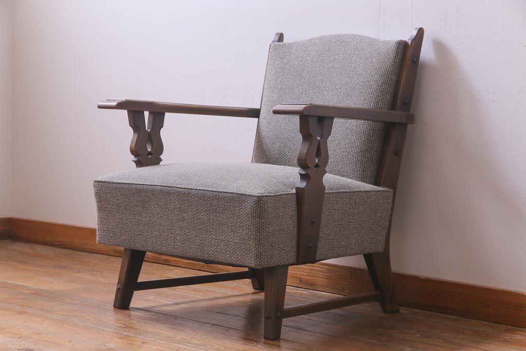 中古 神戸洋家具 永田良介商店 メンズライクにもおすすめなビンテージのチロル型ソファ(1人掛けソファ)(1)