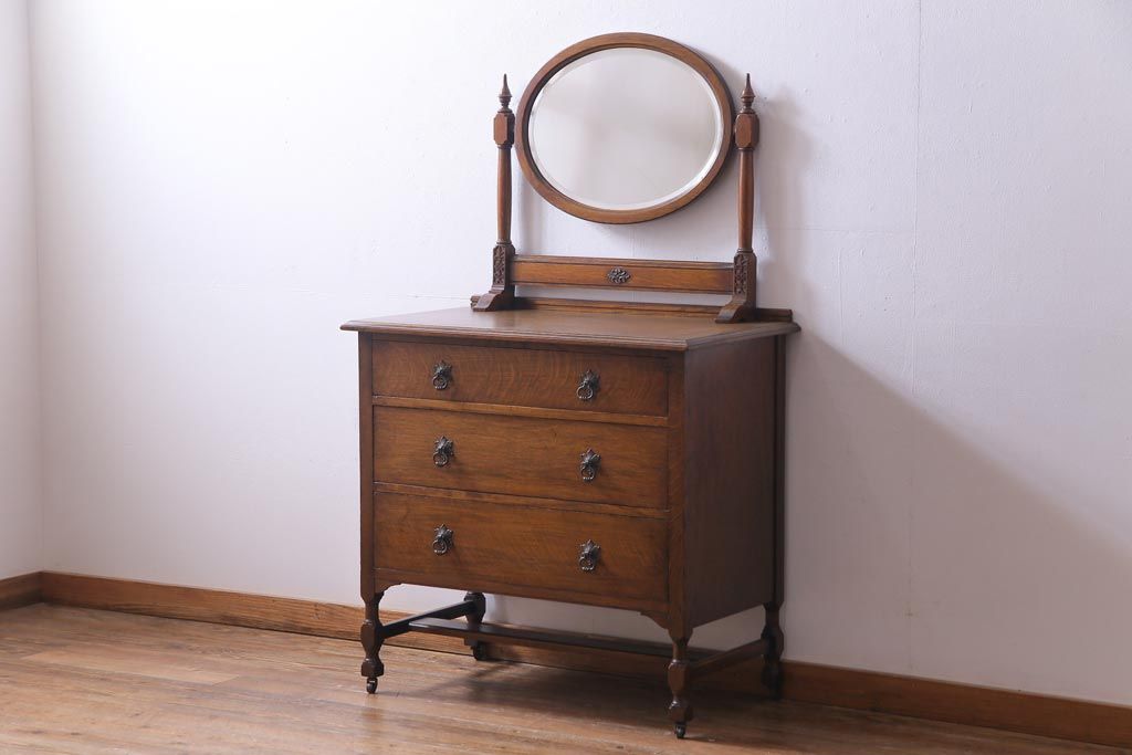 ラフジュ工房> ドレッサー・鏡台> ドレッシングチェスト > アンティーク家具 イギリスアンティーク オーク材 小振りなドレッシングチェスト(ドレッサー)