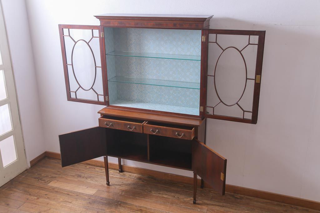 アンティーク家具 イギリスアンティーク Christopher Pratt&Sons BRADFORD 象嵌 繊細なデザインの飾り棚(戸棚)