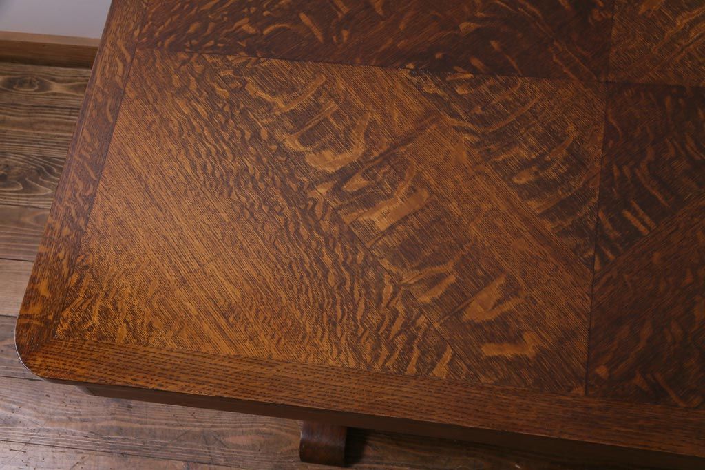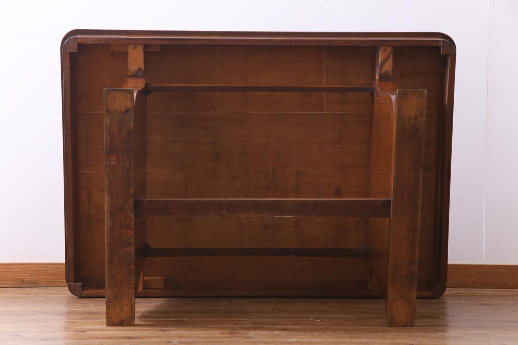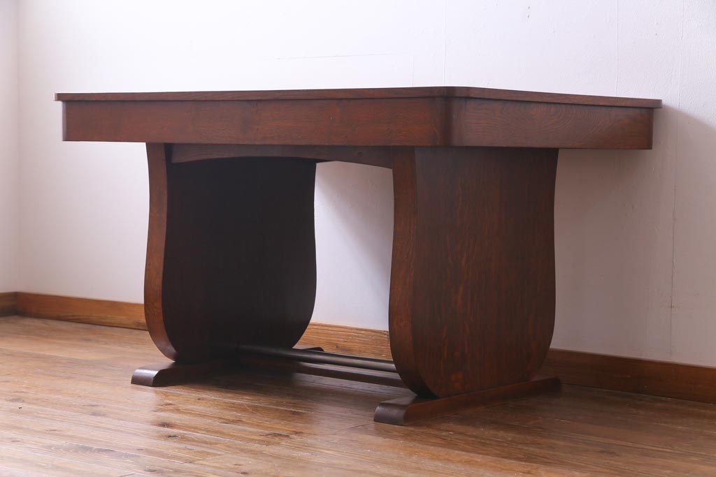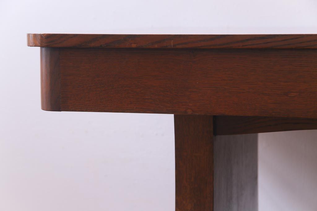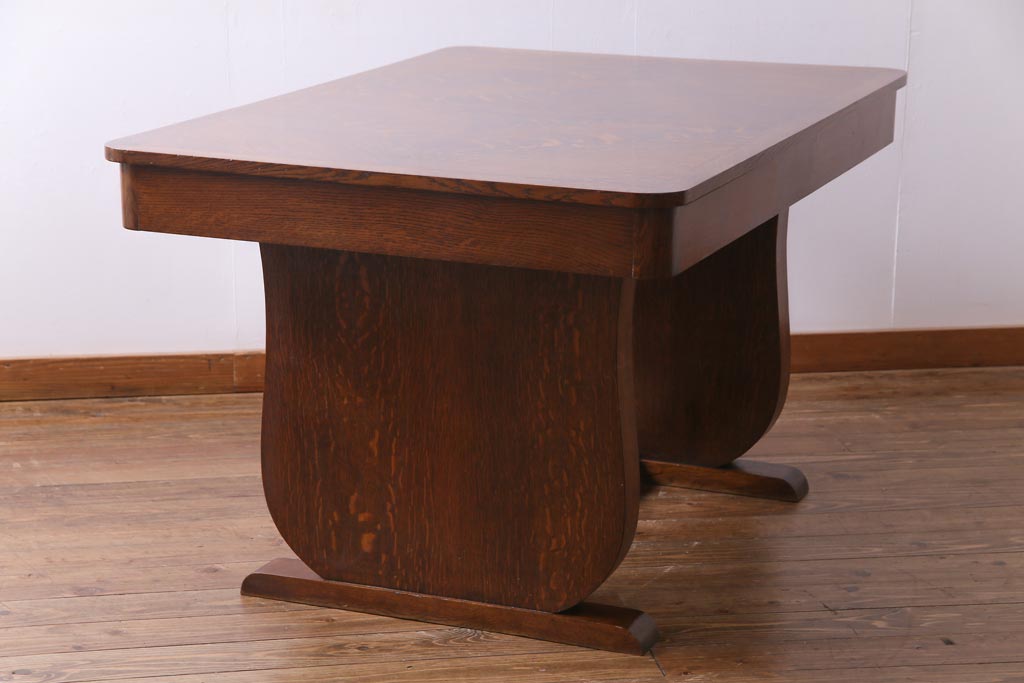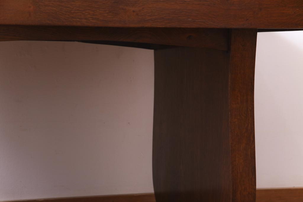ラフジュ工房> テーブル> 4人用ダイニングテーブル > ヴィンテージ家具 イギリスビンテージ オーク材 脚と天板が個性的な重厚感漂う4人掛けダイニングテーブル