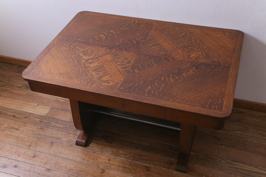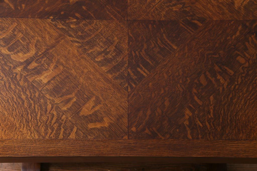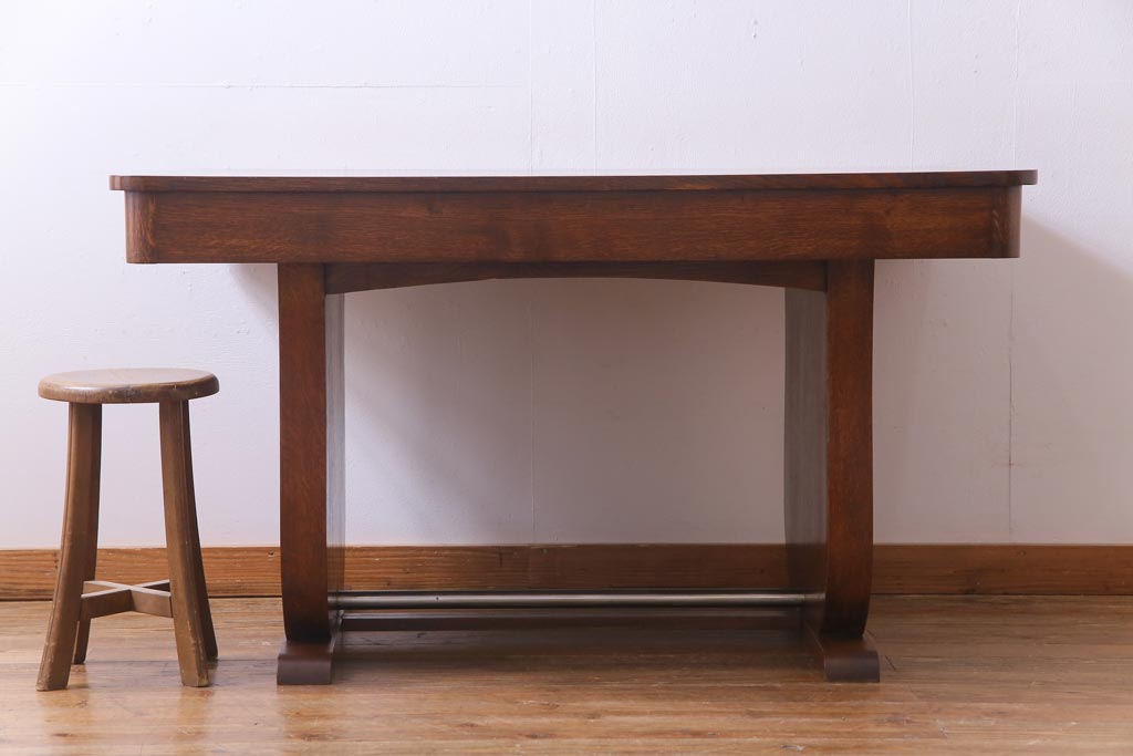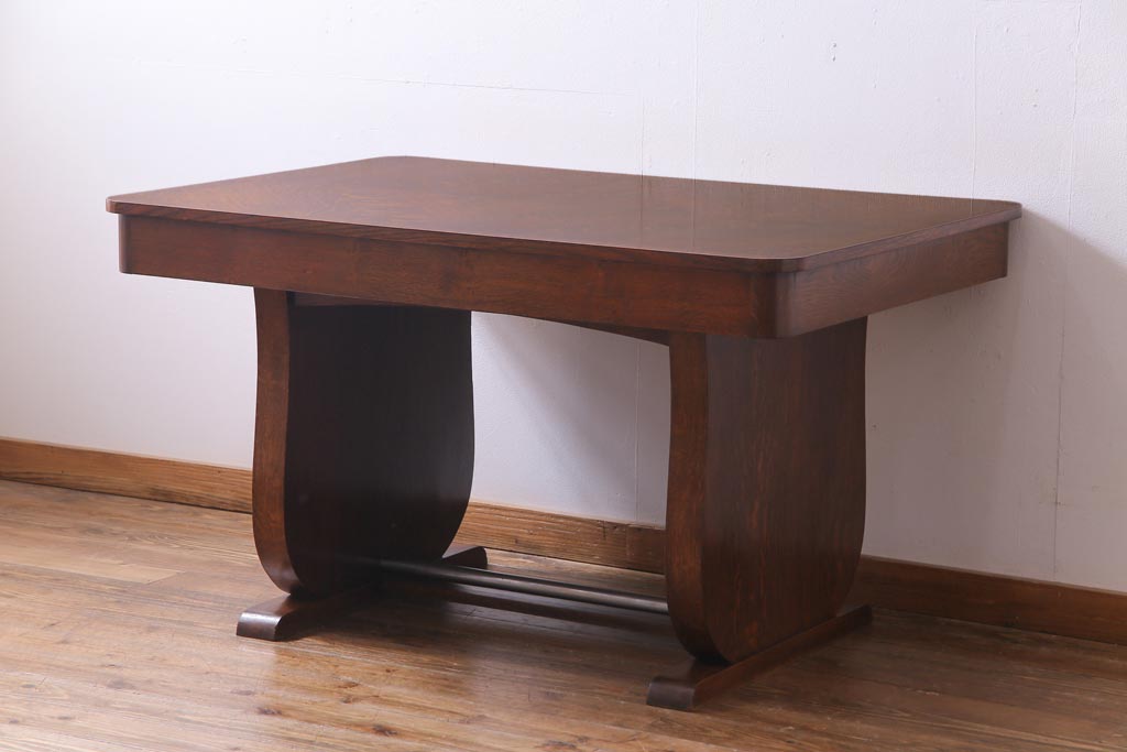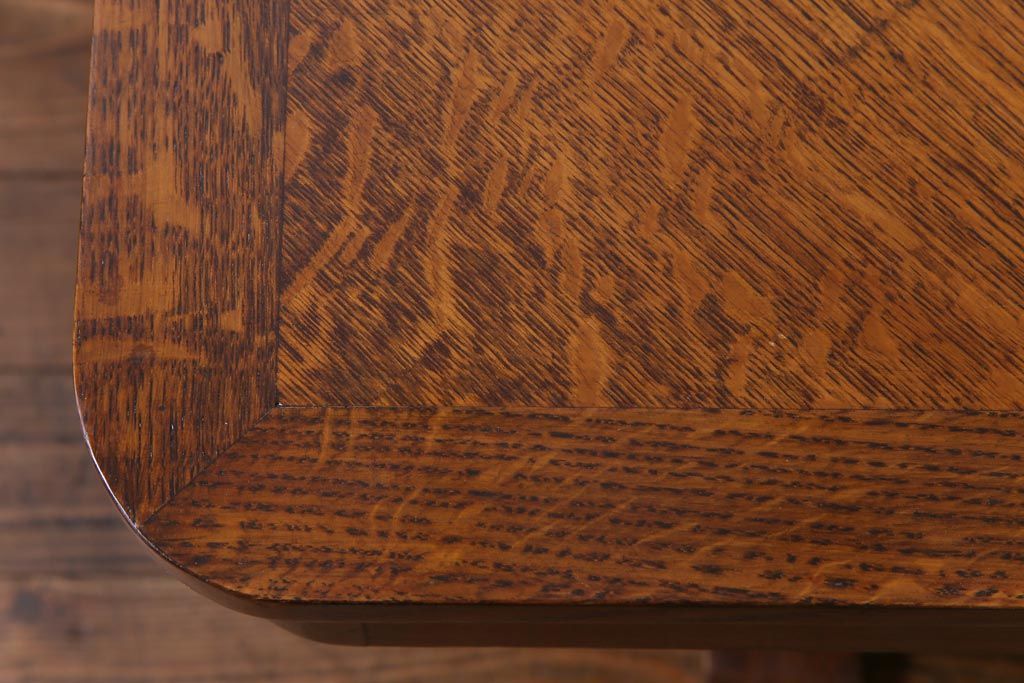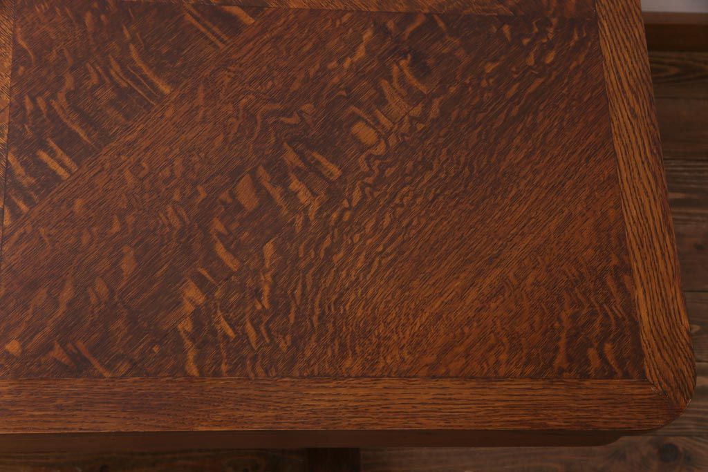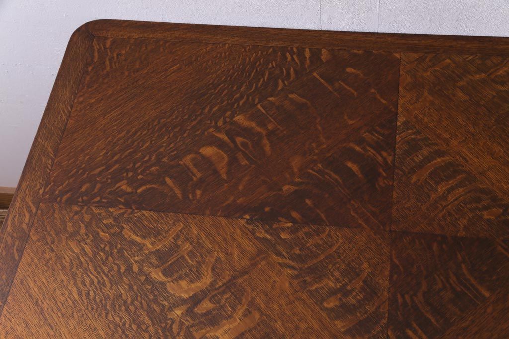 ラフジュ工房> テーブル> 4人用ダイニングテーブル > ヴィンテージ家具 イギリスビンテージ オーク材 脚と天板が個性的な重厚感漂う4人掛けダイニングテーブル