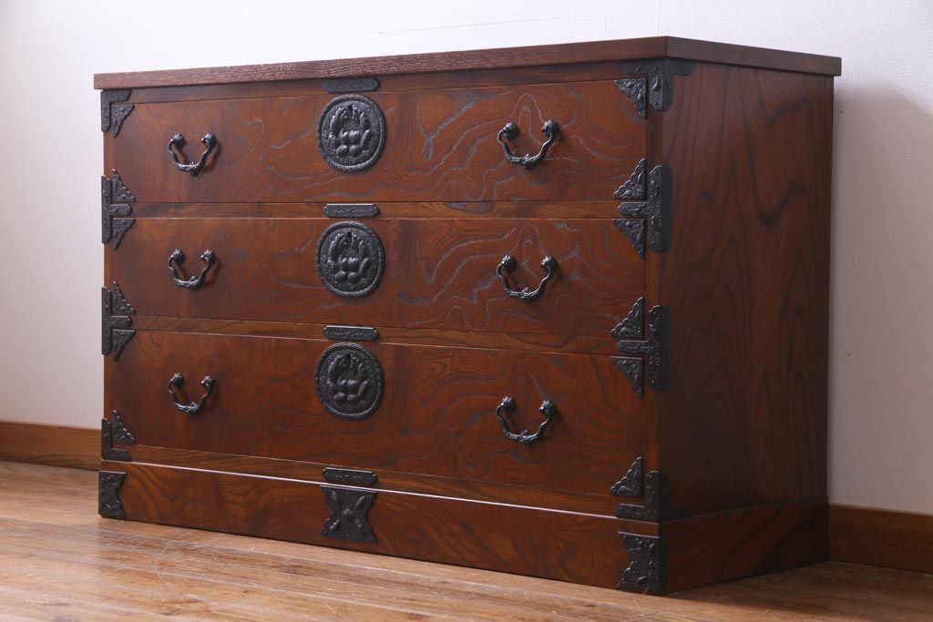 伝統民芸 岩谷堂箪笥 天板リメイク・栗無垢材 温もりと重厚感溢れる衣装箪笥(リビングボード、チェスト)
