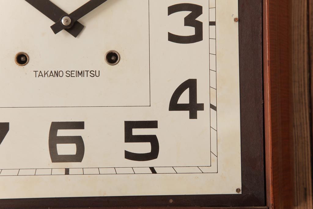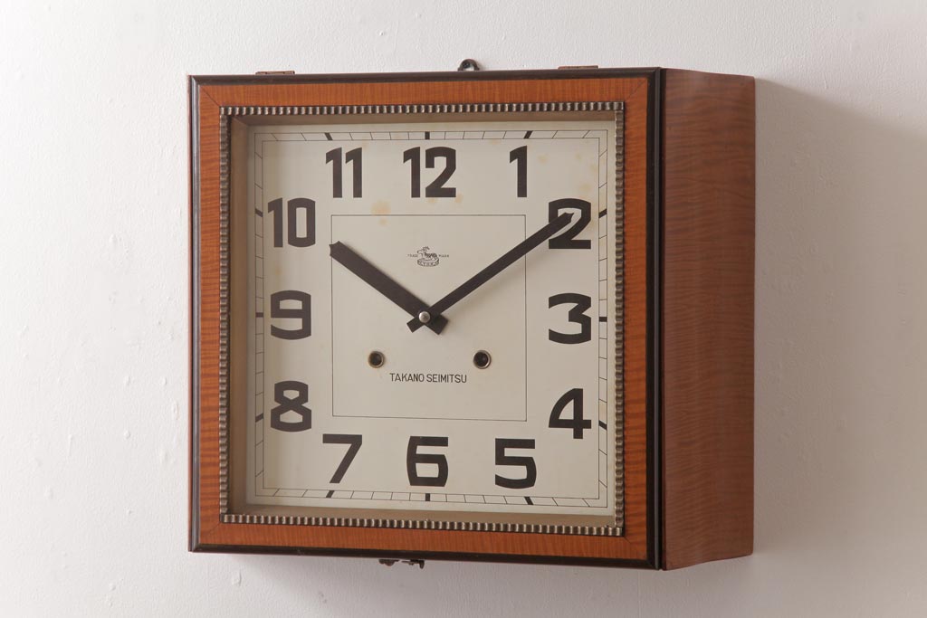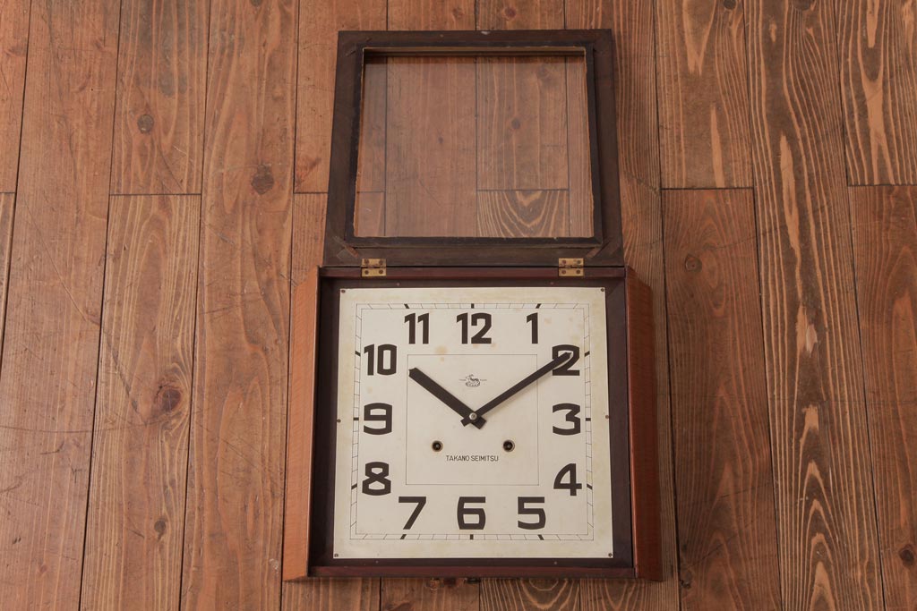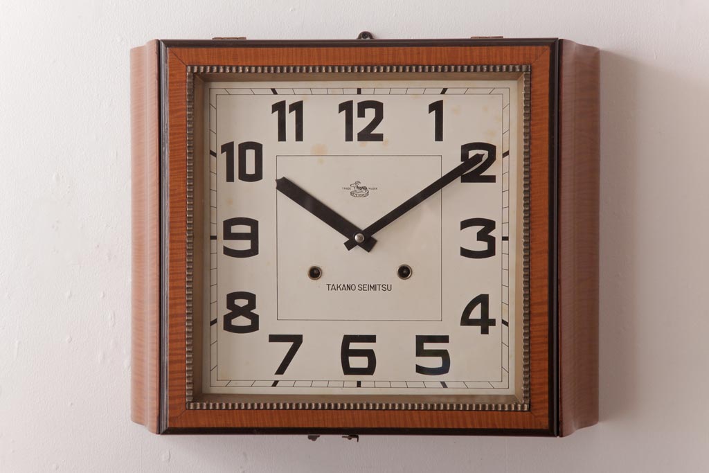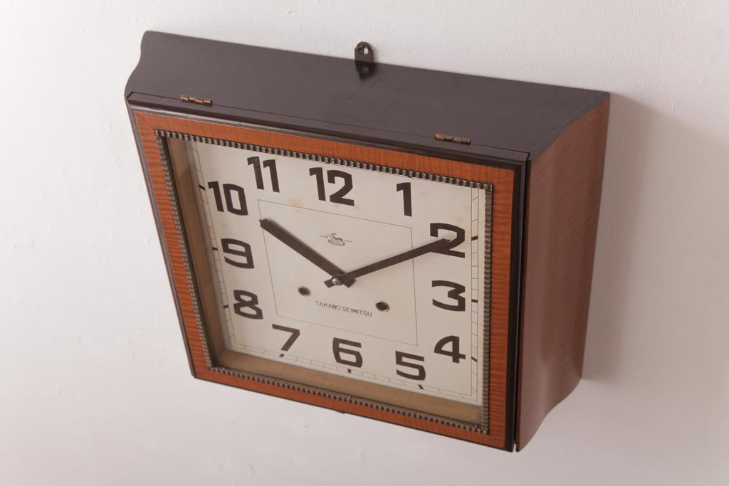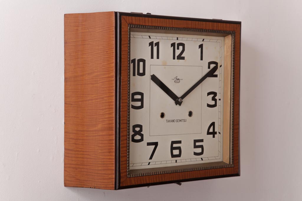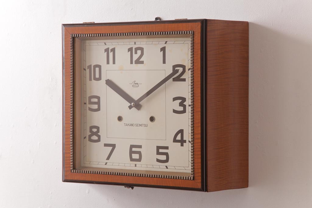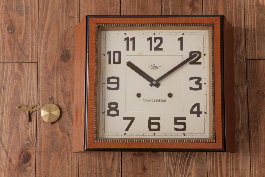 時計> 掛け時計 > アンティーク雑貨 和製アンティーク 戦前 タカノ(高野精密工業) 変わり型 角型のぜんまい式振り子時計(柱時計、掛け時計)