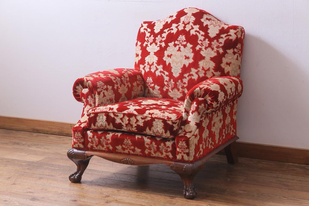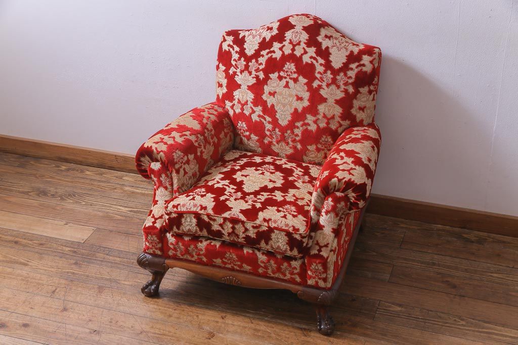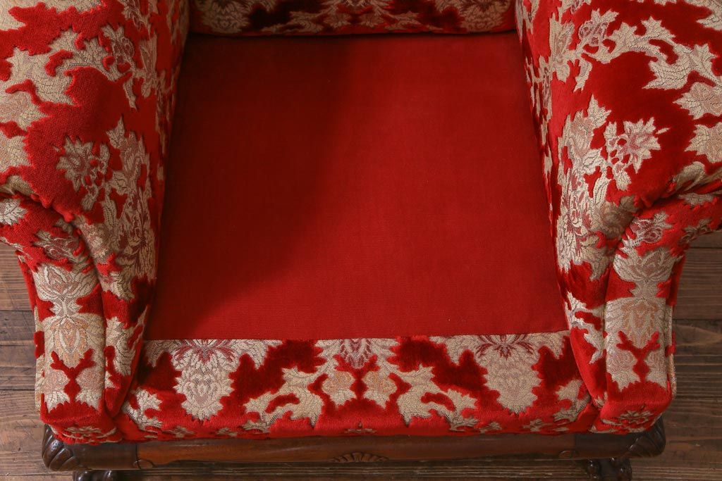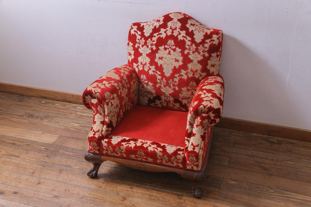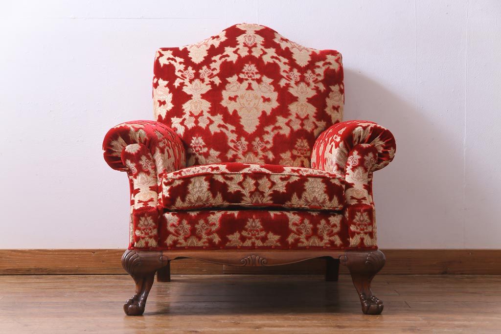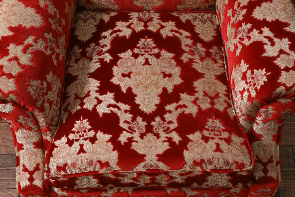ヴィンテージ家具 イギリスビンテージ クロウ&ボール 金華山張り 赤の座面が抜群の存在感を放つ一人掛けソファ(ラウンジソファ)
