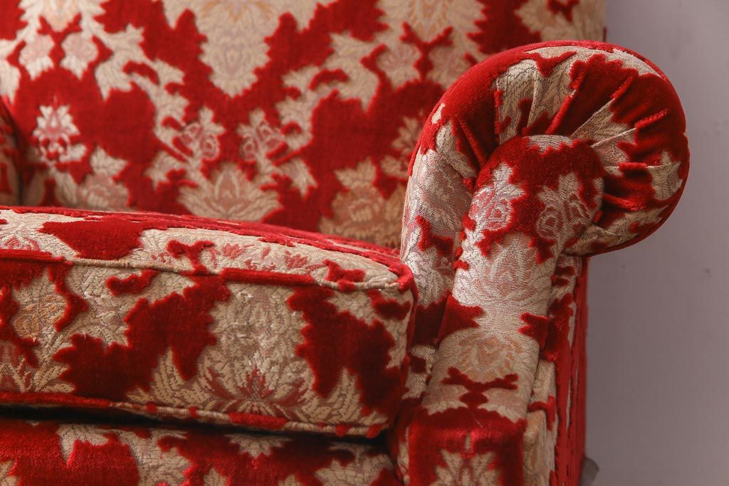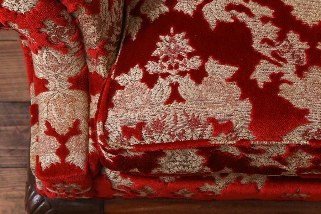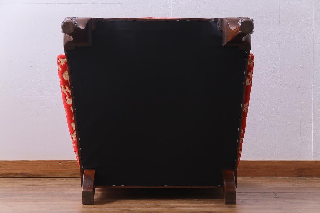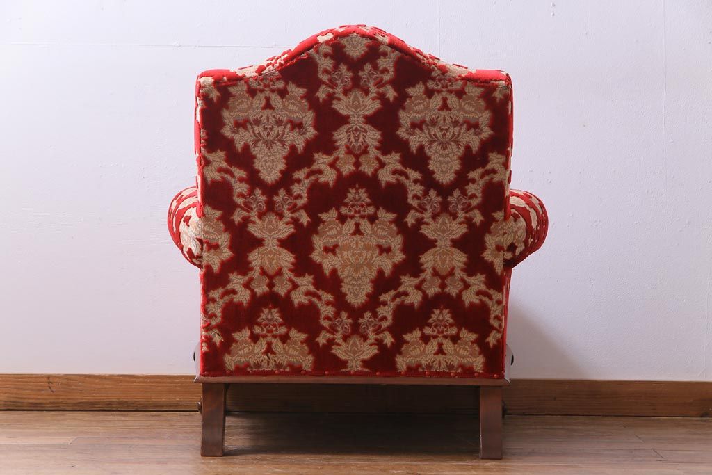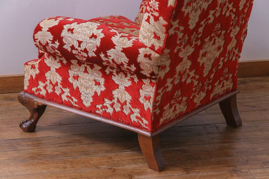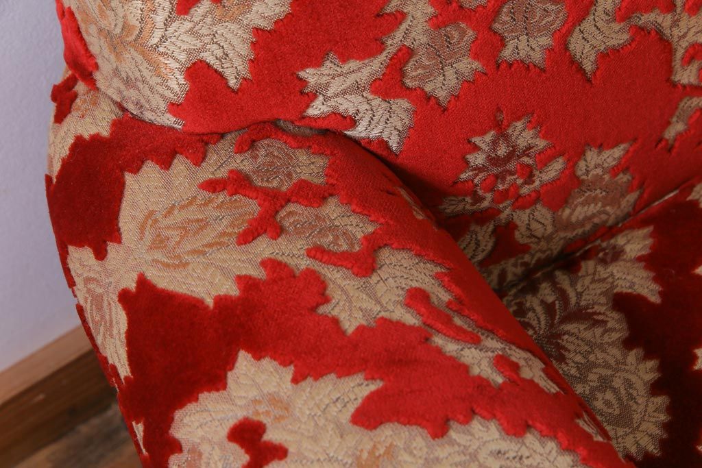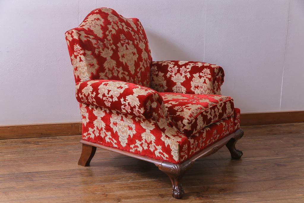 ヴィンテージ家具 イギリスビンテージ クロウ&ボール 金華山張り 赤の座面が抜群の存在感を放つ一人掛けソファ(ラウンジソファ)
