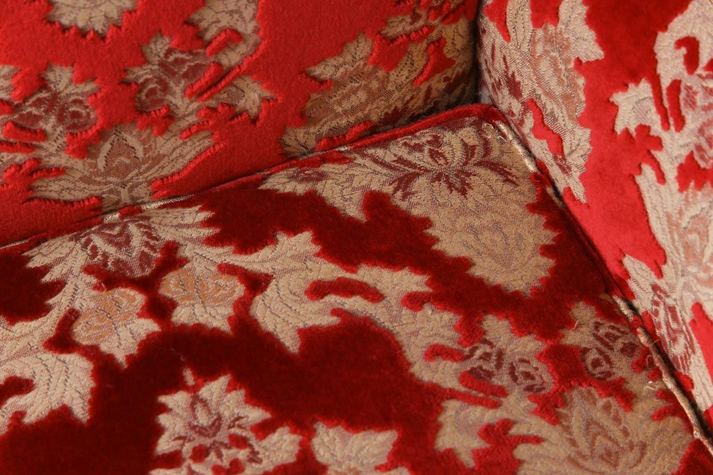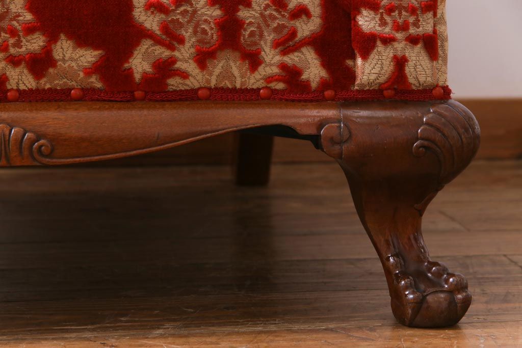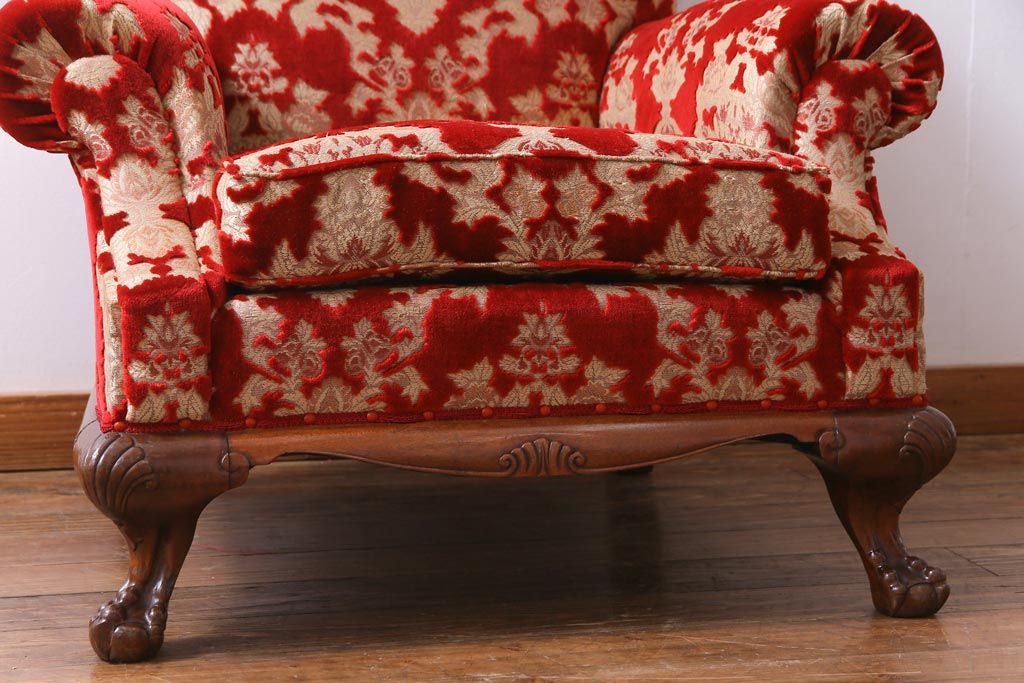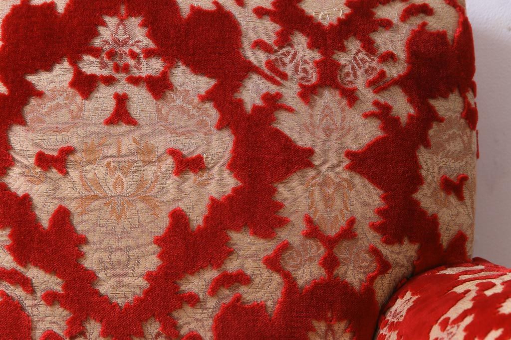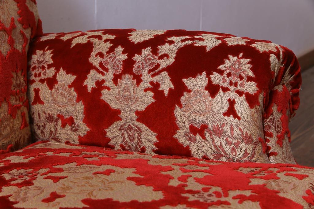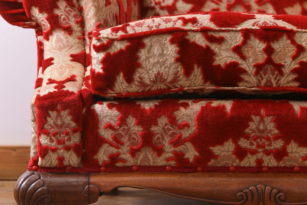 ヴィンテージ家具 イギリスビンテージ クロウ&ボール 金華山張り 赤の座面が抜群の存在感を放つ一人掛けソファ(ラウンジソファ)