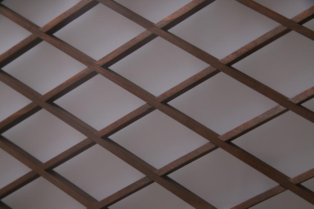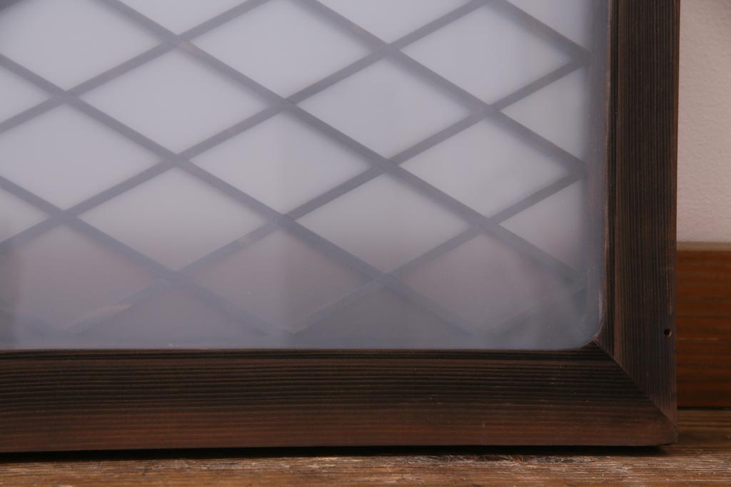 昭和中期 両面ガラス入り 和モダンな印象与える組子欄間(明り取り、ディスプレイ)です。