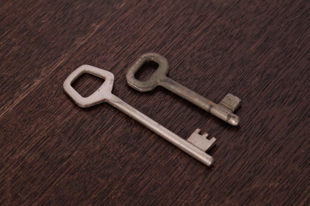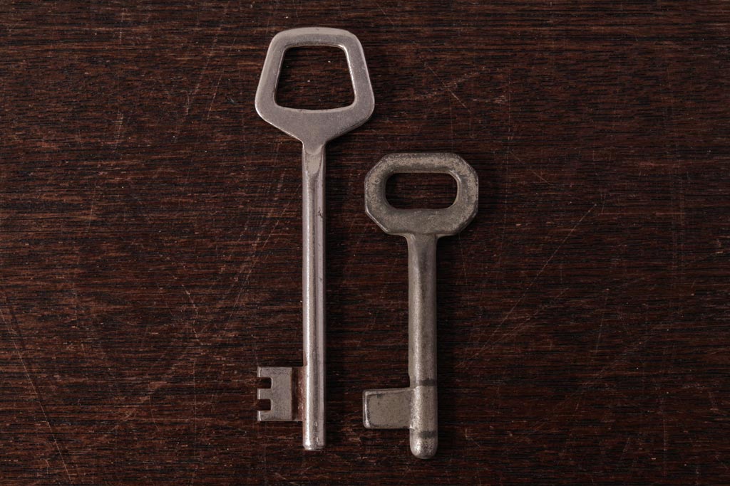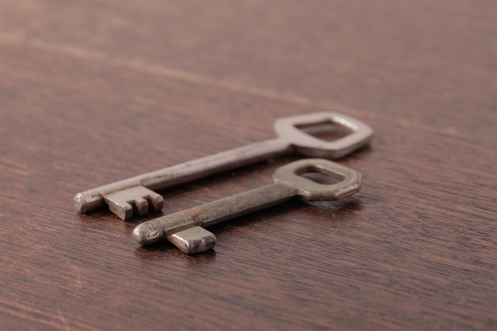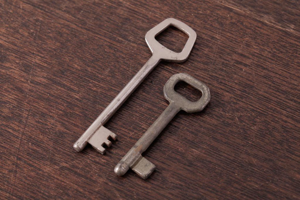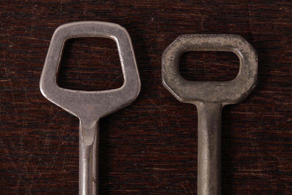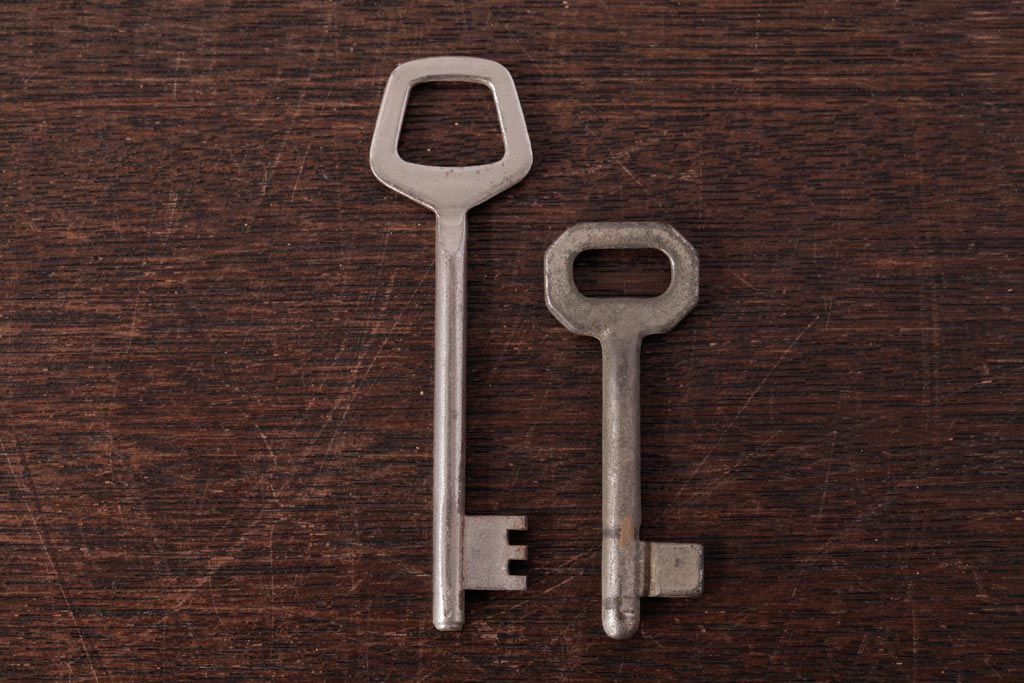 アンティーク雑貨 フランスアンティーク 角ばったデザインが素敵なキー2本セット(鍵、カギ)
