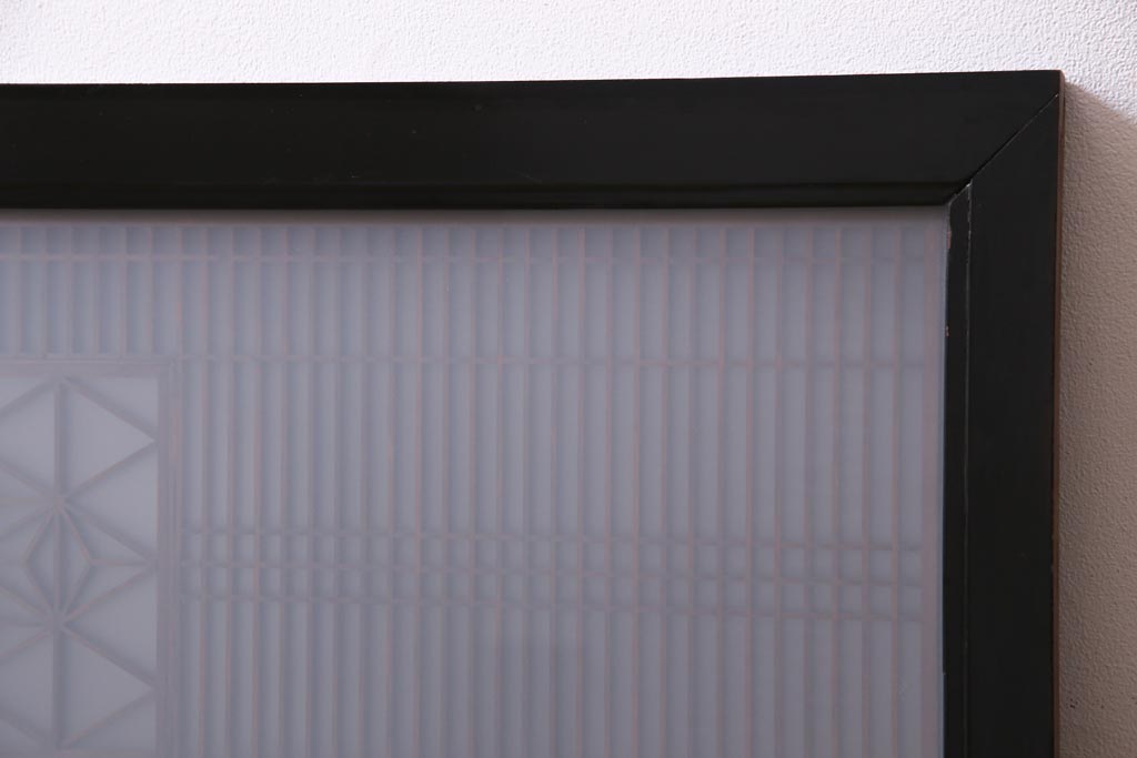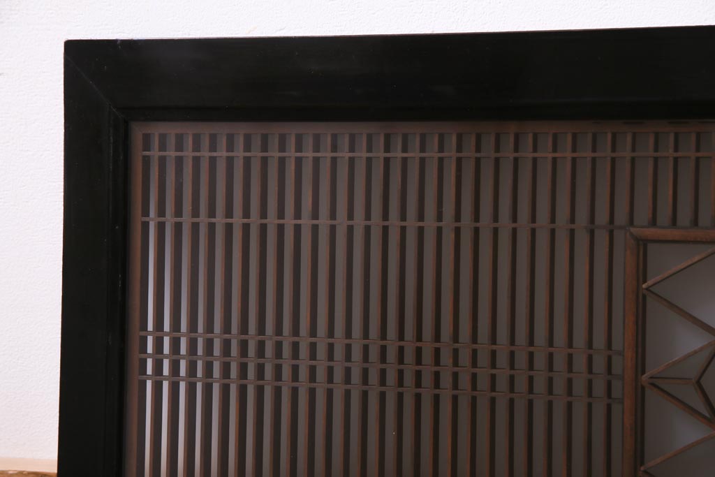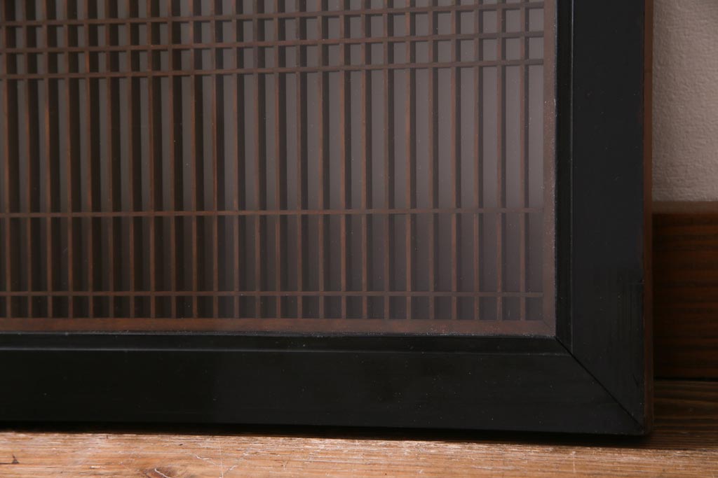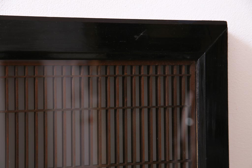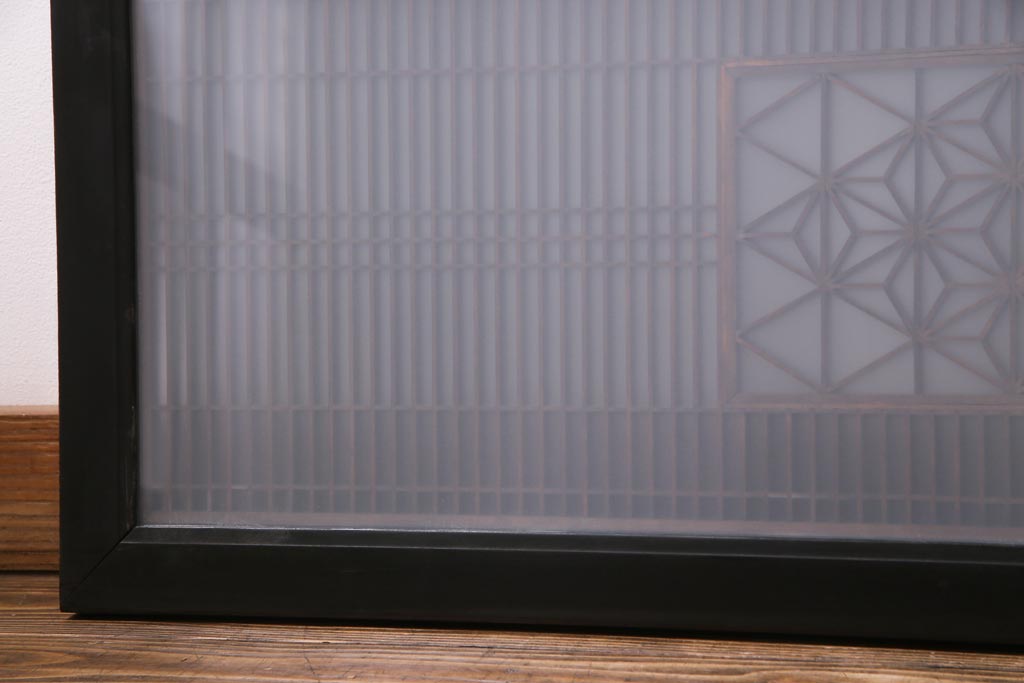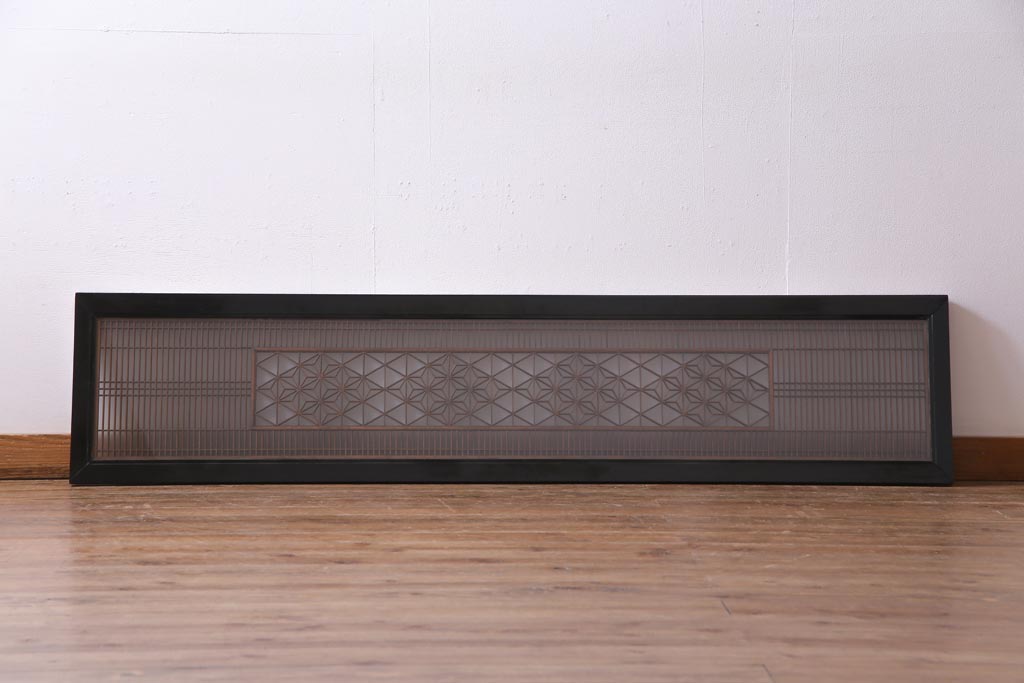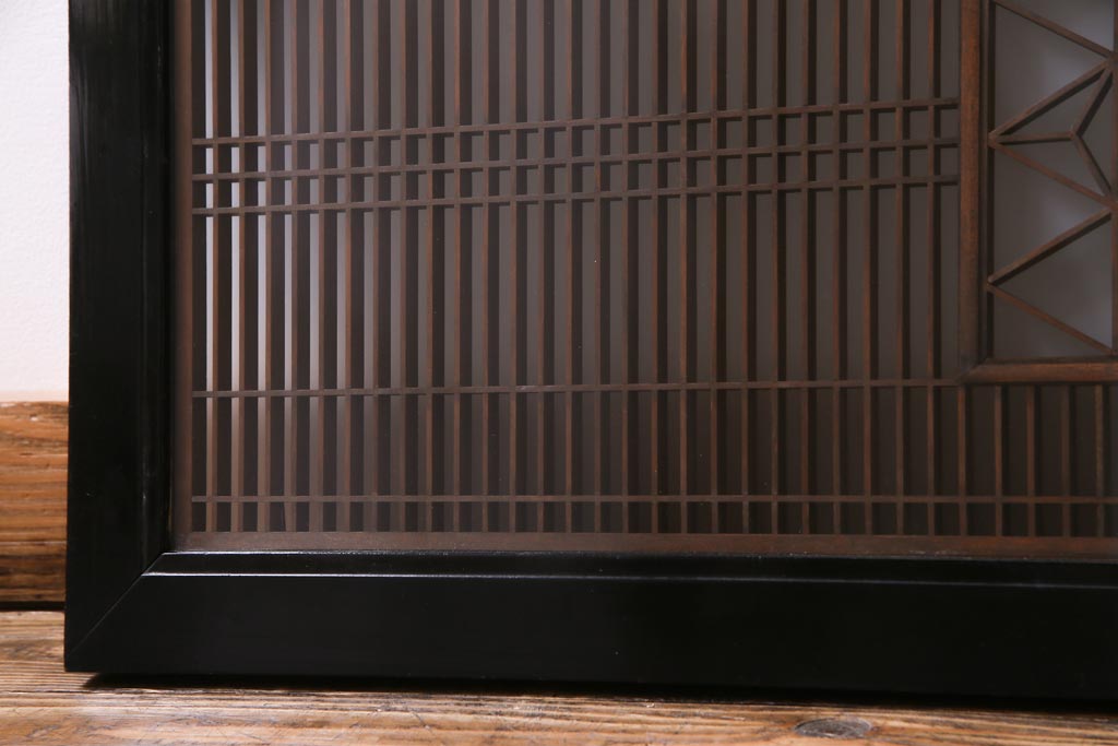 昭和中期 両面ガラス入り 漆塗りのフレームに繊細な組子が映える欄間(明り取り、ディスプレイ)