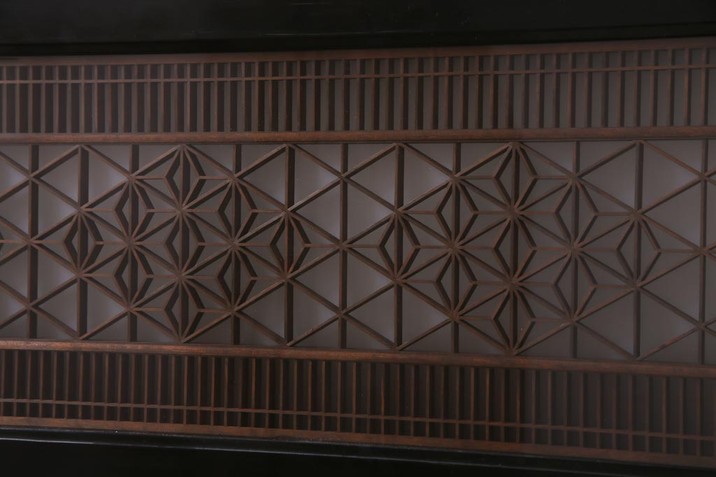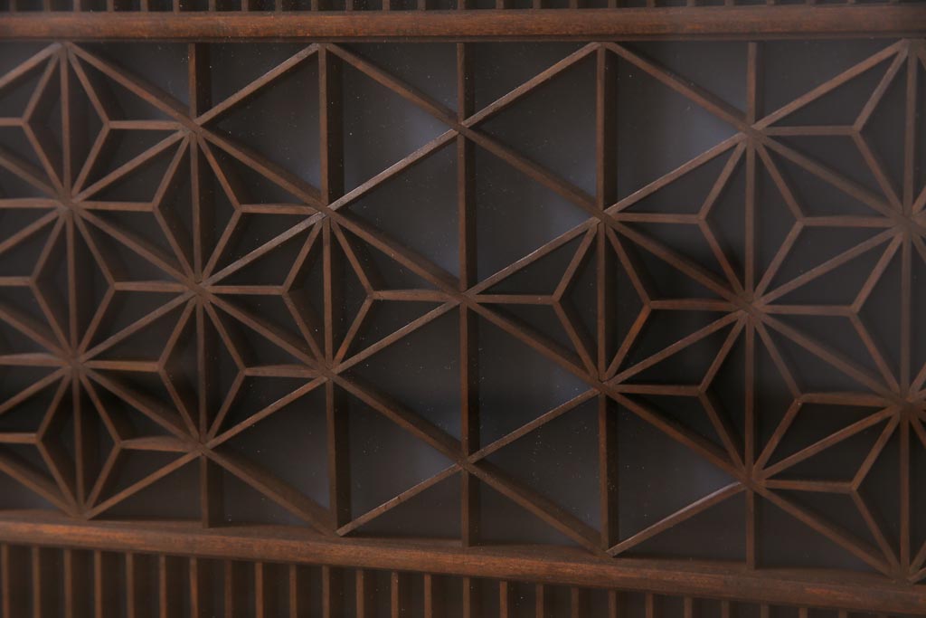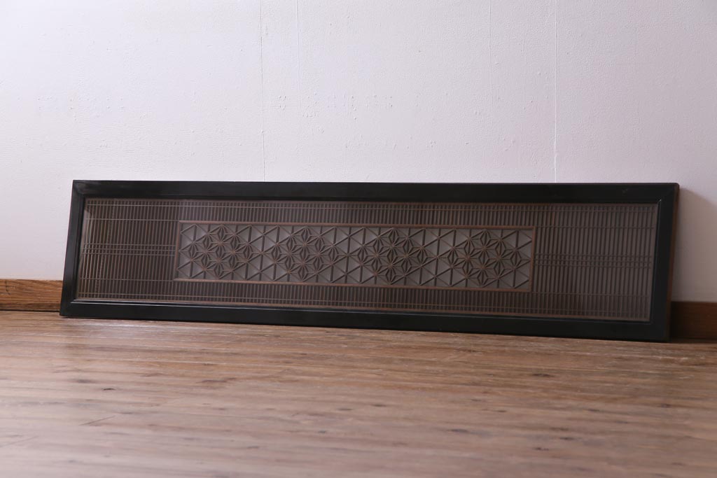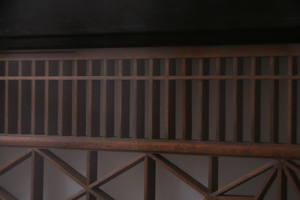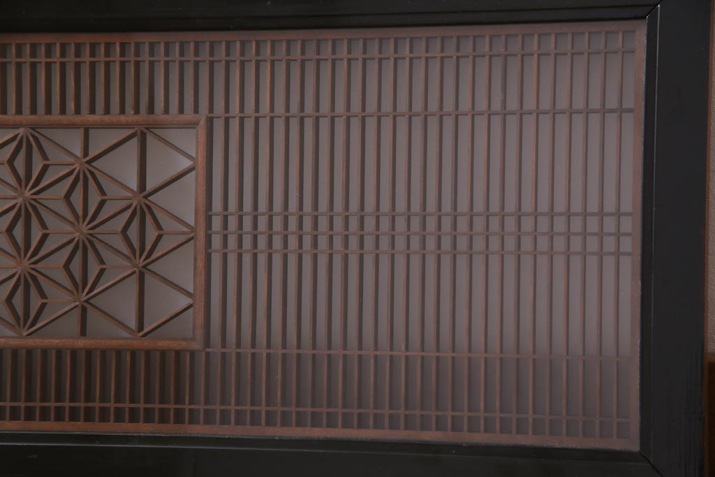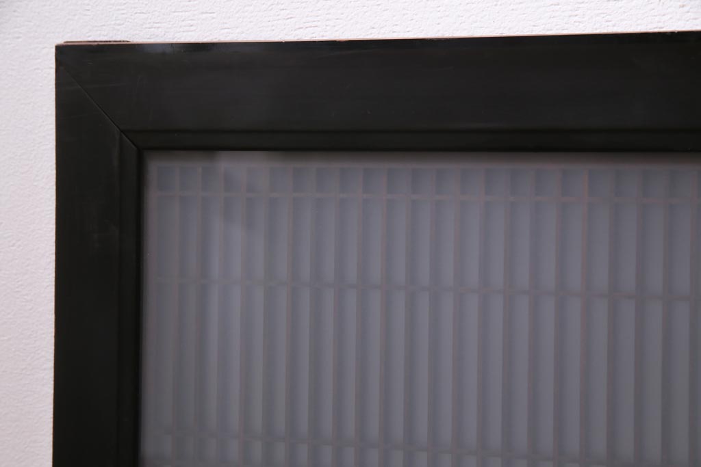 昭和中期 両面ガラス入り 漆塗りのフレームに繊細な組子が映える欄間(明り取り、ディスプレイ)