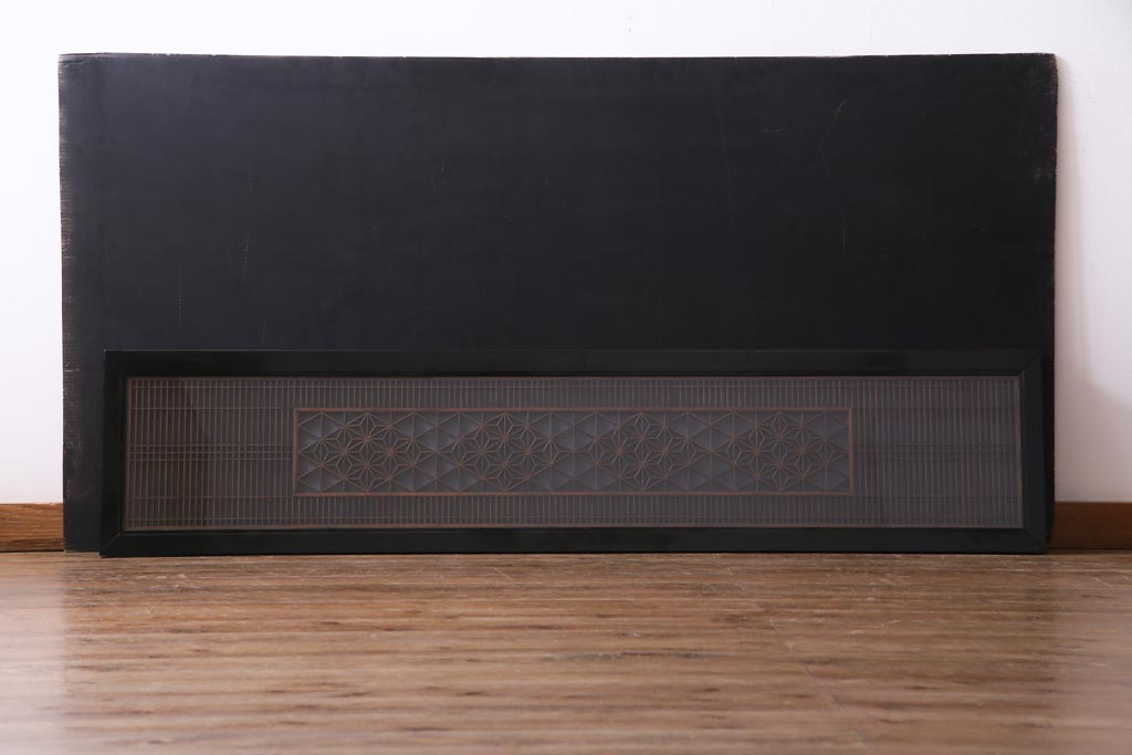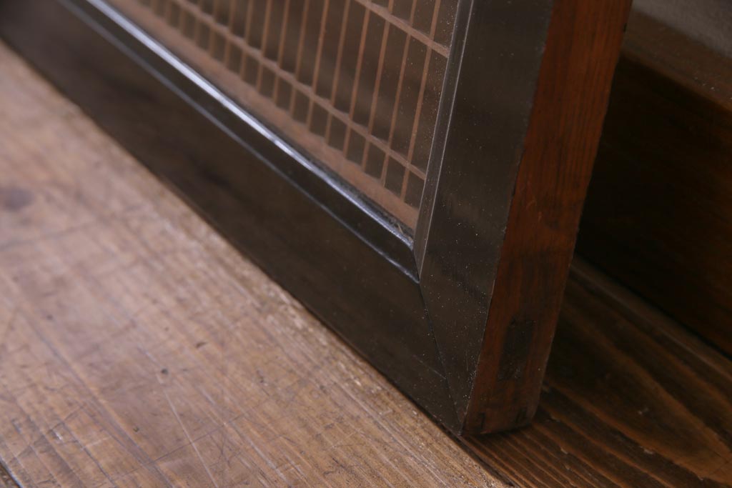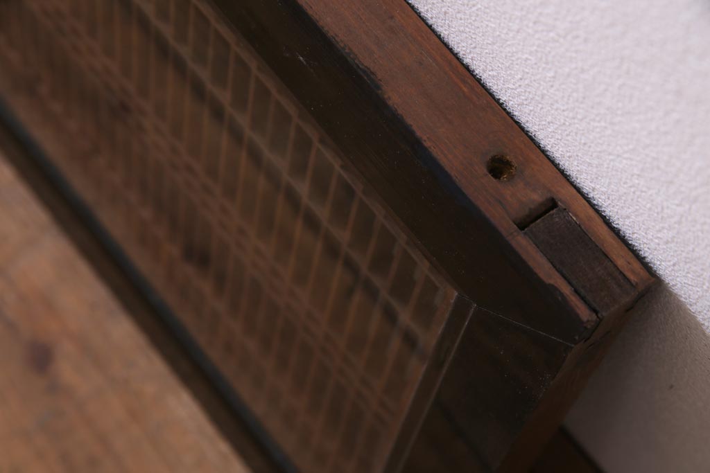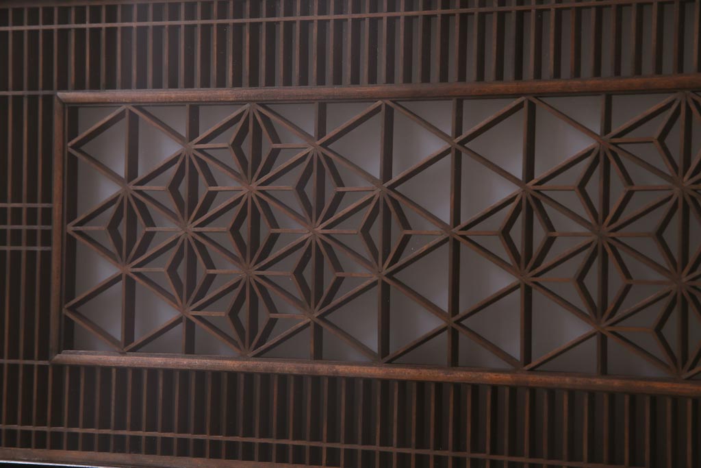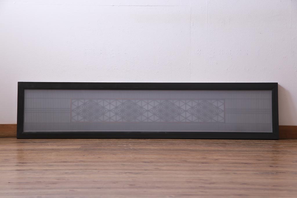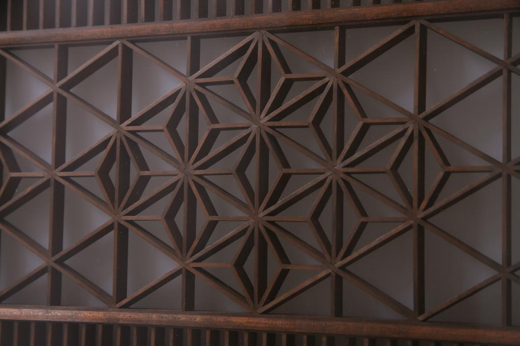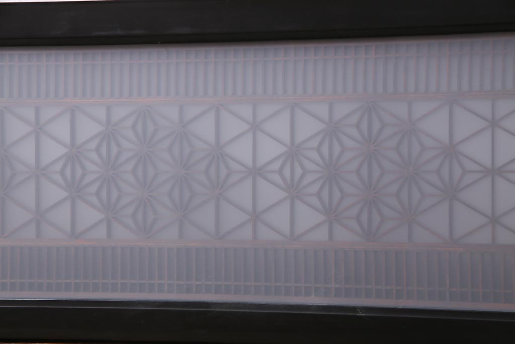 昭和中期 両面ガラス入り 漆塗りのフレームに繊細な組子が映える欄間(明り取り、ディスプレイ)